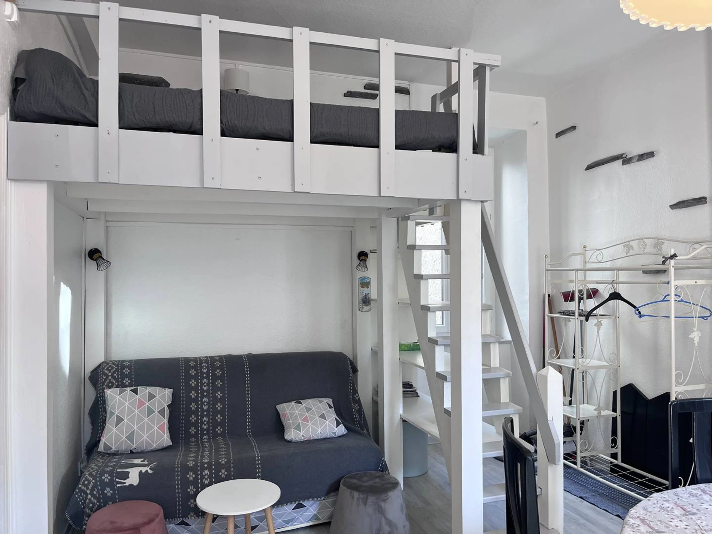 Dieses Apartment für 4 bis 5 Personen befindet sich im 2. Stock eines ruhigen Wohnhauses und bietet allen Komfort für einen angenehmen Aufenthalt in den Bergen. Es verfügt über ein helles Wohnzimmer mit Zwischengeschoss, ausgestattet mit zwei 90 cm breiten Betten (die zu einem 180 cm breiten Bett zusammengestellt werden können), und einen gemeinsamen Balkon mit Blick auf einen ruhigen und sonnigen Innenhof, der zum Entspannen einlädt.