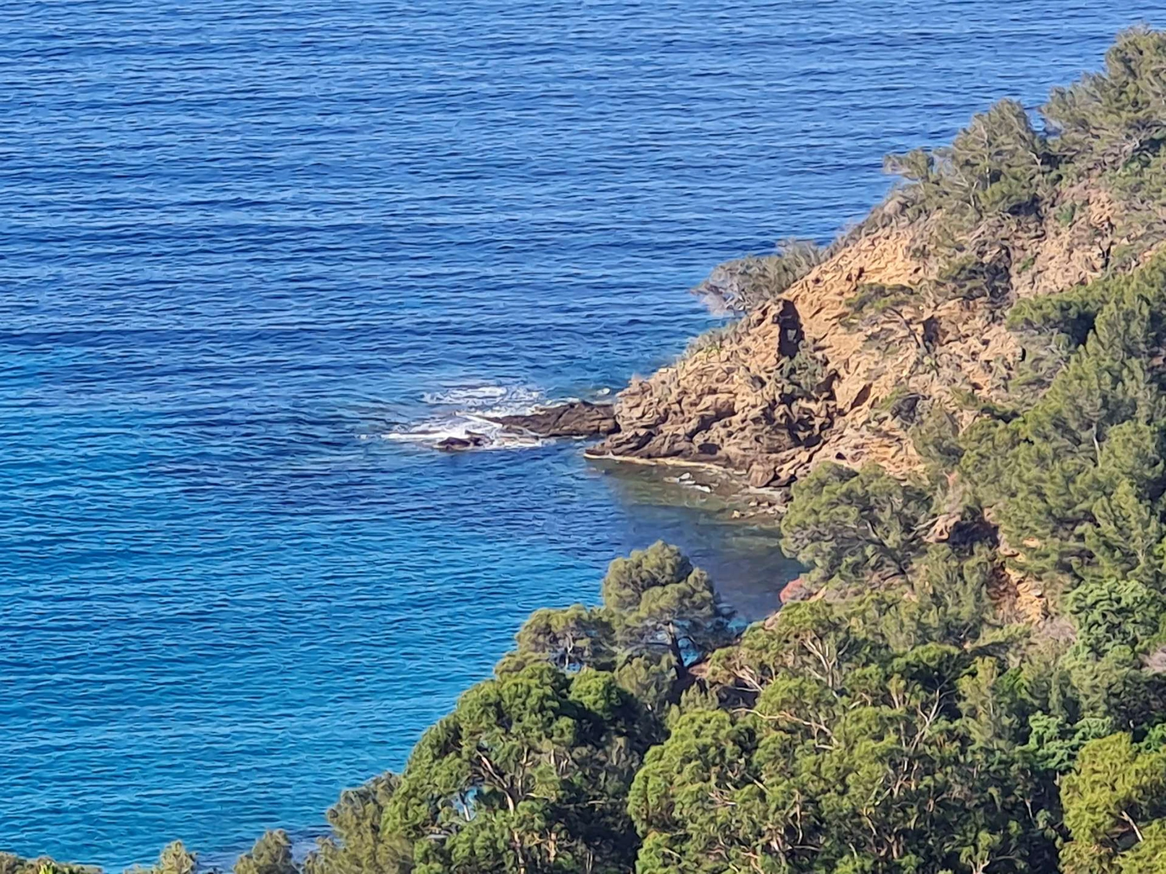 Die Highlights dieser Ferienwohnung in Cavalaire-sur-Mer: der Swimmingpool der Residenz, ein Parkplatz und die Lage im Grünen mit Blick aufs Meer.