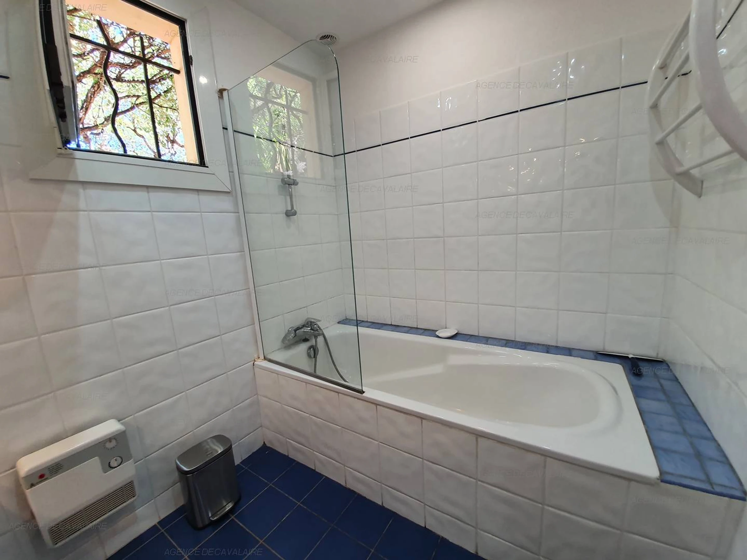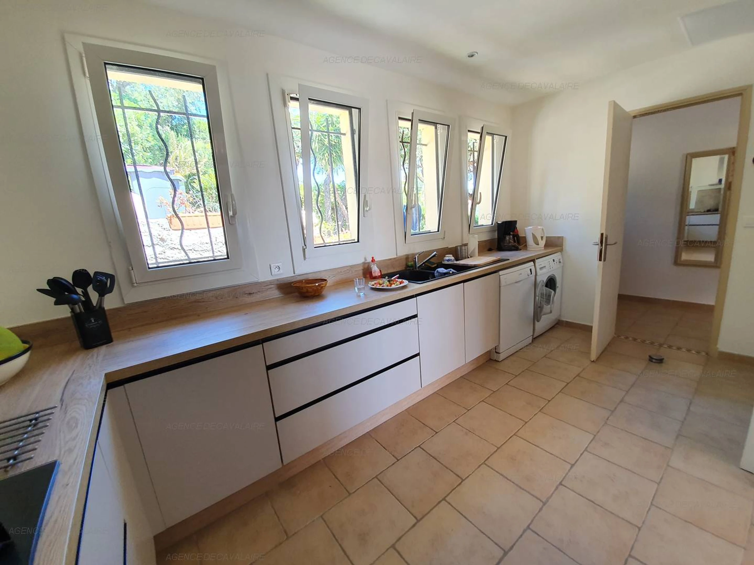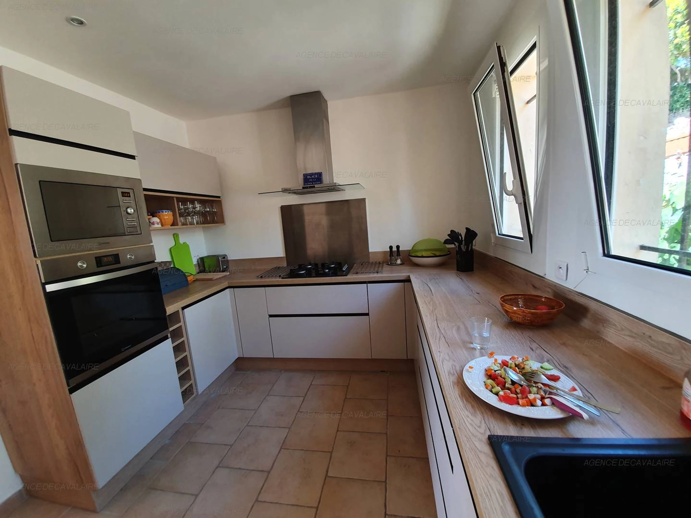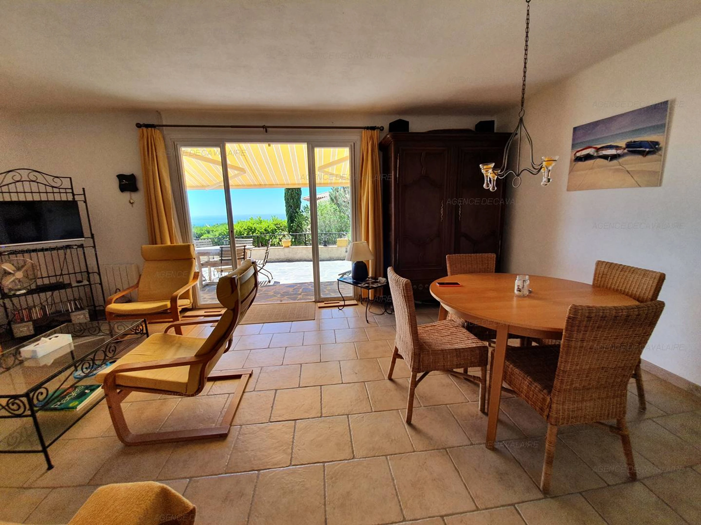 Sehr schönes einstöckiges Ferienhaus. Ausgestattete Küche, helles Wohnzimmer mit Zugang zu einer Terrasse, von der Sie einen herrlichen Meerblick über den Hafen von Cavalaire bis zum Cap Lardier genießen können.