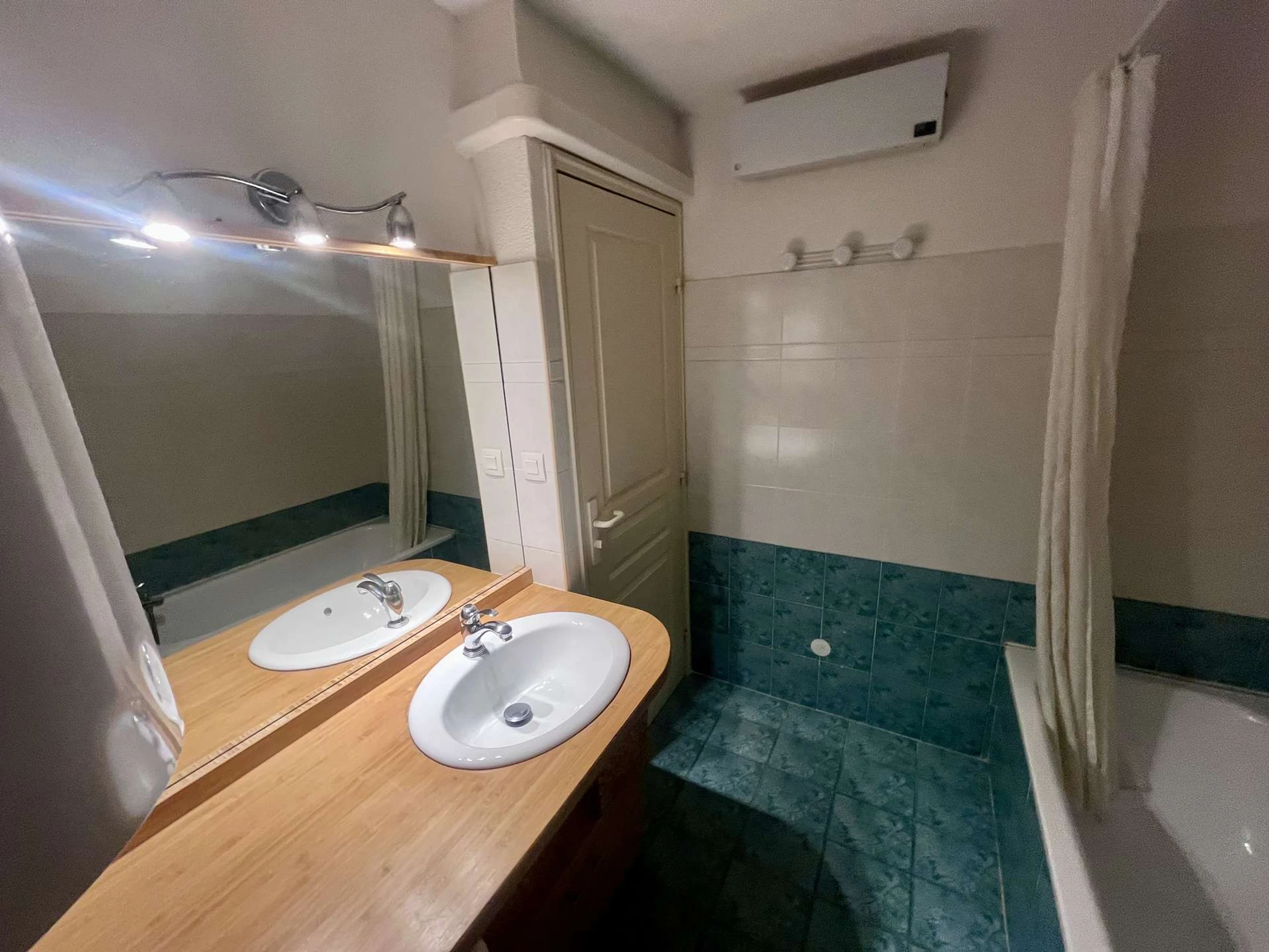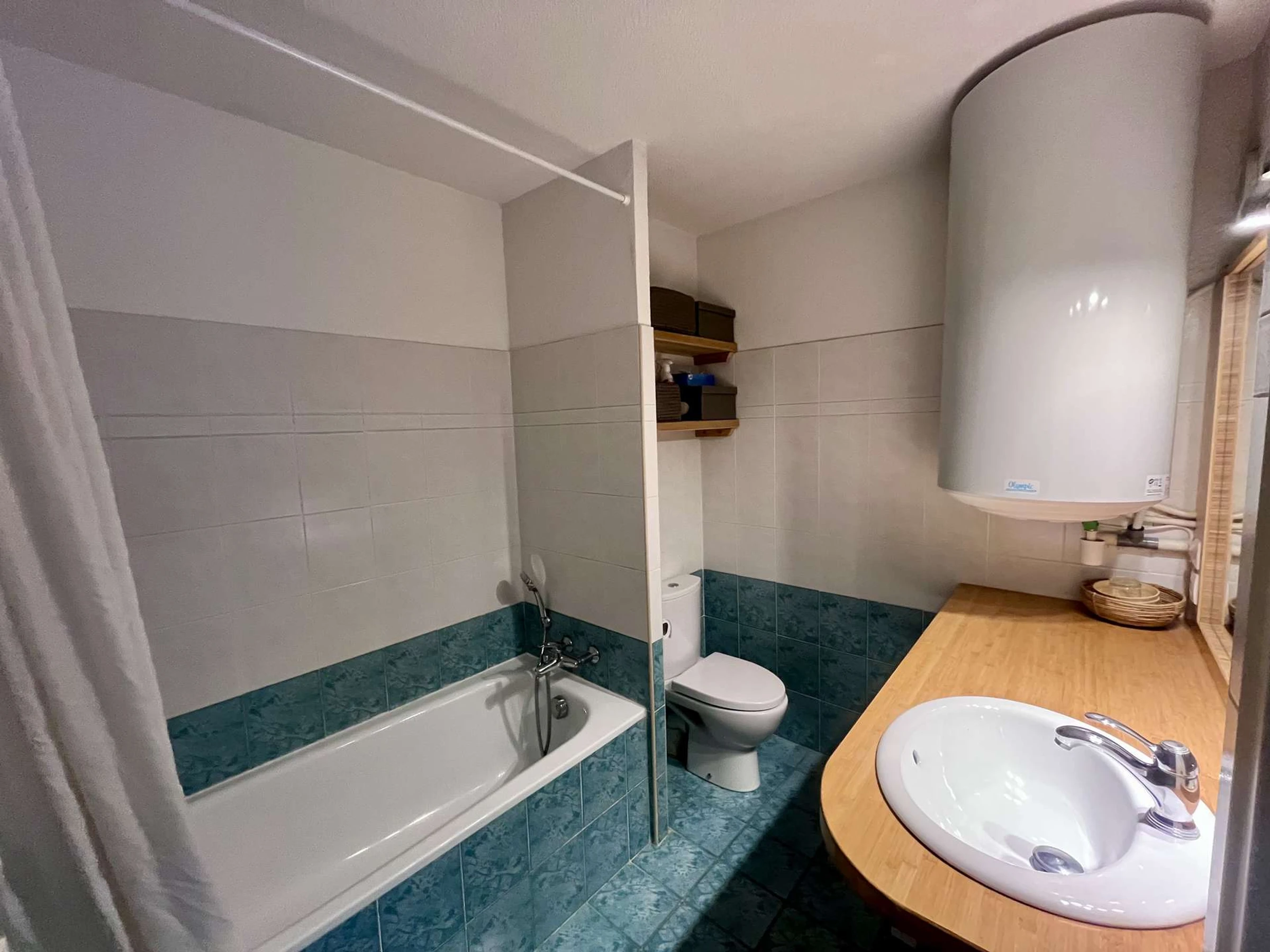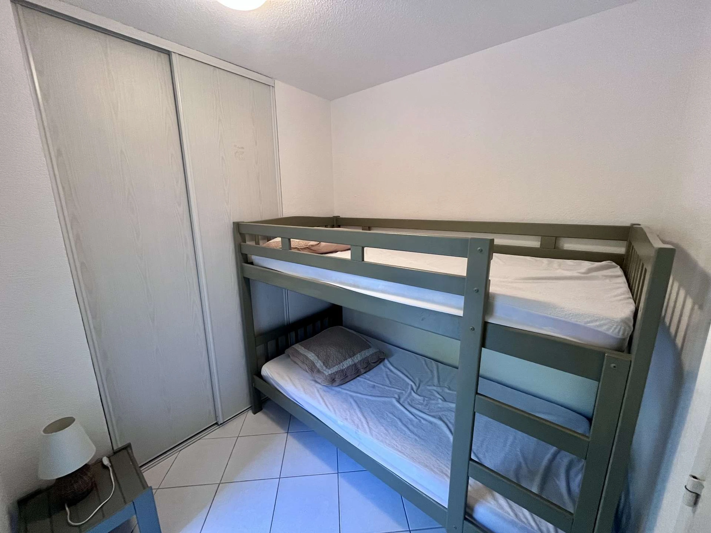 Dieses schöne, klimatisierte Apartment im Gartengeschoss verfügt über ein Wohnzimmer mit einem 140 cm breiten Schlafsofa, eine voll ausgestattete Küche, ein Schlafzimmer mit einem 140 cm breiten Bett, ein zweites Schlafzimmer mit zwei Etagenbetten und ein Badezimmer mit WC.