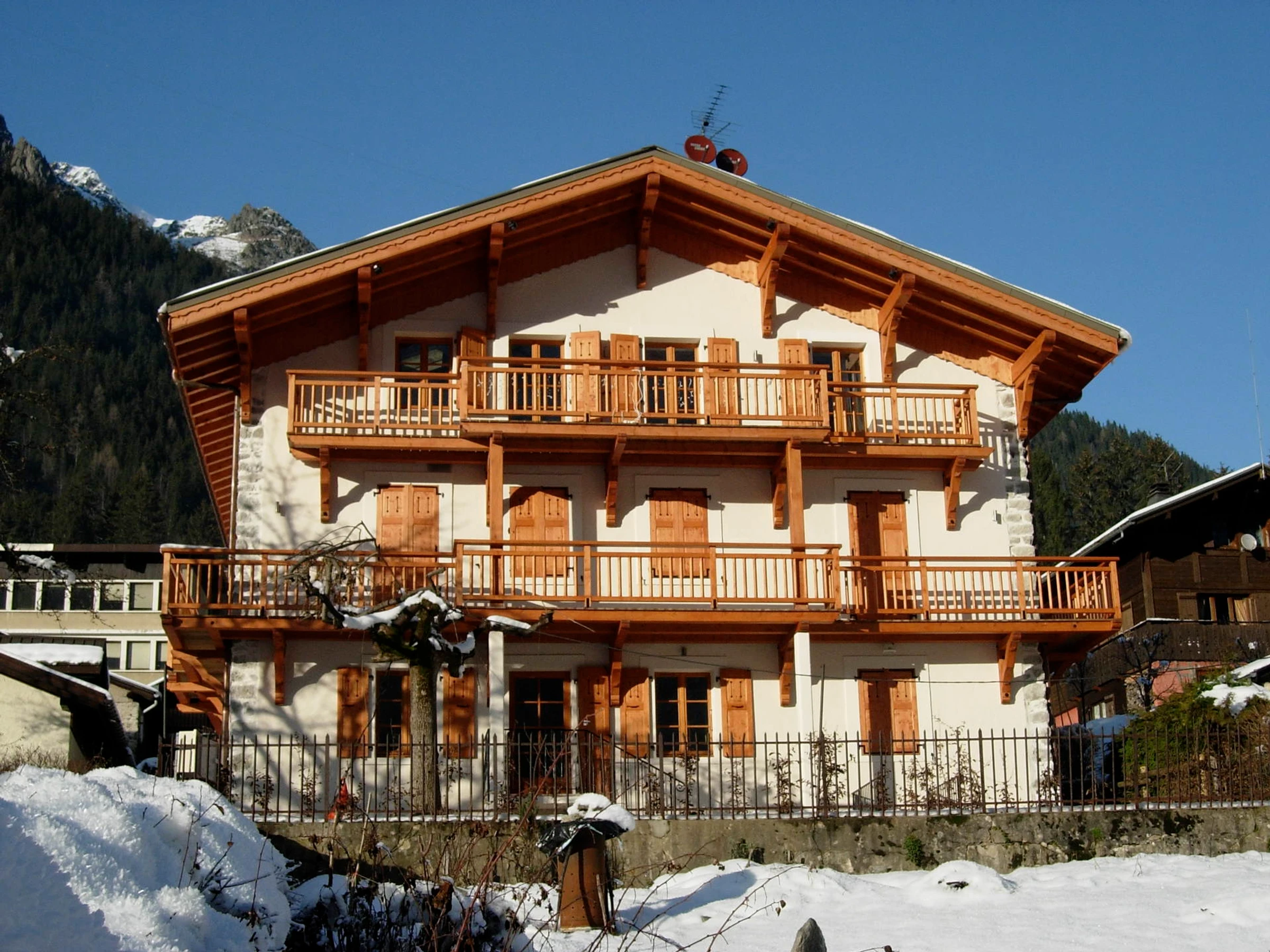 Sehr schönes, 95 m² großes Apartment (3 Sterne) für bis zu 6 Personen. Es befindet sich im 1. Stock eines Chalets im Viertel Les Pècles, 1 km vom Zentrum von Chamonix und 200 m von der Bushaltestelle entfernt.