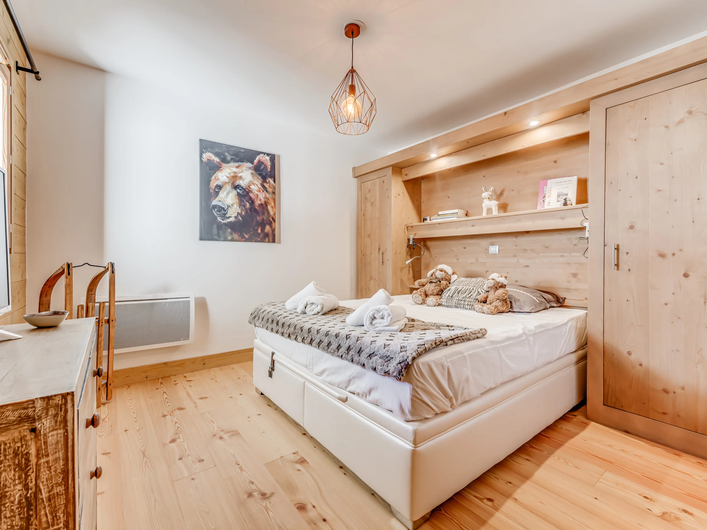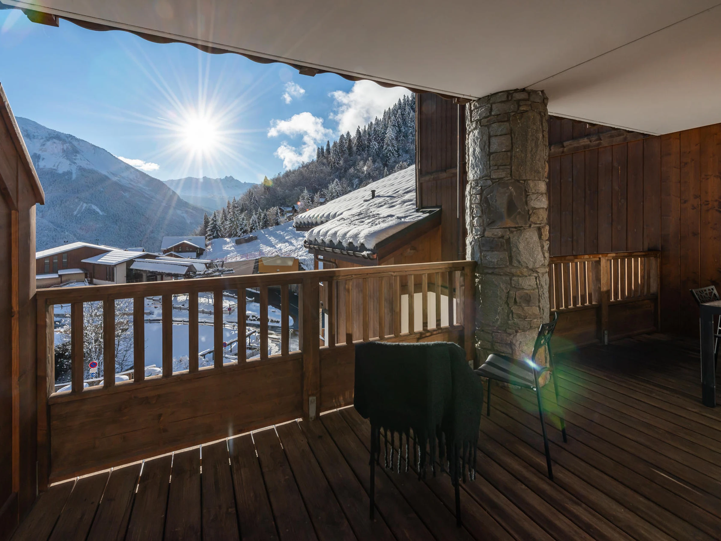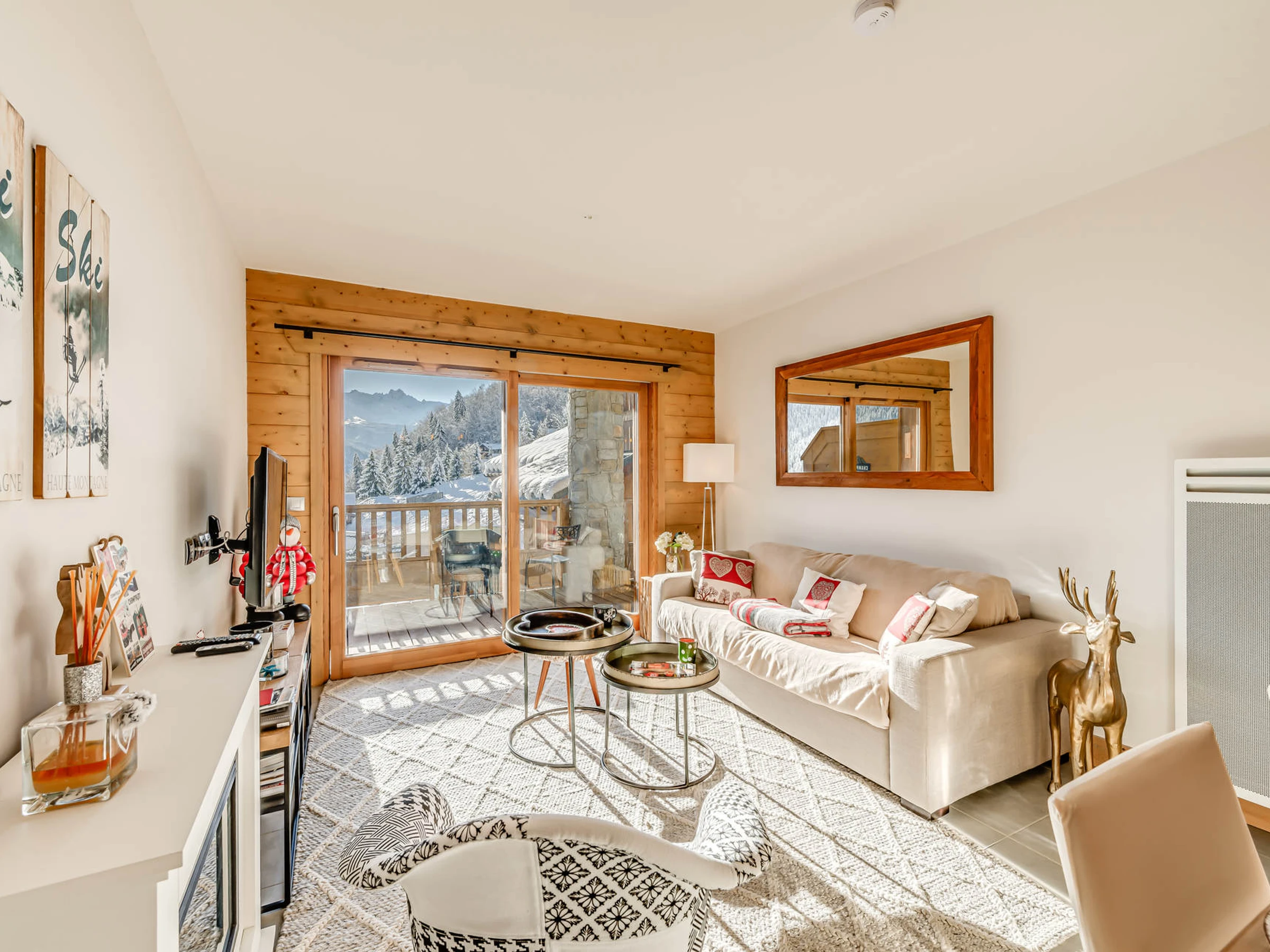 Dieses 4-Sterne-Apartment befindet sich in der 5. Etage und bietet einen wunderschönen, unverbauten Ausblick. Es besteht aus einem Wohnzimmer mit Südbalkon, einer voll ausgestatteten Küche mit Essbereich, zwei separaten Schlafzimmern, einem Badezimmer mit separatem WC und einem Duschbad mit WC sowie einer großen, 12 m² großen, möblierten Terrasse mit Blick auf die Berge und Courchevel.