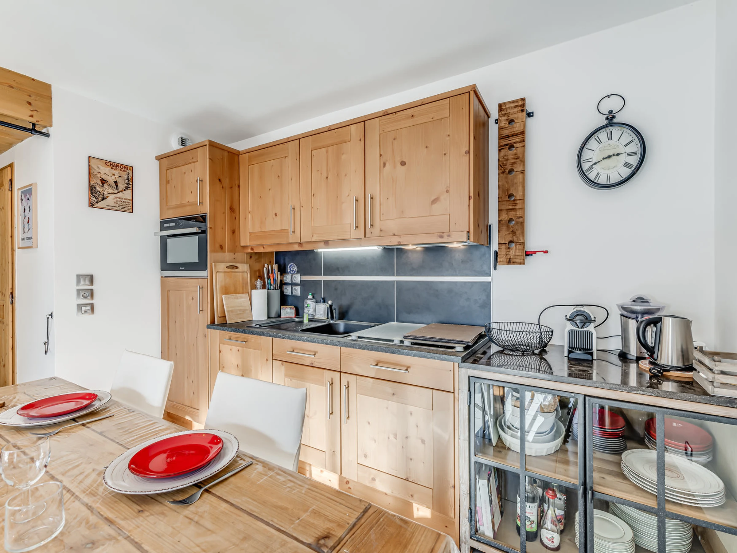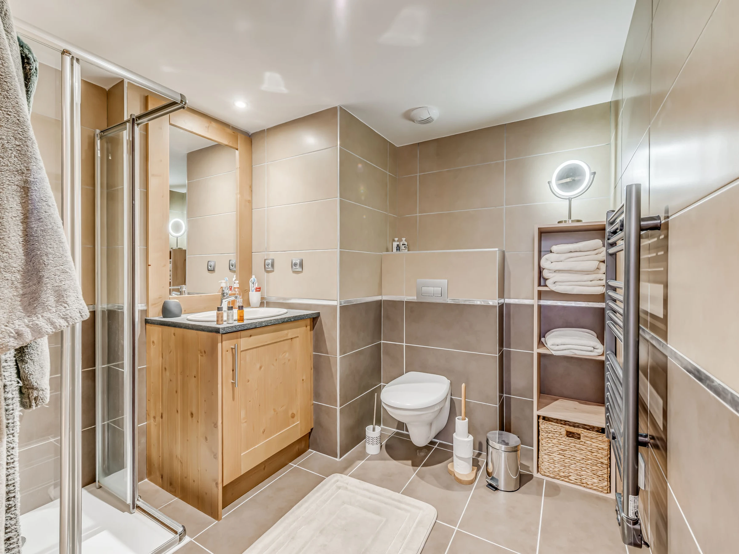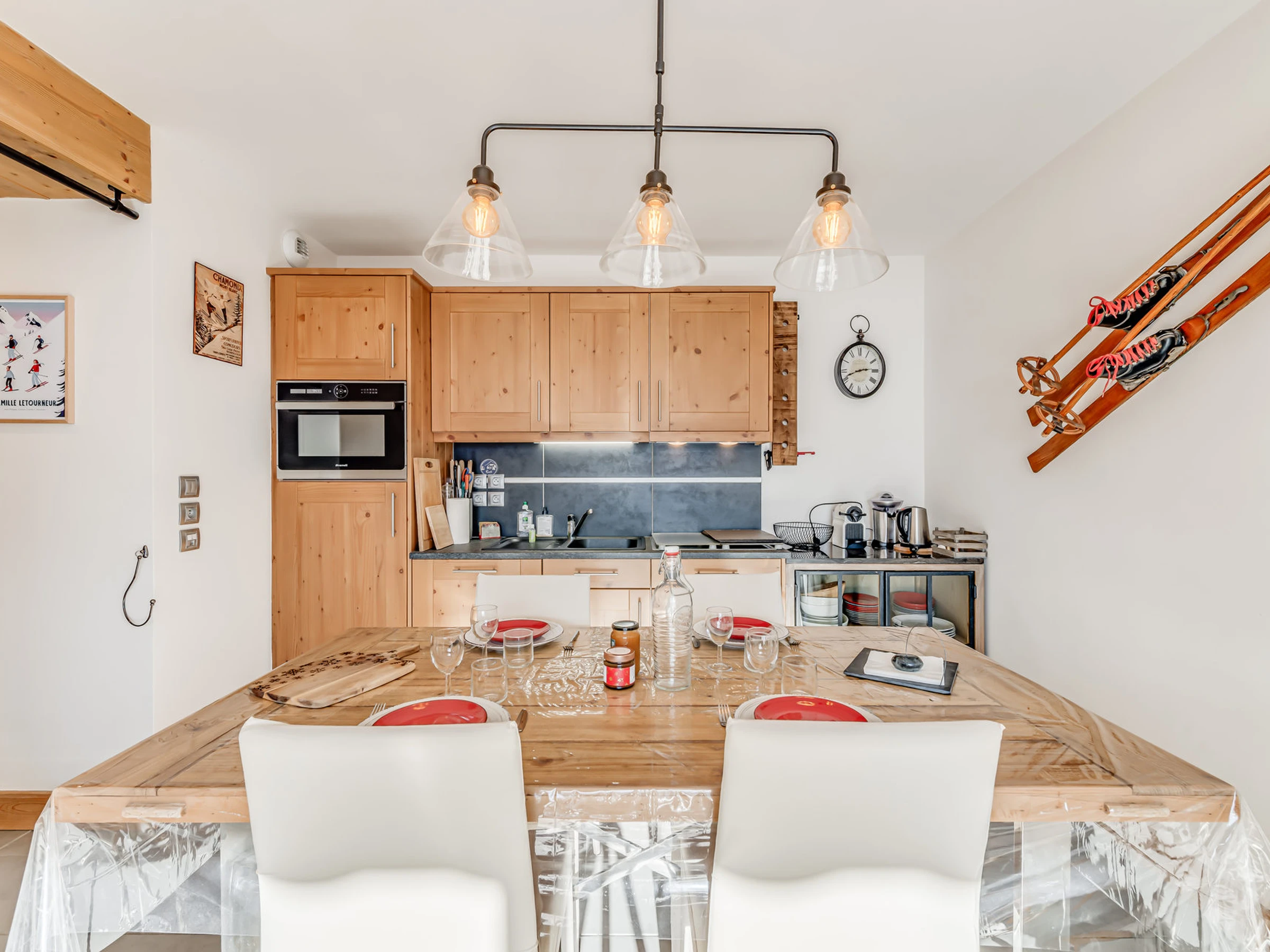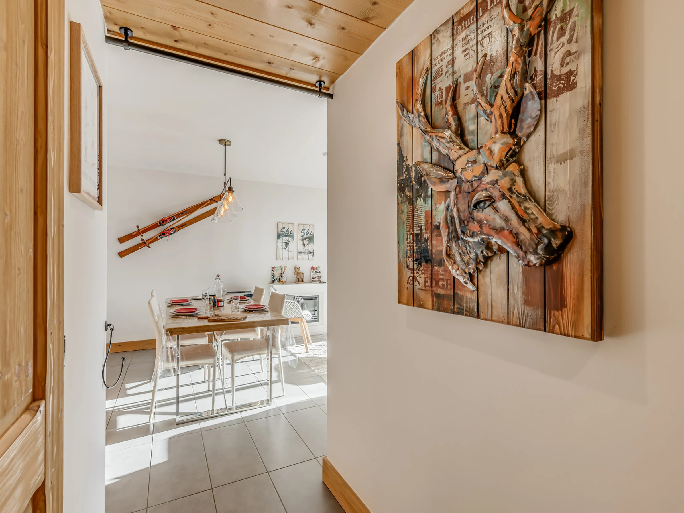 Dieses 4-Sterne-Apartment befindet sich in der 5. Etage und bietet einen wunderschönen, unverbauten Ausblick. Es besteht aus einem Wohnzimmer mit Südbalkon, einer voll ausgestatteten Küche mit Essbereich, zwei separaten Schlafzimmern, einem Badezimmer mit separatem WC und einem Duschbad mit WC sowie einer großen, 12 m² großen, möblierten Terrasse mit Blick auf die Berge und Courchevel.