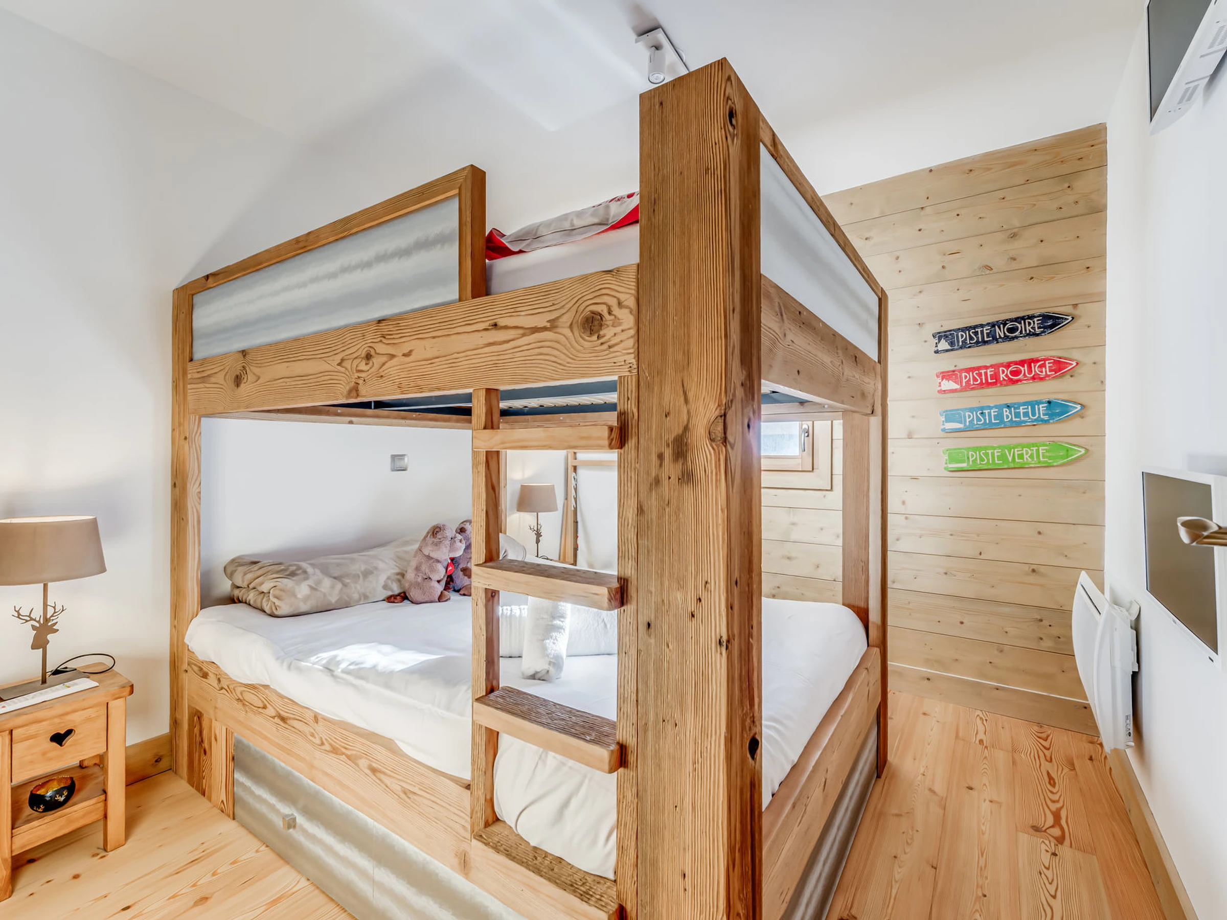 * Schlafzimmer 2: 2 Etagenbetten (140 x 90 cm), Kleiderschrank und 2 Flachbildfernseher.