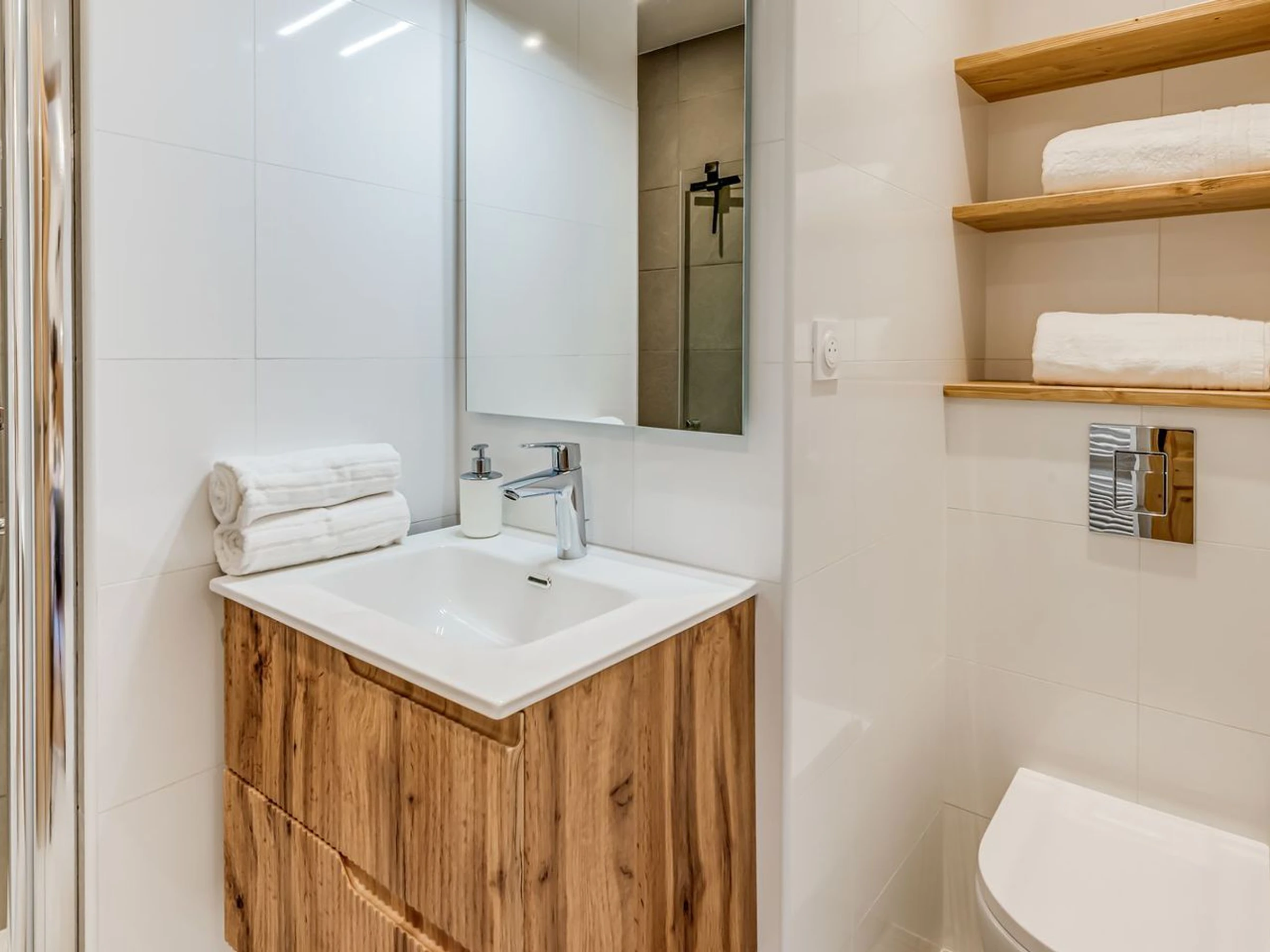 - Separates Badezimmer mit Dusche, Waschtisch und WC