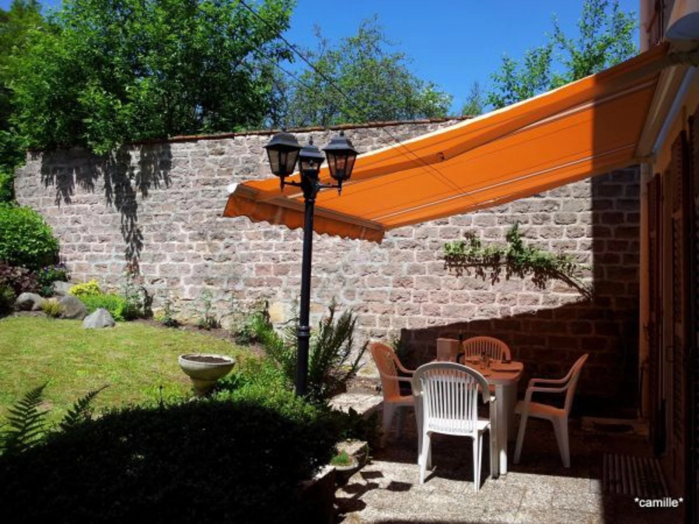Waschmaschine. Gas-Zentralheizung. Privater Parkplatz vor dem Haus. Lange Garage. Terrasse mit Markise und Grill. Eingezäunter privater Garten. Nebenkosten (Heizung, Strom) inbegriffen. Bettwäsche, Bettwäsche und Handtücher werden gestellt. WIFI-Internet. Tiere sind gegen Aufpreis willkommen.