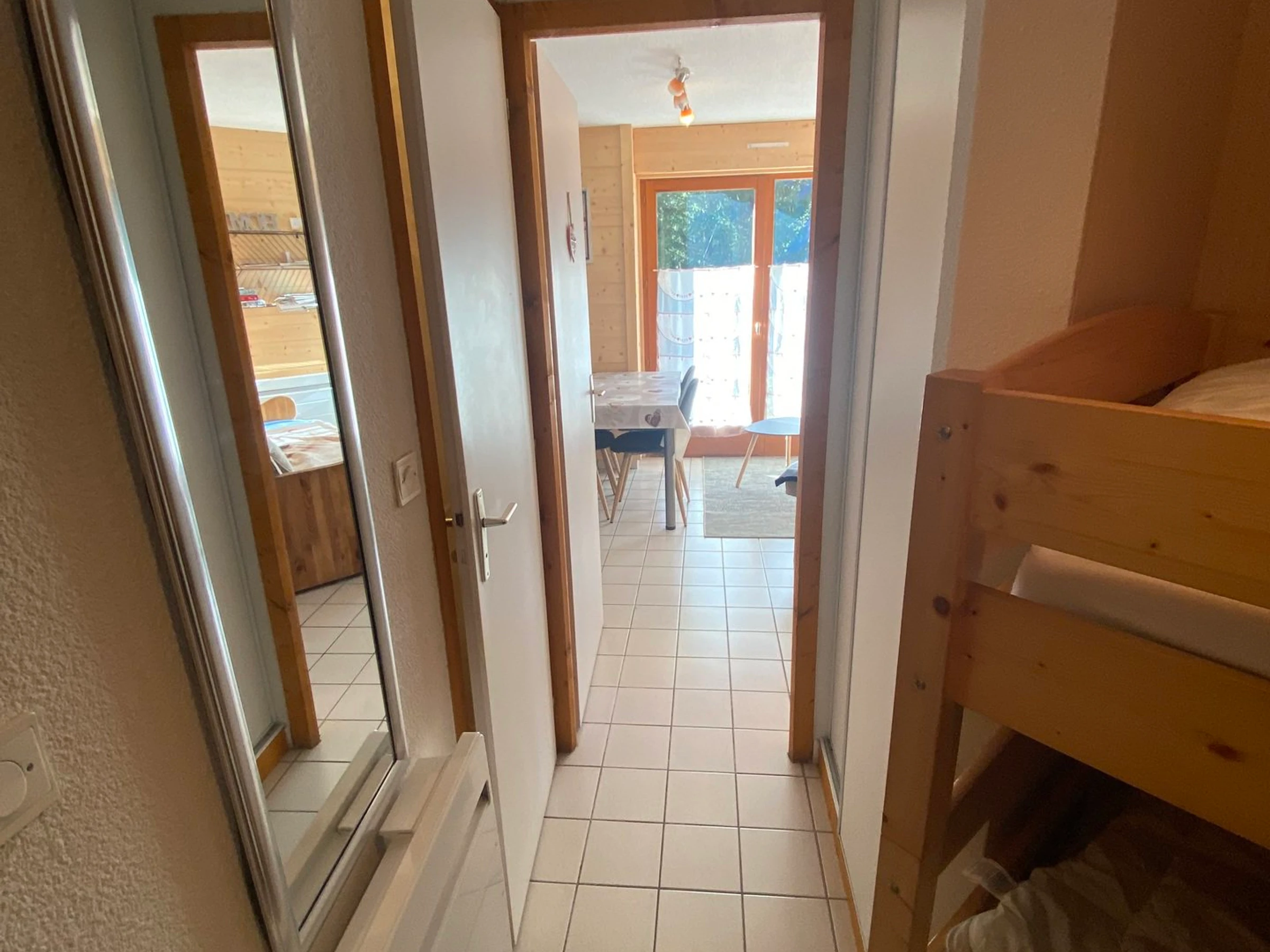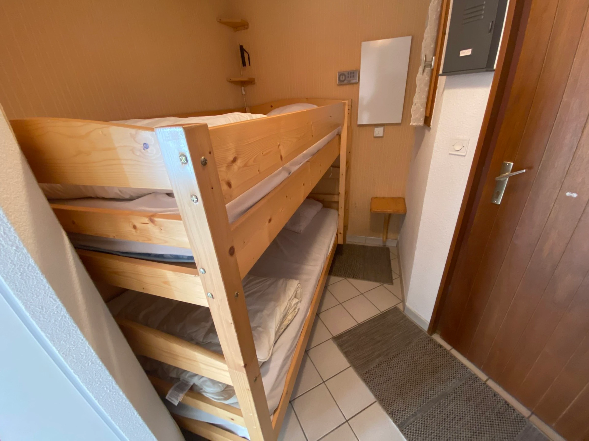 Erdgeschosswohnung, 27 m², bestehend aus einem Eingangsbereich mit gemütlicher Ecke, Etagenbetten (90 x 190 cm), einem Wohnzimmer mit voll ausgestatteter Küche, einem Schlafzimmer mit Doppelbett (140 x 190 cm), einem Badezimmer mit Badewanne, separatem WC und einer nach Süden/Osten ausgerichteten Terrasse.