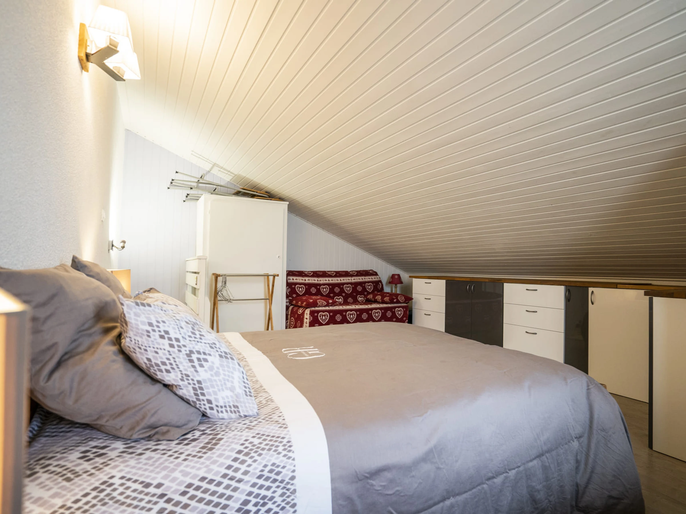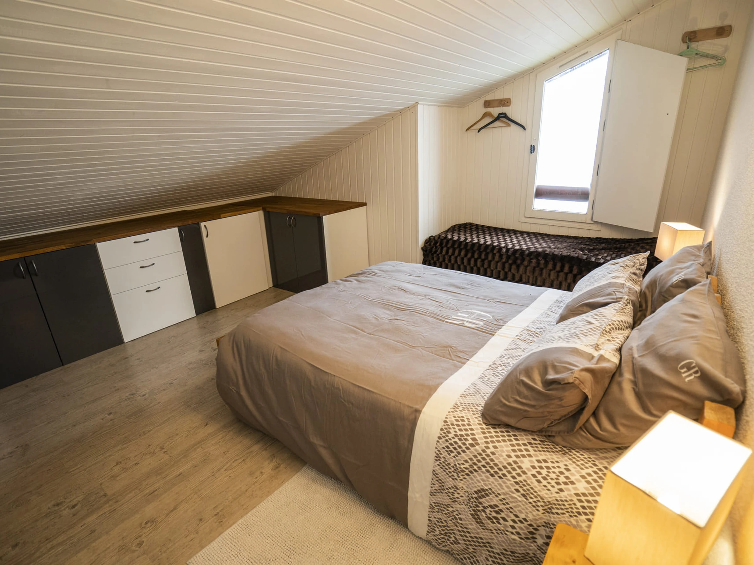 1 Zwischengeschoss mit 1 Doppelbett (140 x 190 cm) und 1 Zwischengeschoss mit 1 Doppelbett (140 x 190 cm) + 1 Einzelbett (80 x 190 cm), Hinweis: niedriges Zwischengeschoss