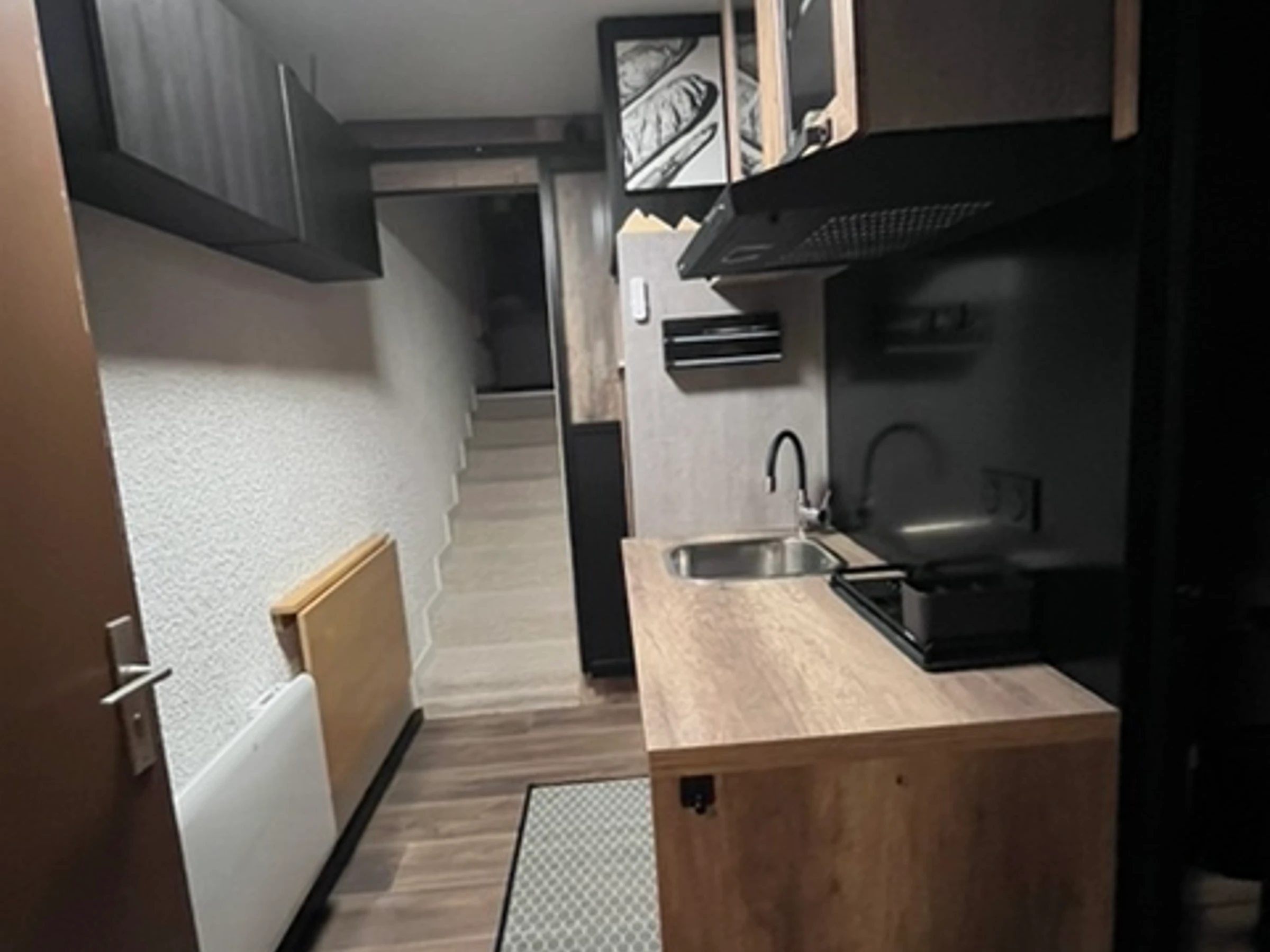 Das Apartment im 1. Stock (24 m²) besteht aus Eingangsbereich, Badezimmer mit Badewanne und WC sowie einer kleinen Küche. Über wenige Stufen gelangt man in ein Wohnzimmer mit Doppelschlafsofa, einen Schlafbereich mit Doppelbett (140 x 190 cm) – Spannbettlaken 160 x 190 cm – und einen Westbalkon.