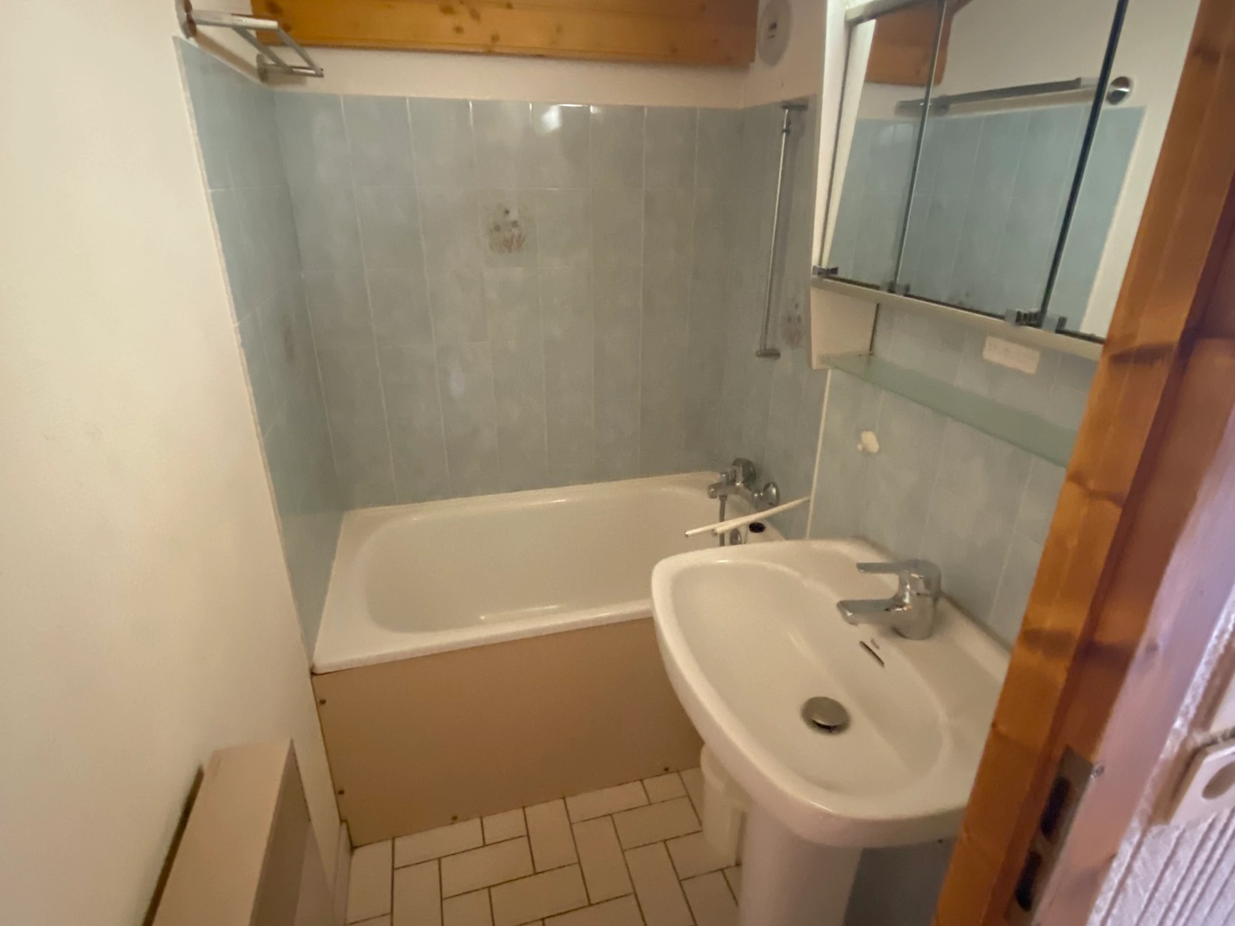 Die Wohnung befindet sich im 1. Stock und besteht aus einem Eingangsbereich, einem Schlafzimmer mit Doppelbett (140 x 190 cm), einem Badezimmer mit kleiner Badewanne, separatem WC, einem Wohnzimmer mit Schlafcouch (2 x 1 Person), einer ausgestatteten Küchenzeile und einem Westbalkon.