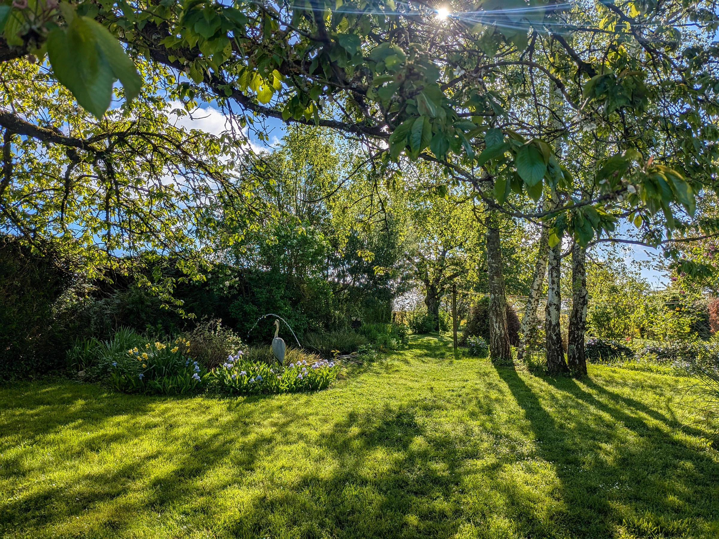 Ein großer, wunderschöner Ziergarten mit Gemüsebeet und Obstbäumen lädt zum Teilen mit den Gastgebern oder zum Entspannen ein. 10 % Rabatt ab der 4. Nacht.
