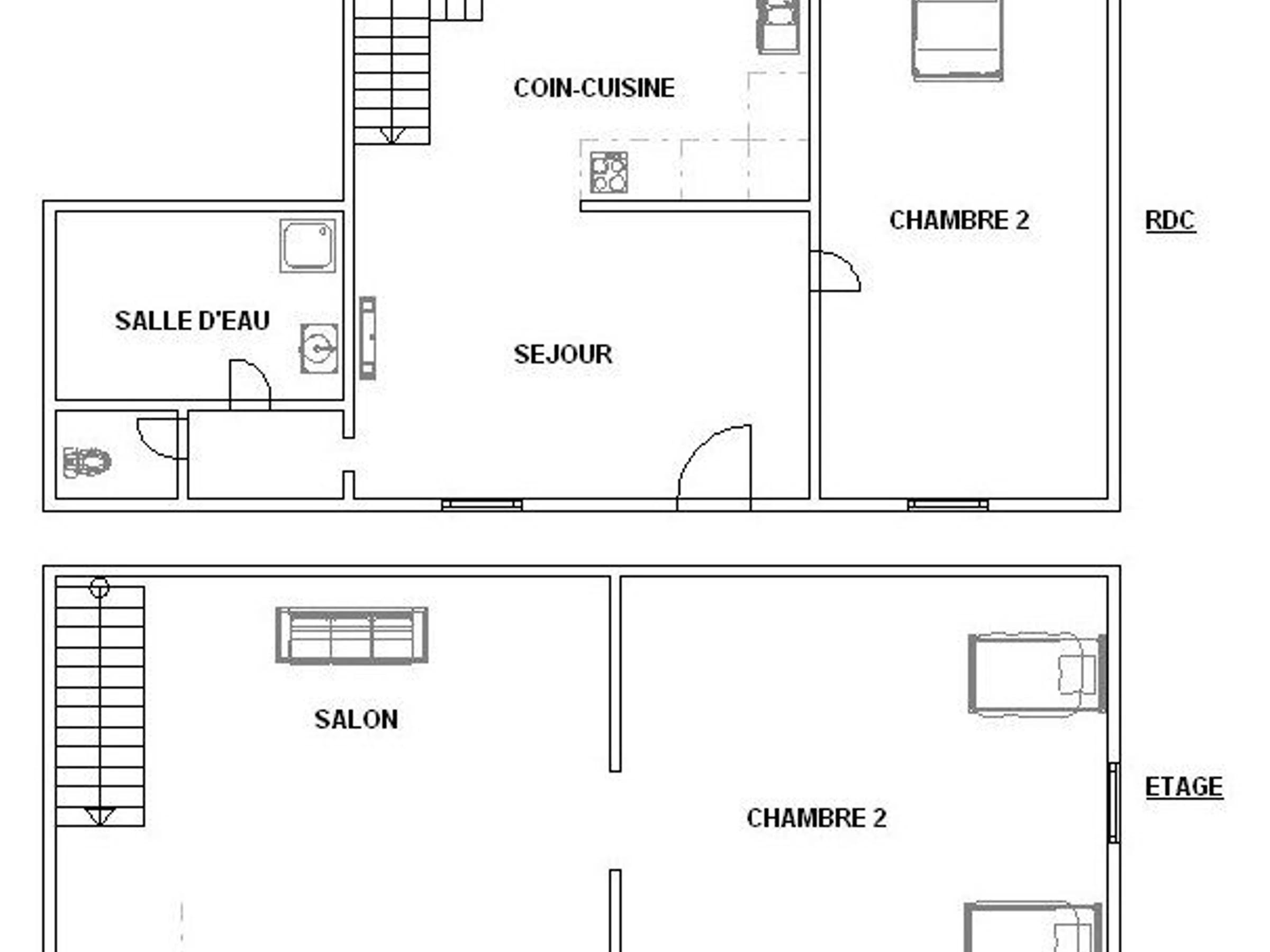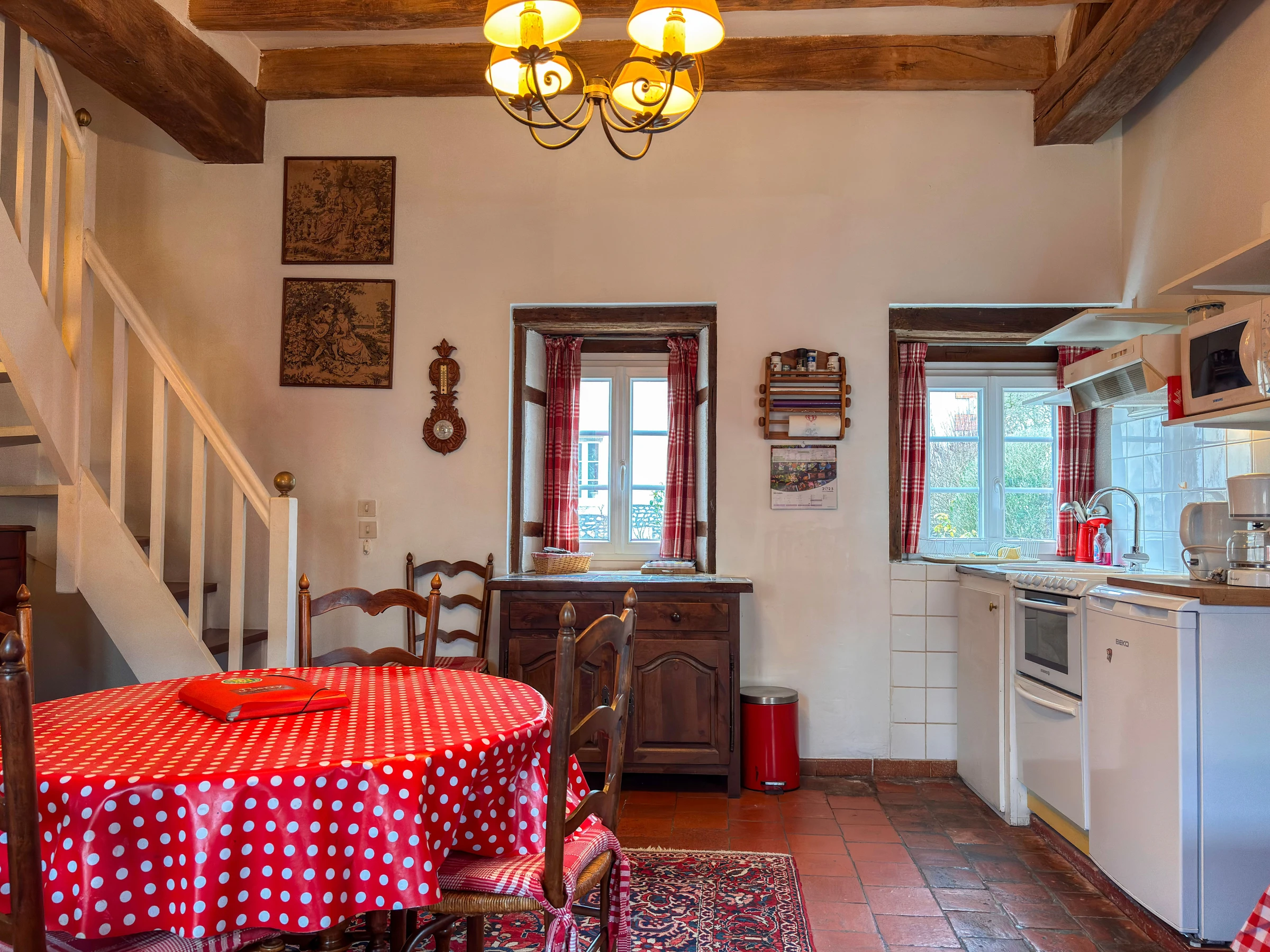 Erdgeschoss: Esszimmer/Küche – 1 Schlafzimmer mit 1 Doppelbett – Duschbad – WC.