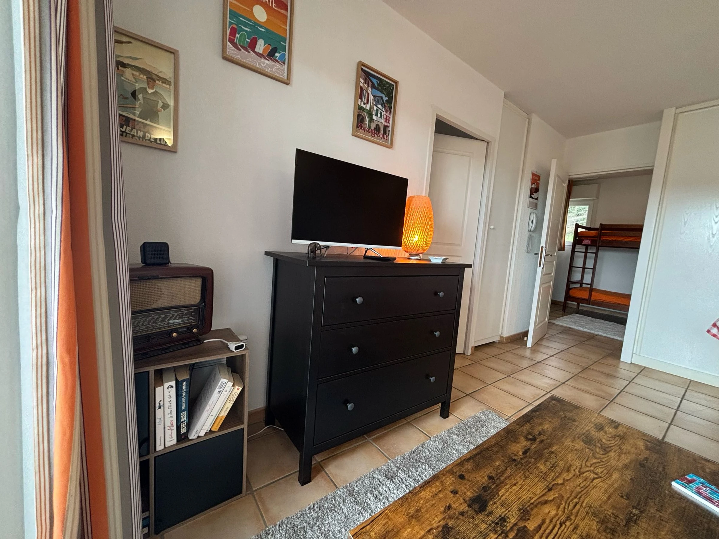 Dieses Apartment befindet sich im 1. Stock einer Ferienresidenz mit Gemeinschaftspool in Strandnähe. Entdecken Sie dieses Apartment mit einem Wohnzimmer mit einem 140 x 190 cm großen Schlafsofa und Zugang zu einer möblierten Terrasse mit freiem Blick auf Fort Socoa. Es verfügt außerdem über eine offene Küche, einen Essbereich, ein Schlafzimmer mit einem 140 x 190 cm großen Bett, ein Badezimmer und ein Gäste-WC.