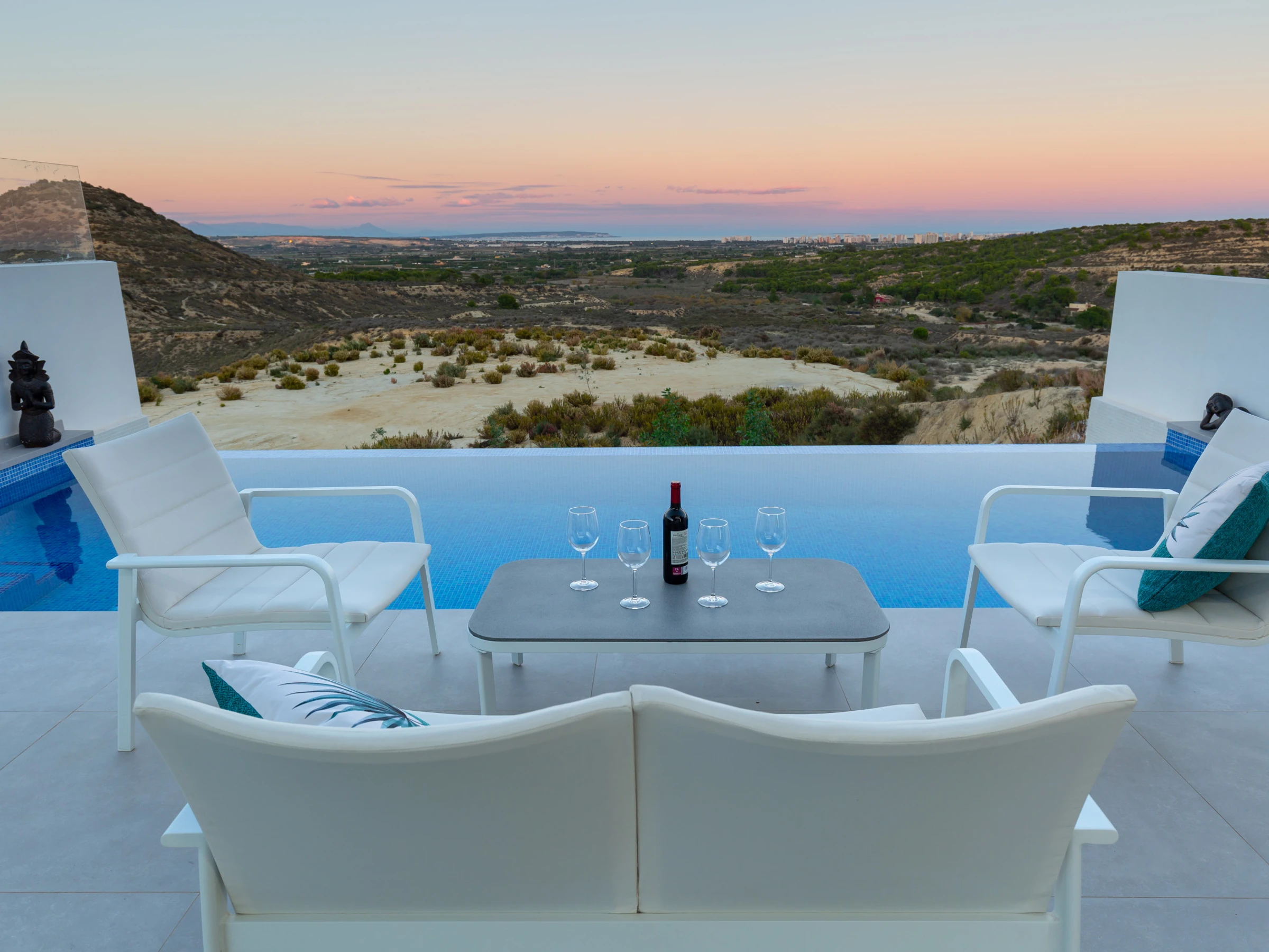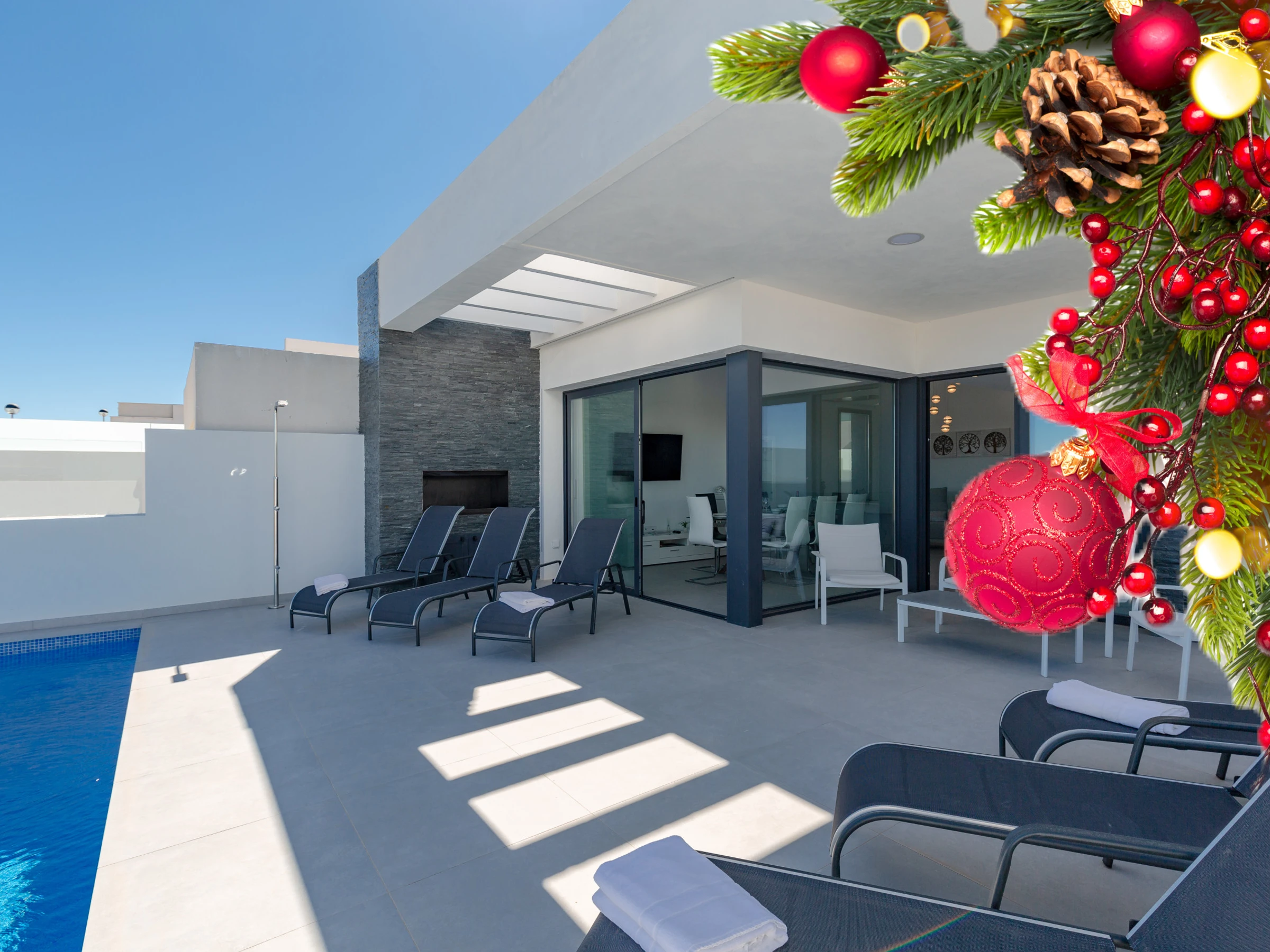 Die Unterkunft verfügt über garten, gartenmöbel, umzäuntes grundstück, 100 m² terrasse, waschmaschine, trockner, grill, bügeleisen/-brett, internet (WLAN), haartrockner, balkon, zentralheizung, klimaanlage, swimming-pool privater pool, garage in auf dem grundstück, 2 Fernsehgeräte, radio.