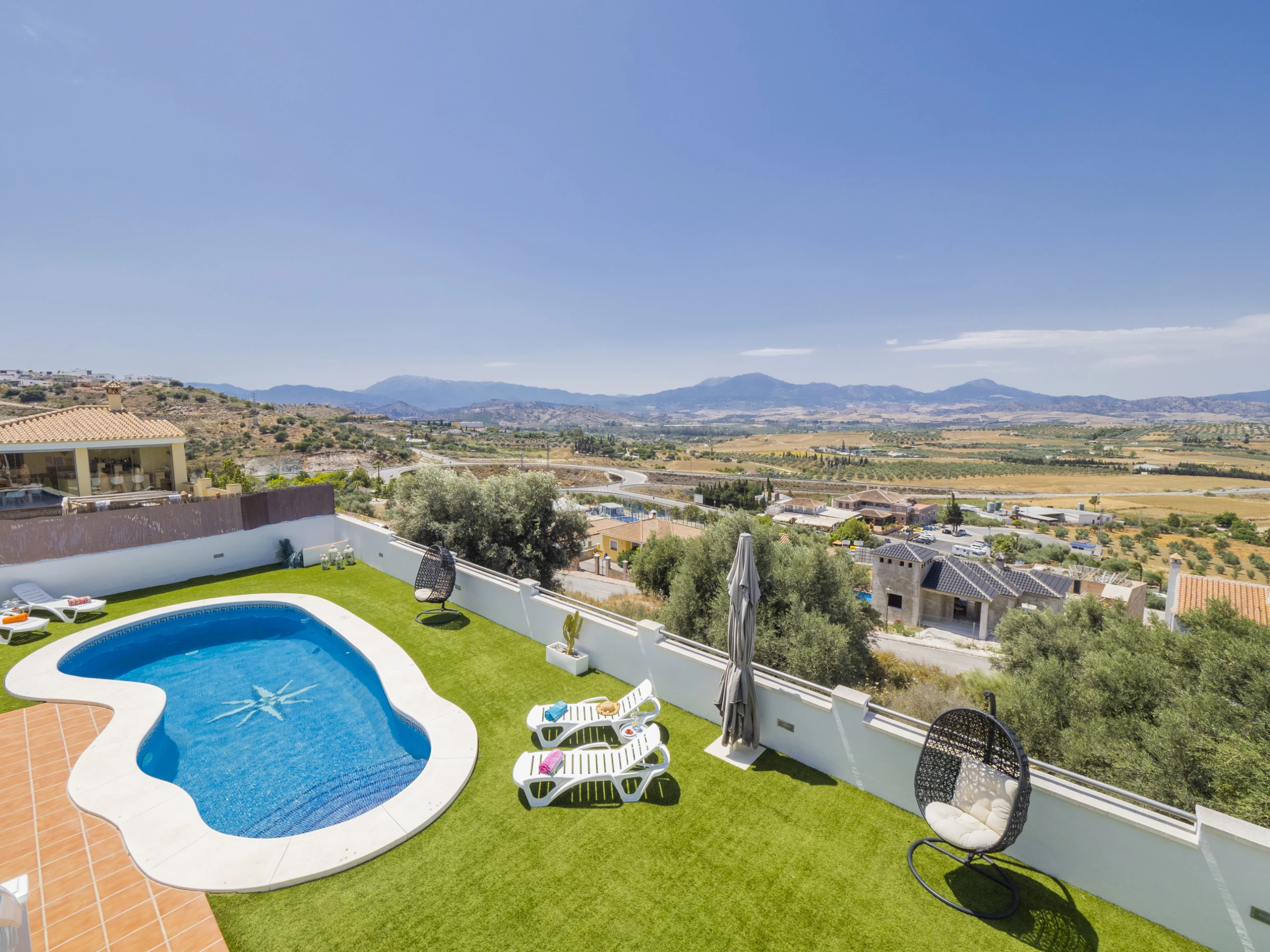 Die Villa verteilt sich auf zwei Etagen, mit freiem Blick auf das Guadalhorce-Tal und einer hervorragenden Sonnenlage. Die Terrasse mit Gartenmöbeln ermöglicht es, die frische Luft und die Aussicht zu genießen. Die Küche ist separat und komplett ausgestattet, um Ihre Mahlzeiten bequem zuzubereiten. Der Wohn-Essbereich ist geräumig und verfügt über einen Smart-TV, um sich nach einem Tag der Erkundung oder Erholung zu entspannen.