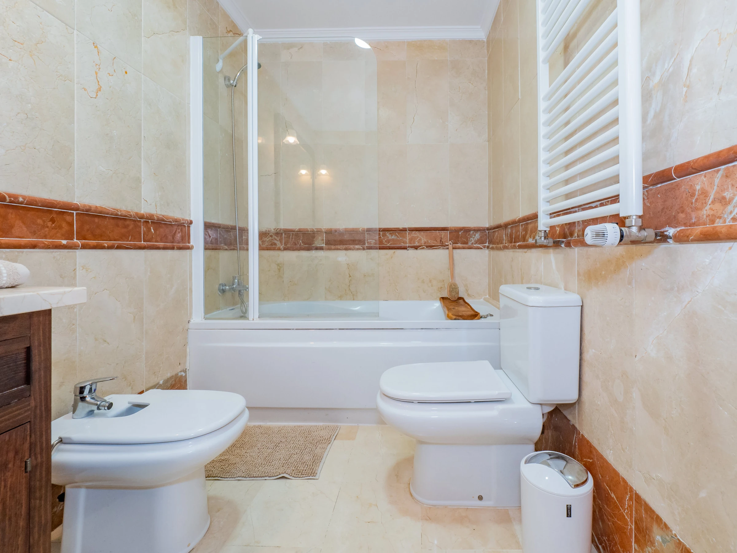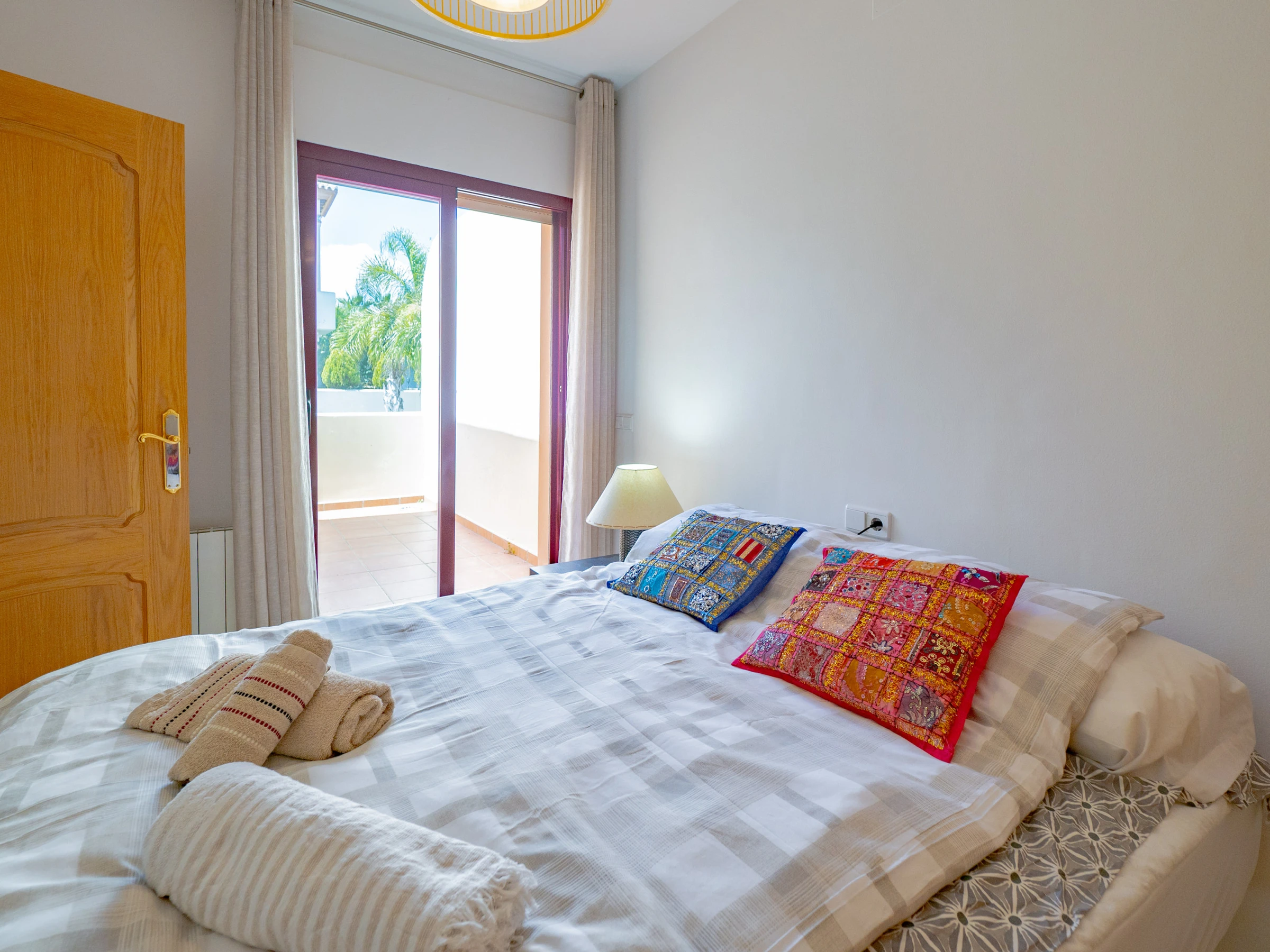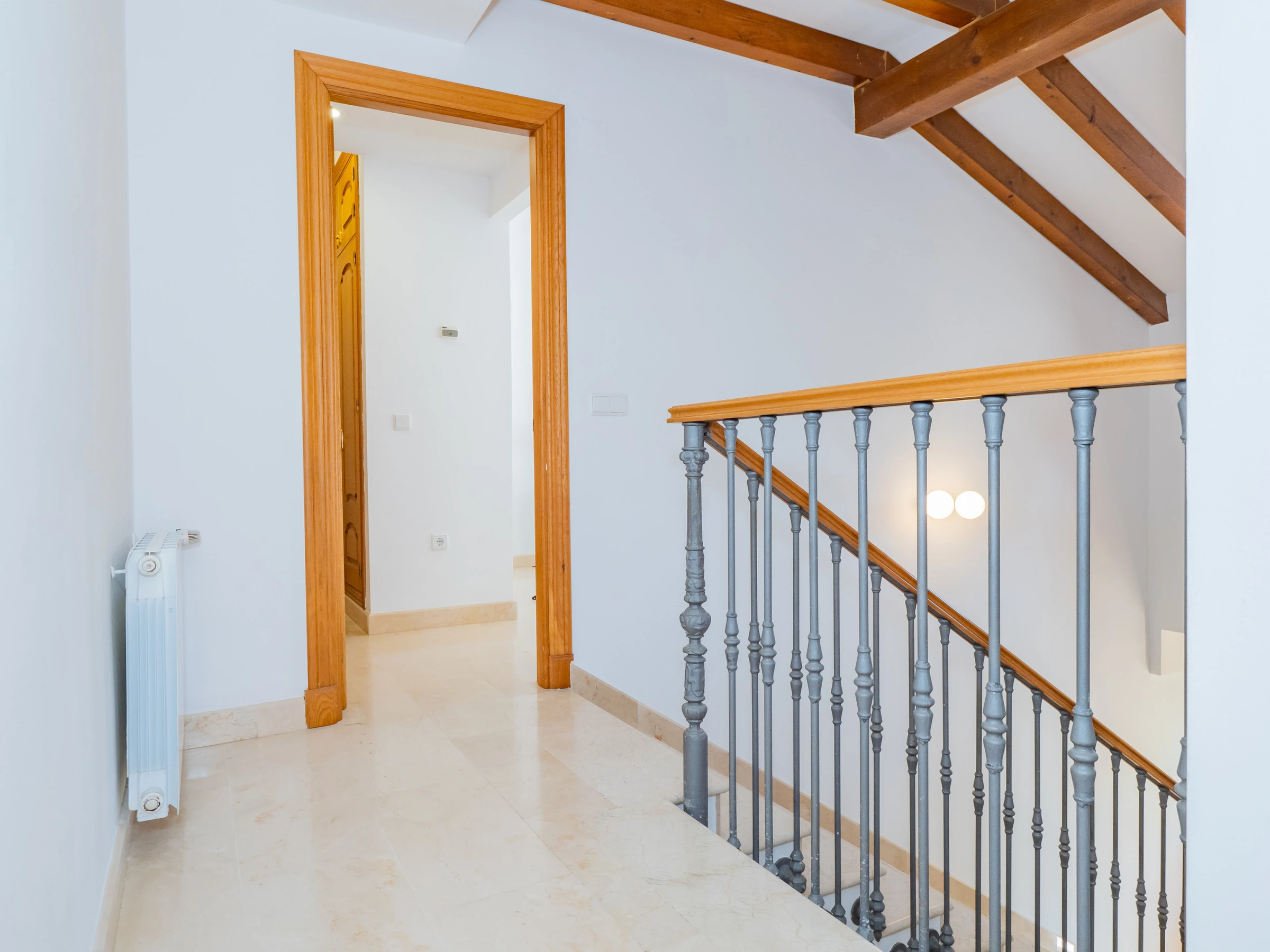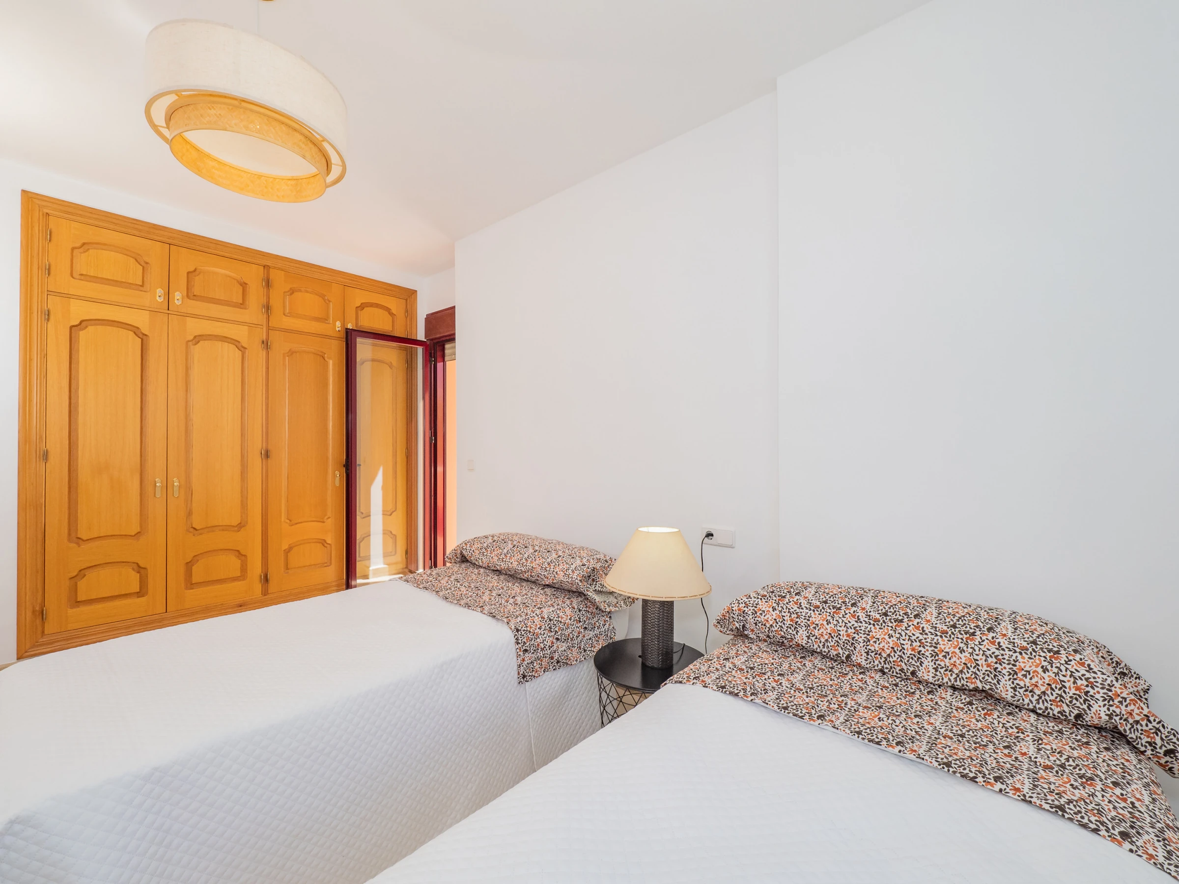 Beim Hinaufsteigen der Treppe wirst du drei Schlafzimmer entdecken, alle mit Zugang zu einer privaten Terrasse und geräumigen Schränken. Eines davon enthält ein Doppelbett und ein eigenes Badezimmer; das zweite hat zwei Einzelbetten und das dritte ein Doppelbett. Die zentrale Klimaanlage deckt auch diese Etage ab, um deine Erholung zu jeder Jahreszeit zu gewährleisten.