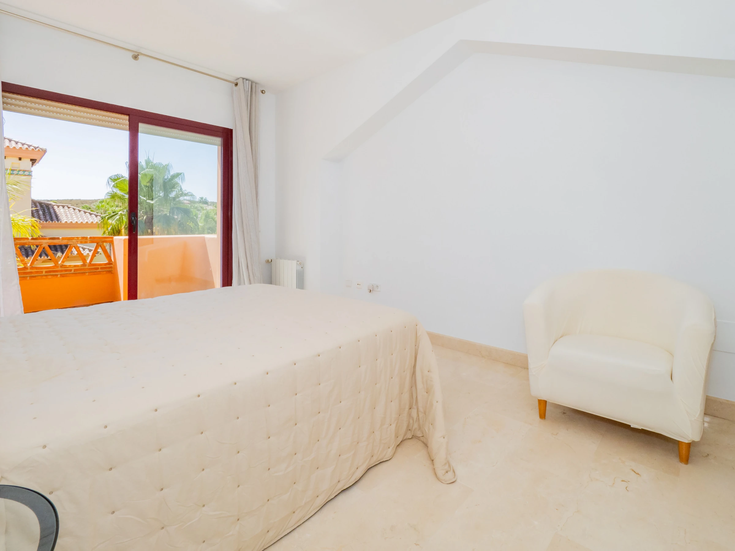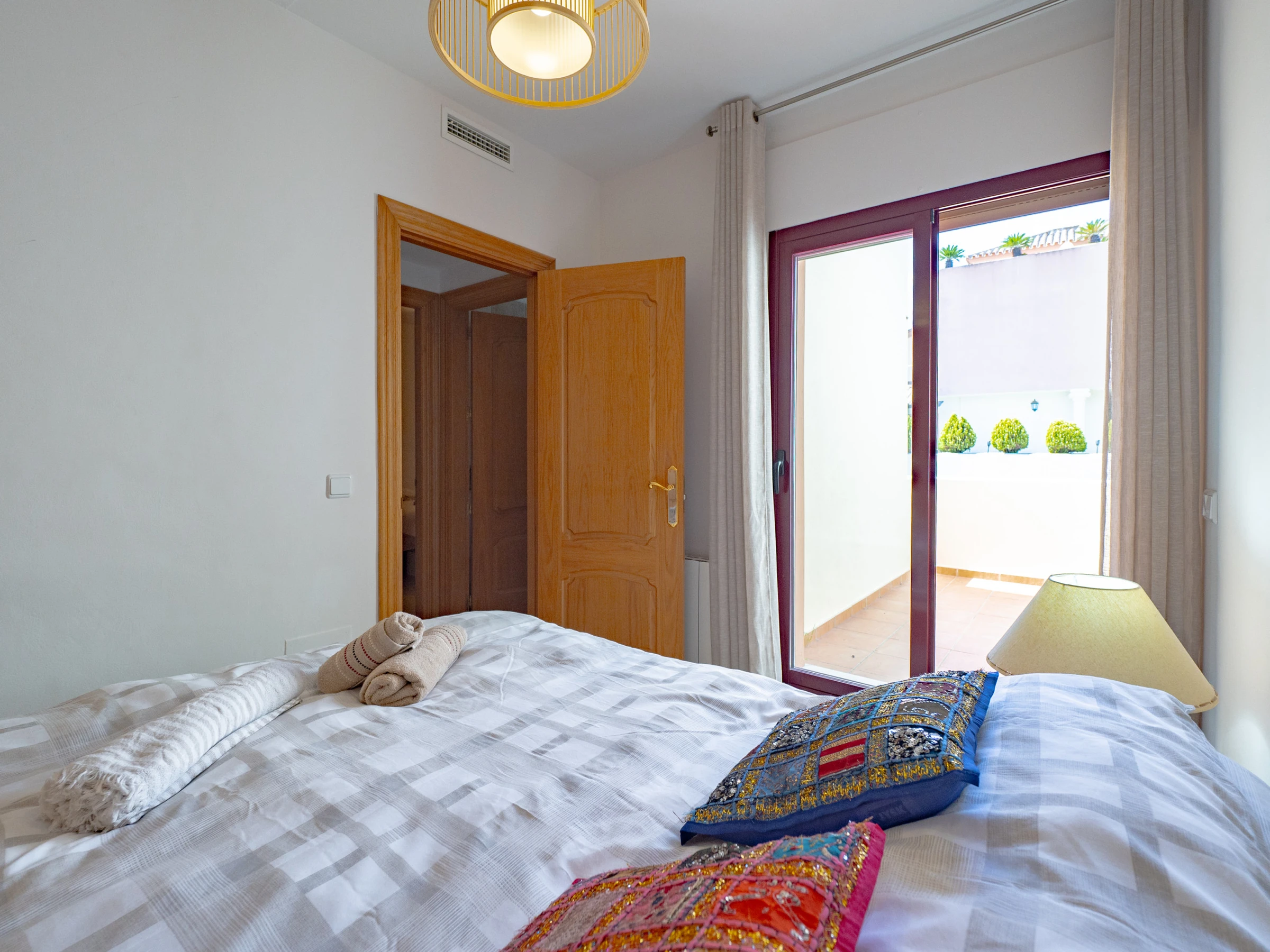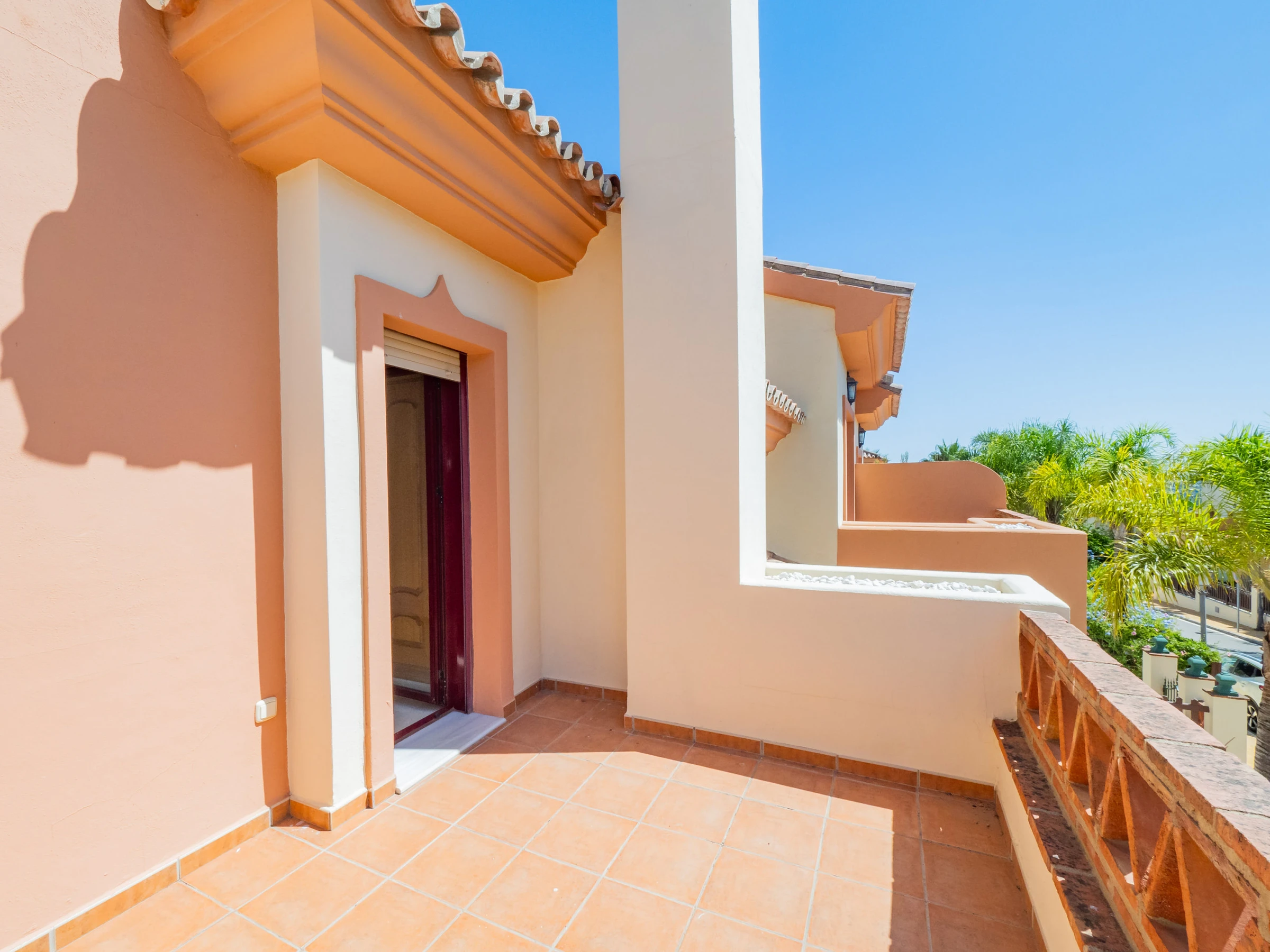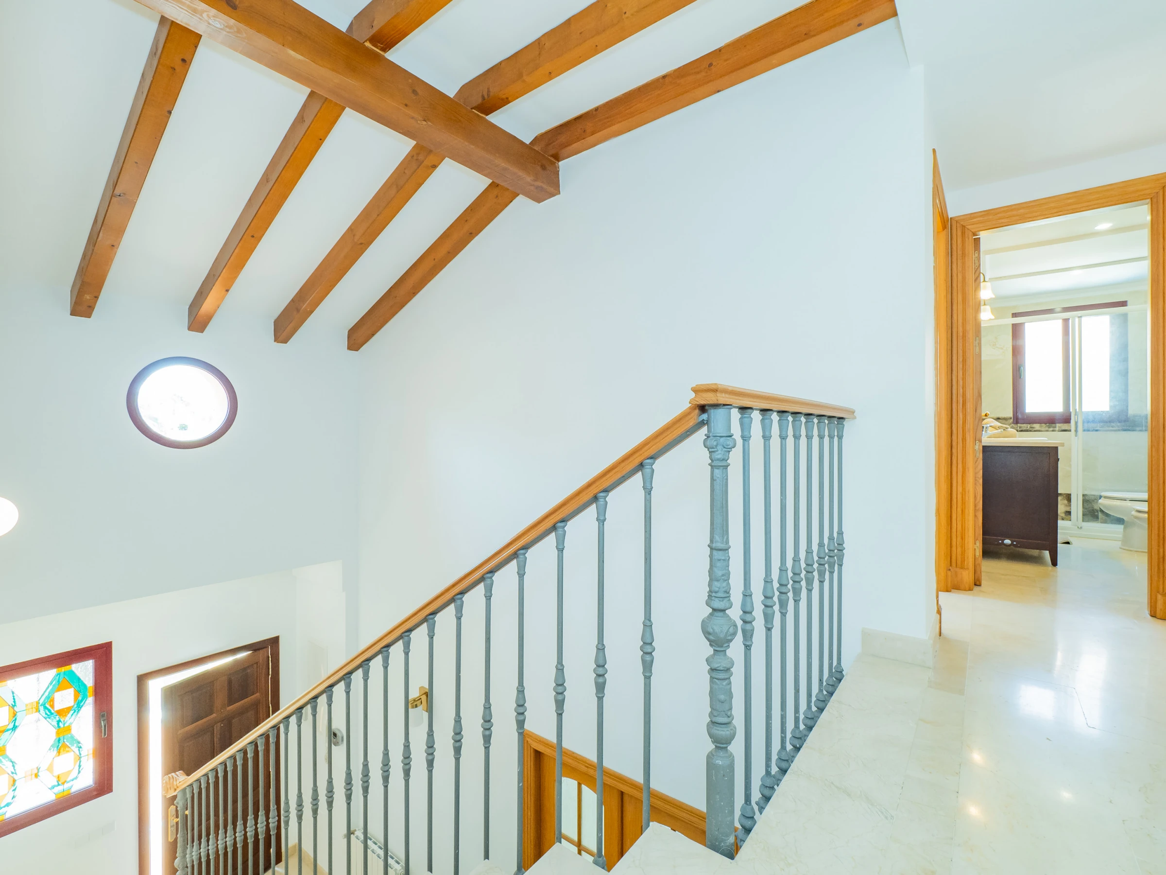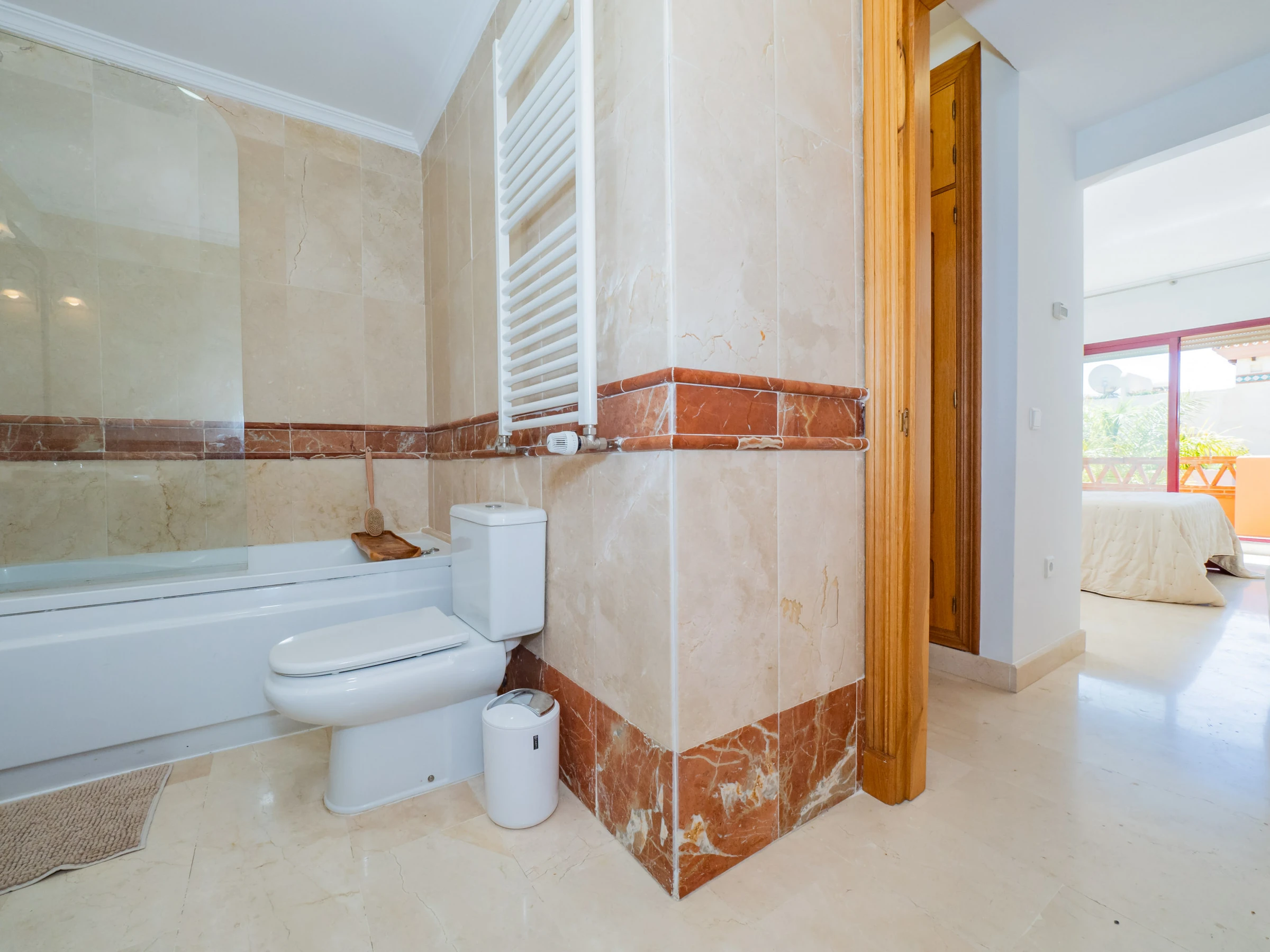 Beim Hinaufsteigen der Treppe wirst du drei Schlafzimmer entdecken, alle mit Zugang zu einer privaten Terrasse und geräumigen Schränken. Eines davon enthält ein Doppelbett und ein eigenes Badezimmer; das zweite hat zwei Einzelbetten und das dritte ein Doppelbett. Die zentrale Klimaanlage deckt auch diese Etage ab, um deine Erholung zu jeder Jahreszeit zu gewährleisten.