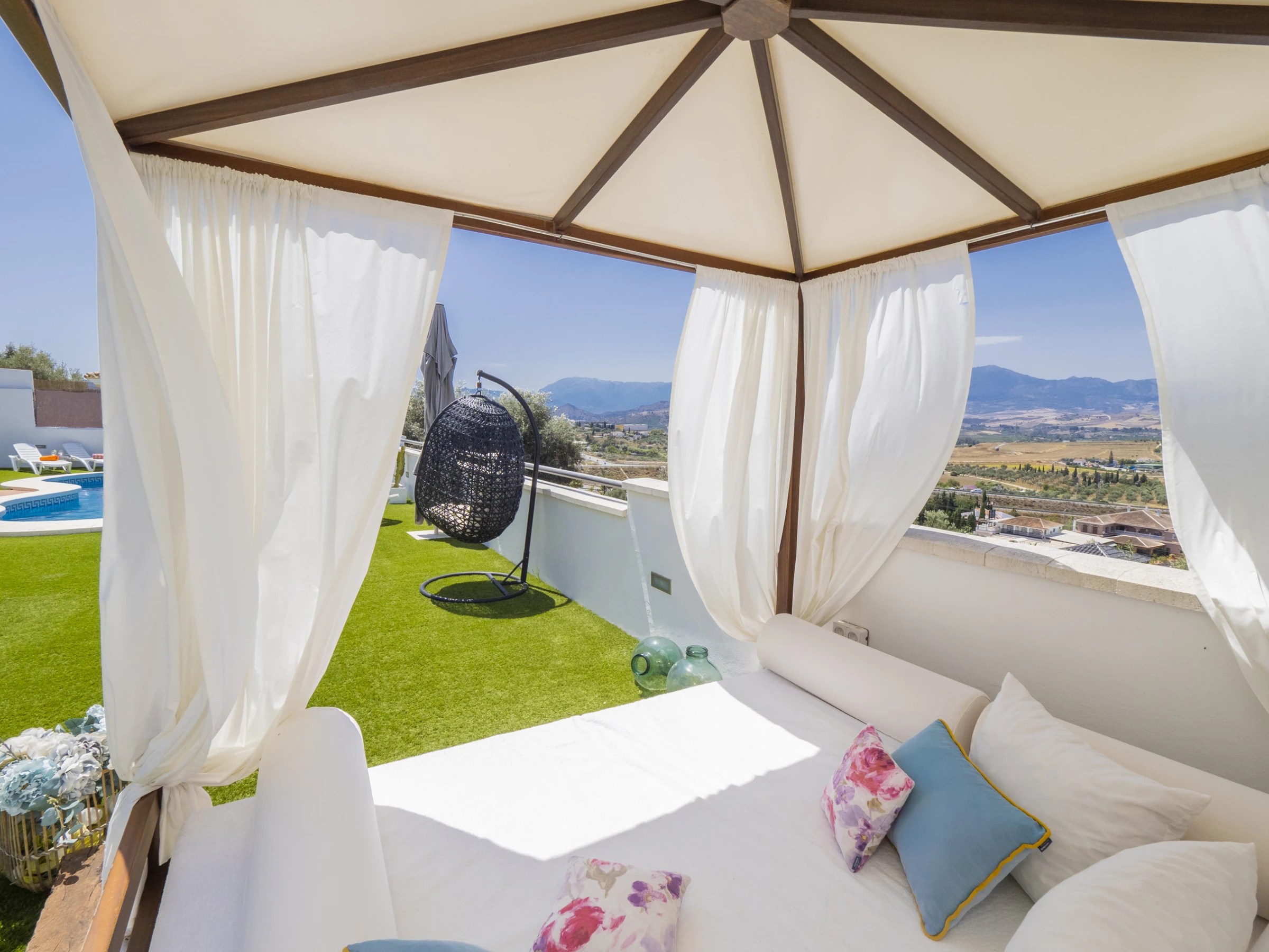 Diese Ferienvilla mit Whirlpool in der Urbanisation Sierra Gorda ist perfekt für unvergessliche Ferien mit Familie oder Freunden. Mit Platz für 12 Personen bietet sie eine ideale Kombination aus Erholung und Unterhaltung. Sie verfügt über einen wunderschönen Pool und einen im Preis inbegriffenen Whirlpool, um sich zu entspannen und die beeindruckenden Ausblicke auf das Guadalhorce-Tal zu genießen. Die Terrasse mit Gartenmöbeln und die Grillzone sind ideal, um angenehme Momente im Freien zu teilen.