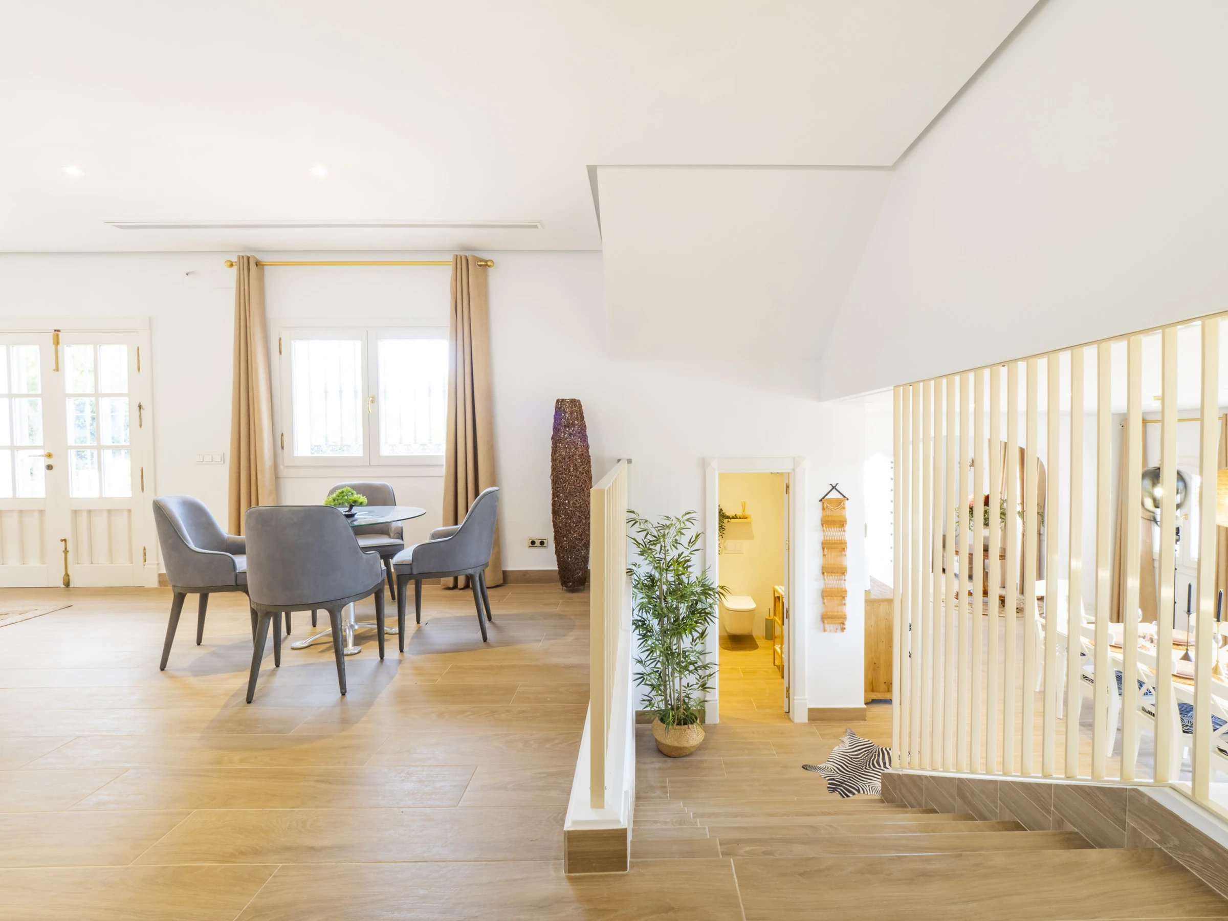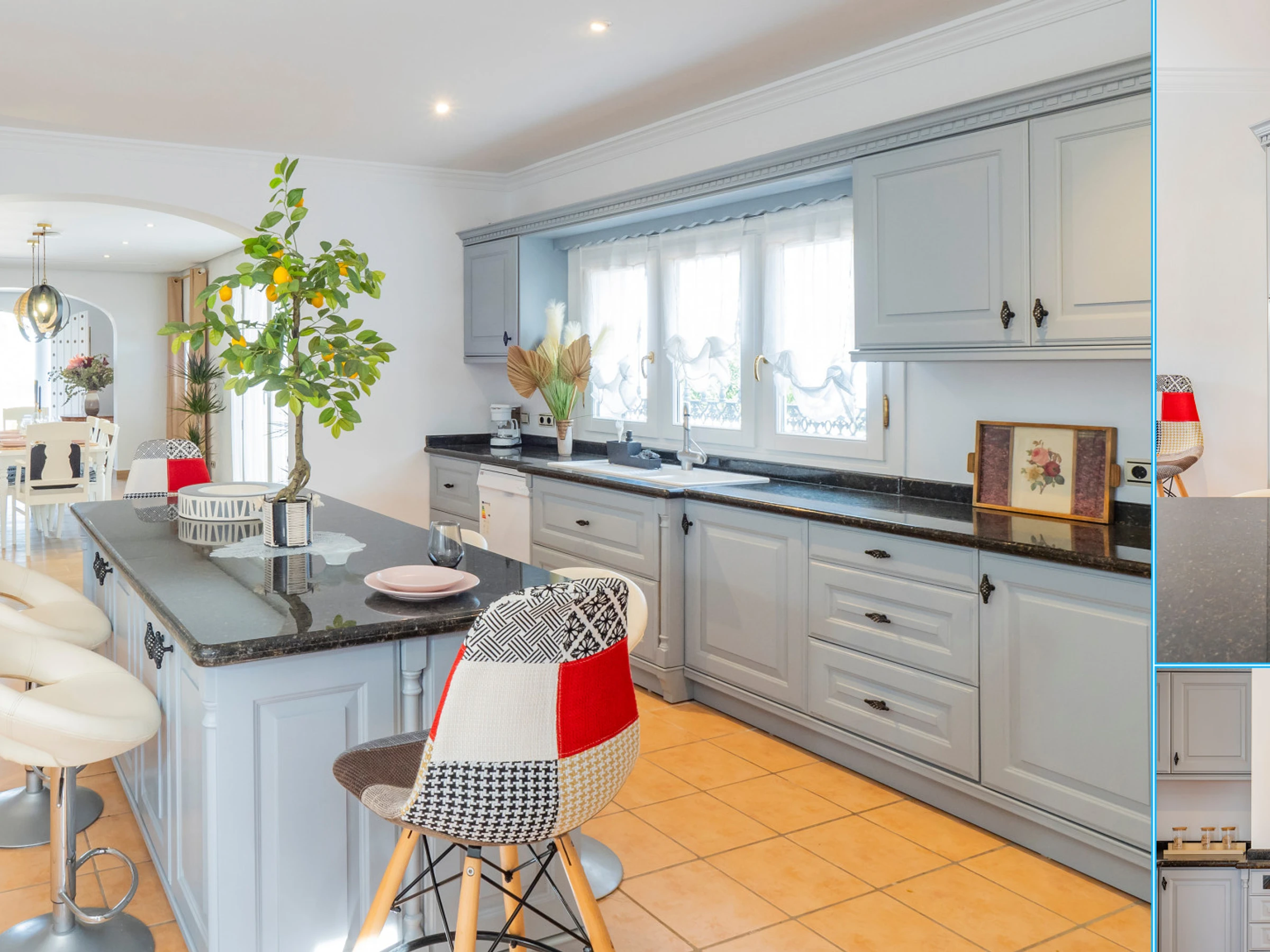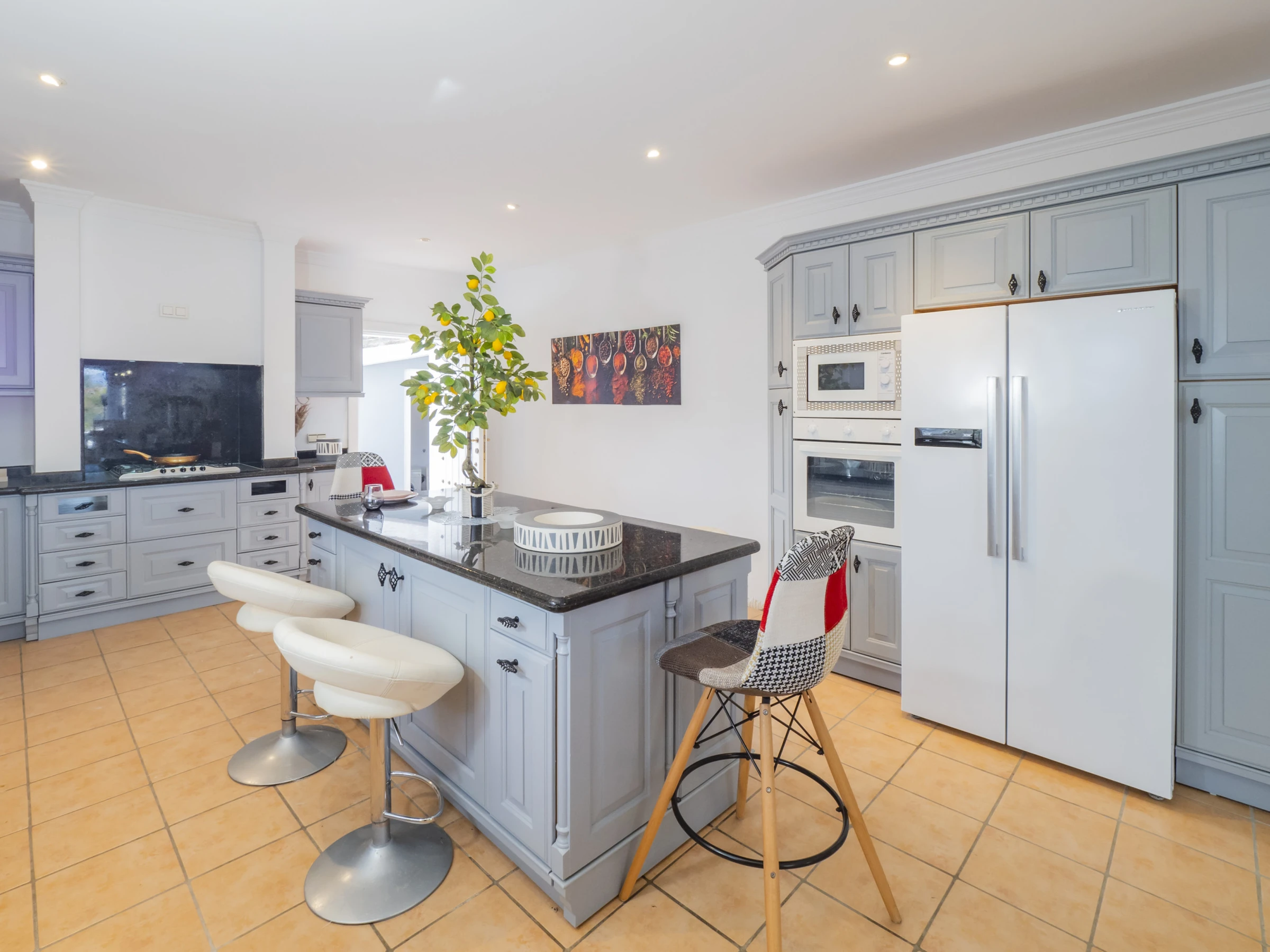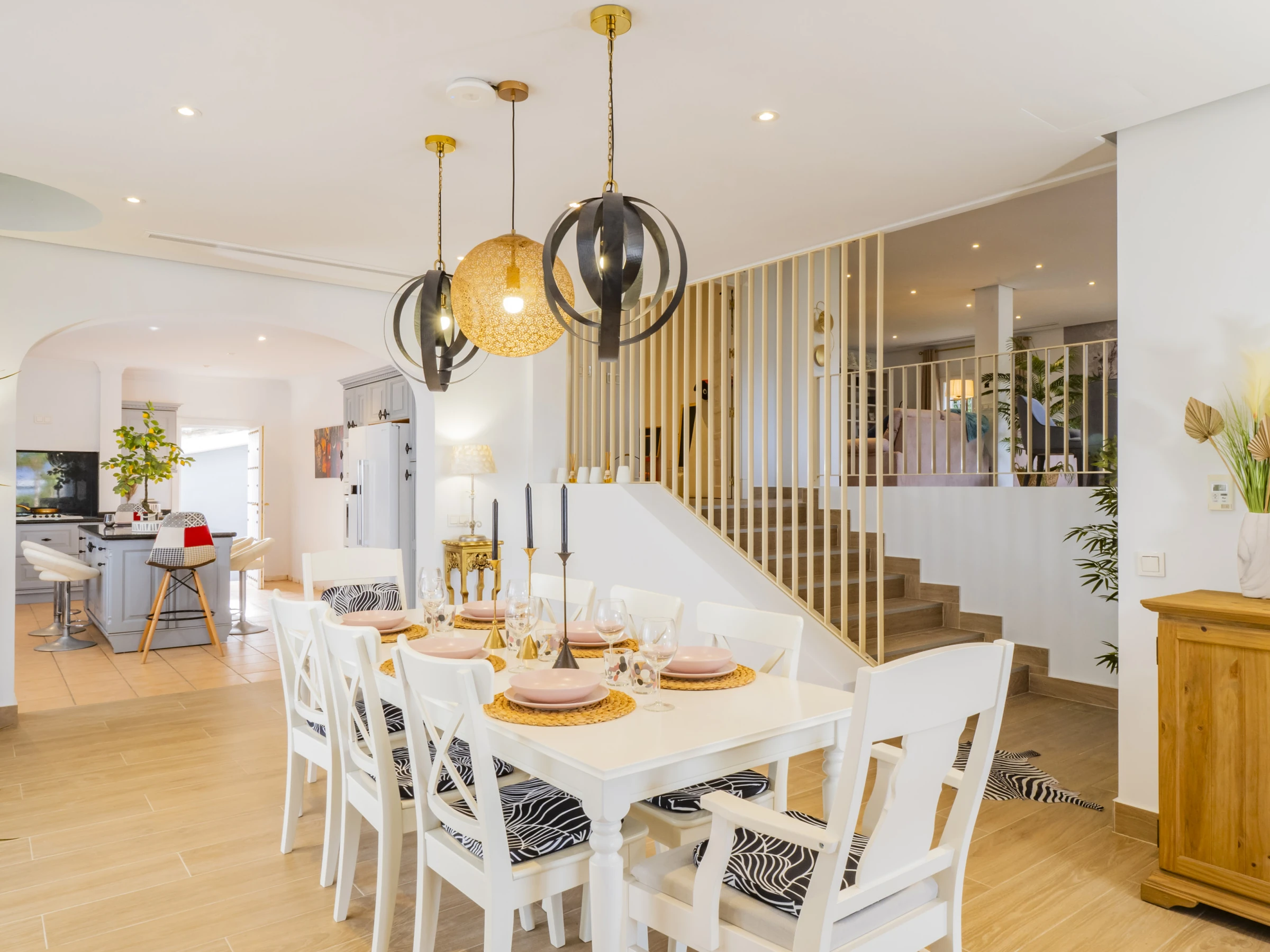 Das Innere zeichnet sich durch seinen modernen und gemütlichen Stil aus. Der Eingang ist mit zeitgenössischer Kunst und einem Zen-Garten dekoriert, der Gelassenheit vermittelt. Das geräumige Wohnzimmer mit Kamin und Fernseher mit Internetanschluss schafft eine perfekte Atmosphäre für Entspannungs- oder Unterhaltungsabende. Die offene Küche ist komplett mit modernen Haushaltsgeräten ausgestattet: Kühlschrank, Mikrowelle, Ofen, Geschirrspüler, Kaffeemaschine, Toaster und mehr, die Komfort und Funktionalität für die Zubereitung jeder Mahlzeit sicherstellen. 🍽️✨