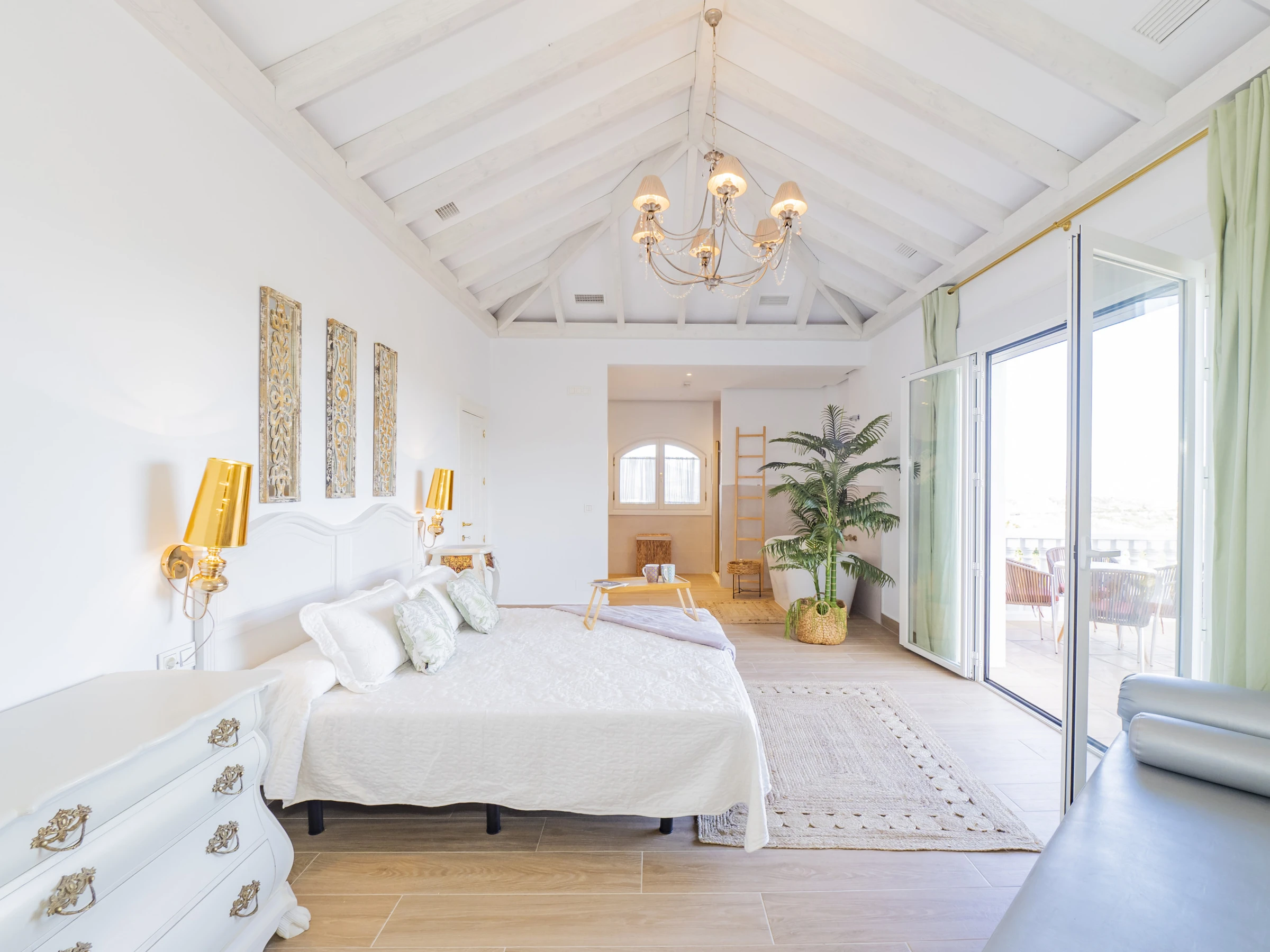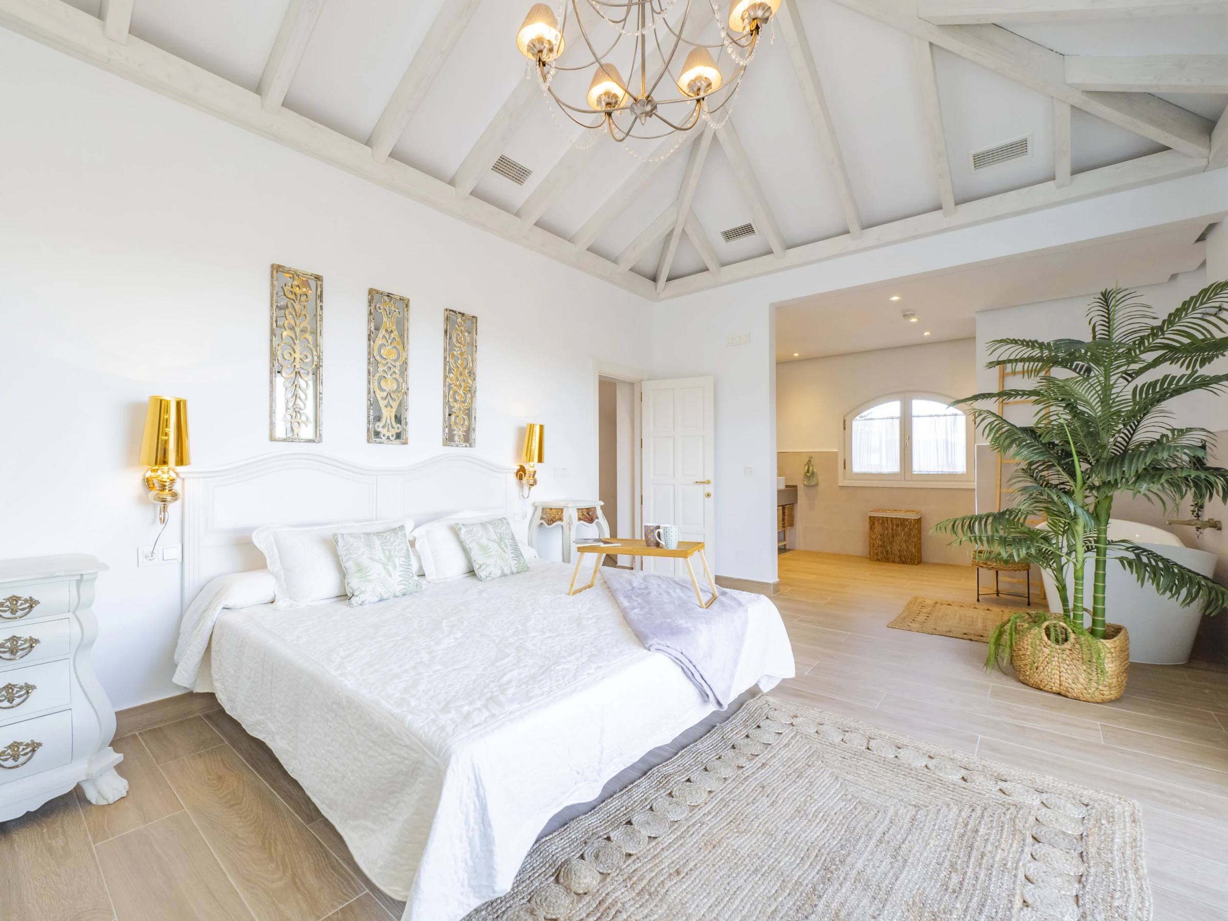 Die Villa verfügt über ein Kinderschlafzimmer in der Nähe der Gemeinschaftsbereiche, ideal um die Kleinsten sicher und in der Nähe der Familie zu halten. Das Hauptschlafzimmer ist ein Ruheoase mit privater Terrasse, Vintage-Chaiselongue und Badezimmer en Suite mit Regendusche, separater Badewanne und Ankleidezimmer. Ein weiteres Schlafzimmer verfügt ebenfalls über ein Badezimmer en Suite und eine Badewanne, während die restlichen Schlafzimmer Doppel- oder Einzelbetten bieten und sich an verschiedene Bedürfnisse anpassen. 🛏️👶