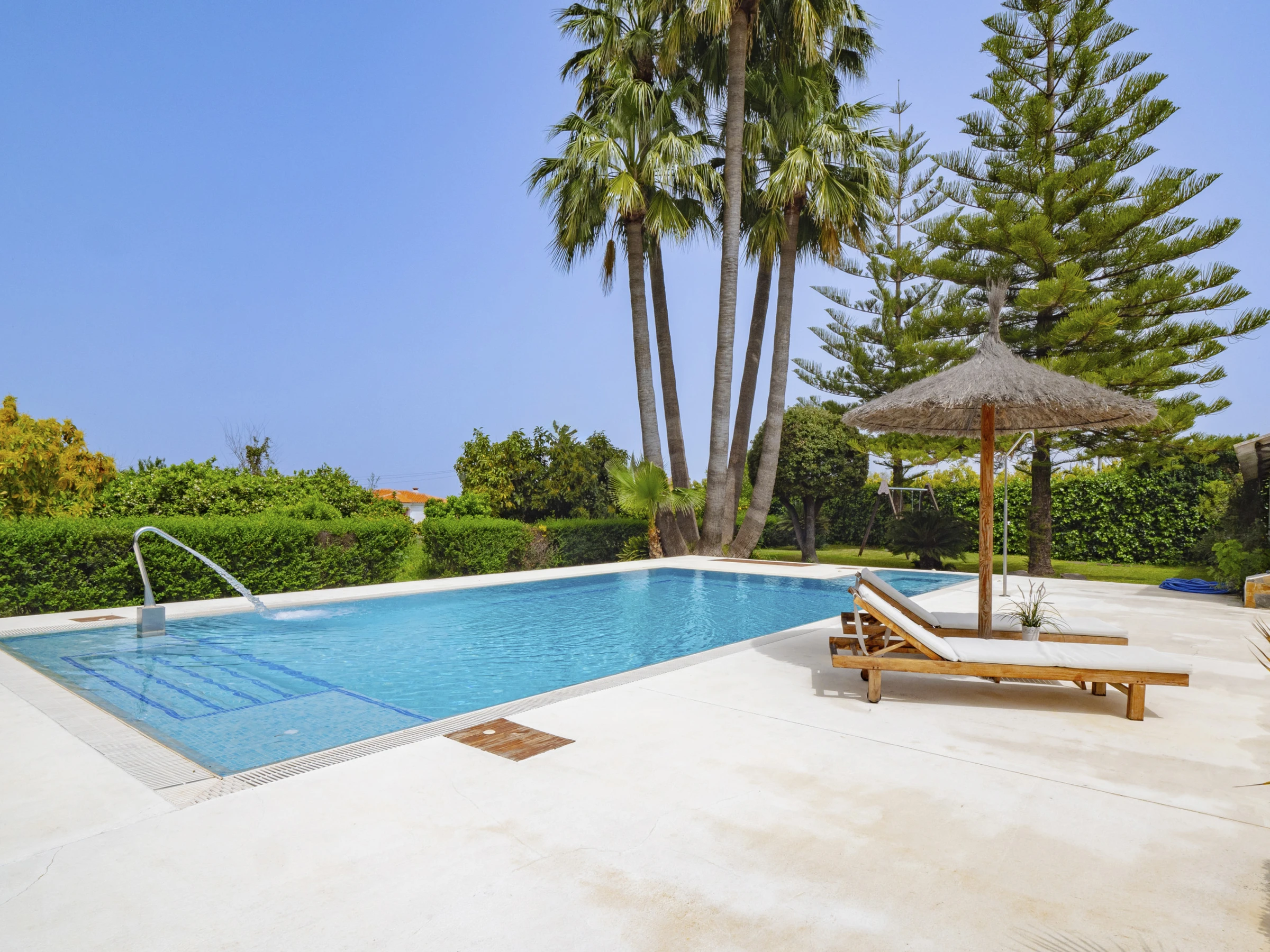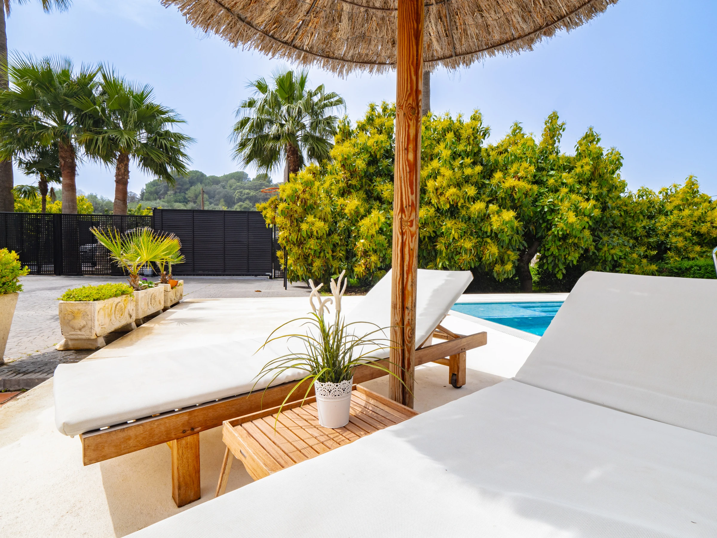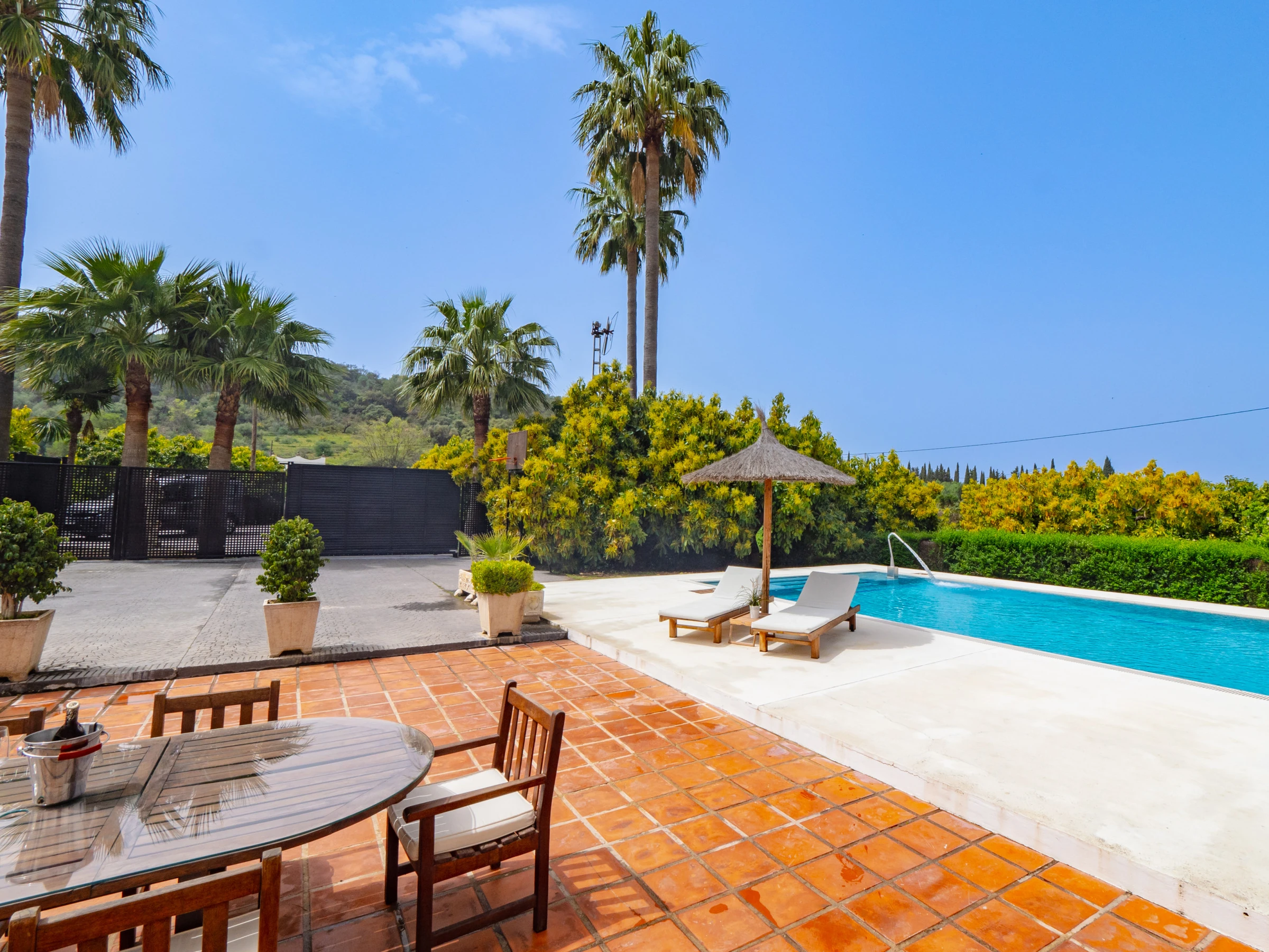 Im Freien genießen Sie einen privaten Garten mit Pool, Kinderbereich mit Schaukel für die Kleinsten, Gartenmöbeln und einem perfekten Grill für Familientreffen. Das eingezäunte Grundstück garantiert Privatsphäre und Sicherheit, während die schönen Blicke auf die Berge und die ländliche Umgebung Sie vom städtischen Stress abschalten lassen.