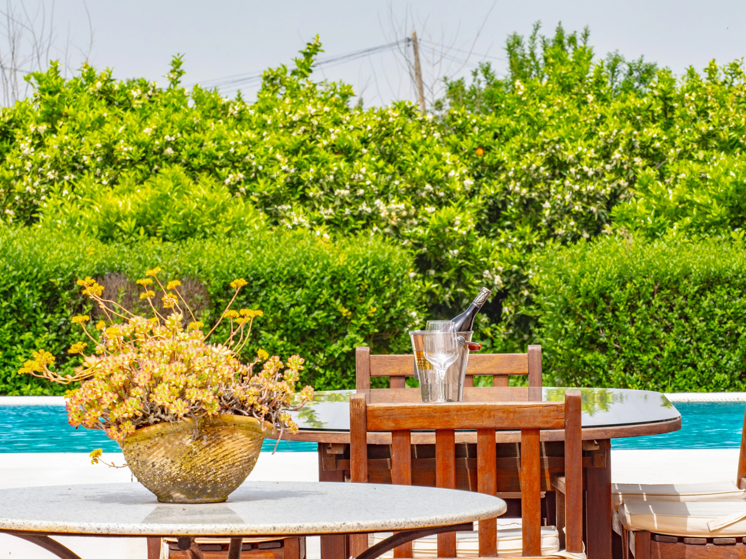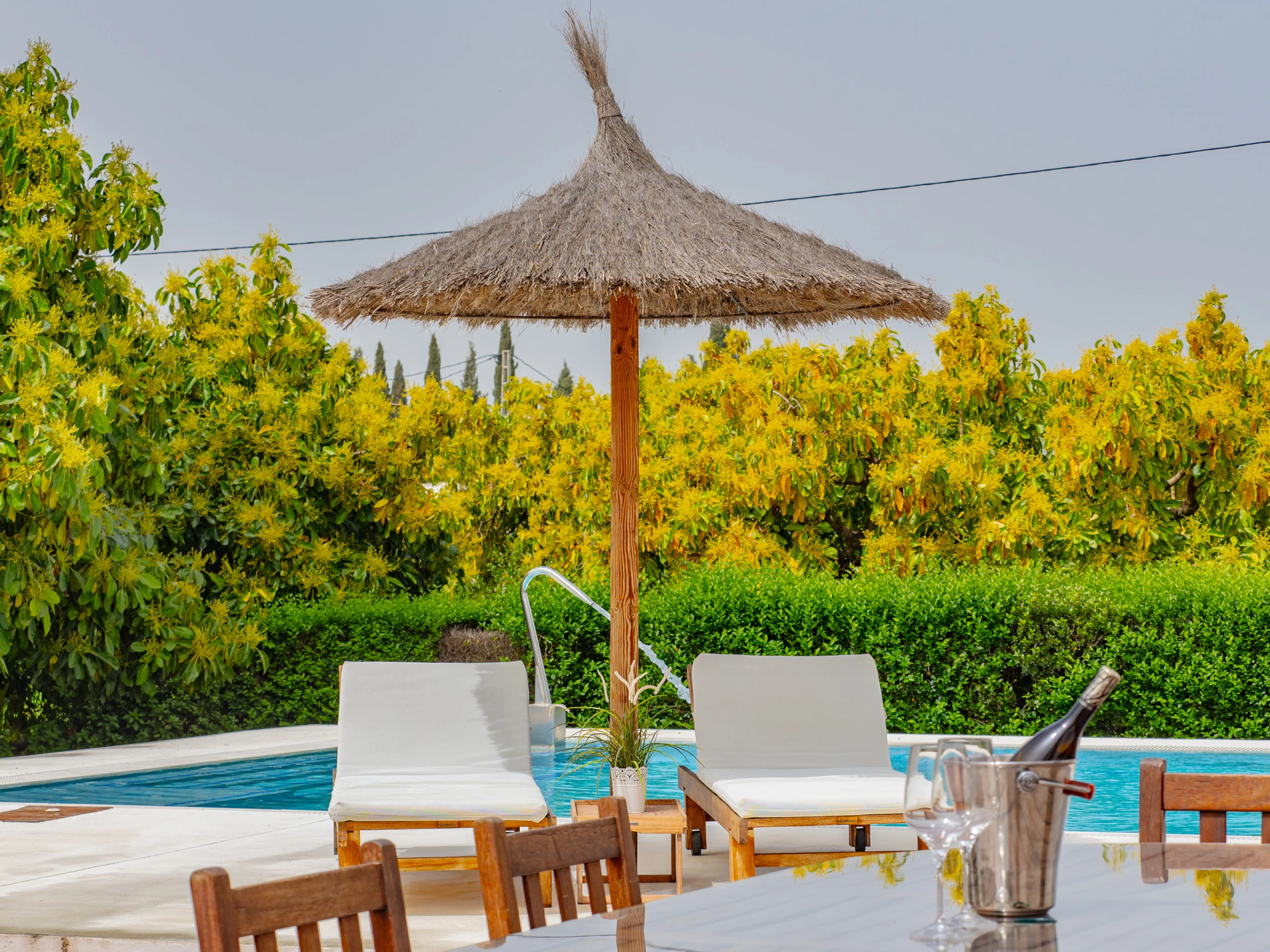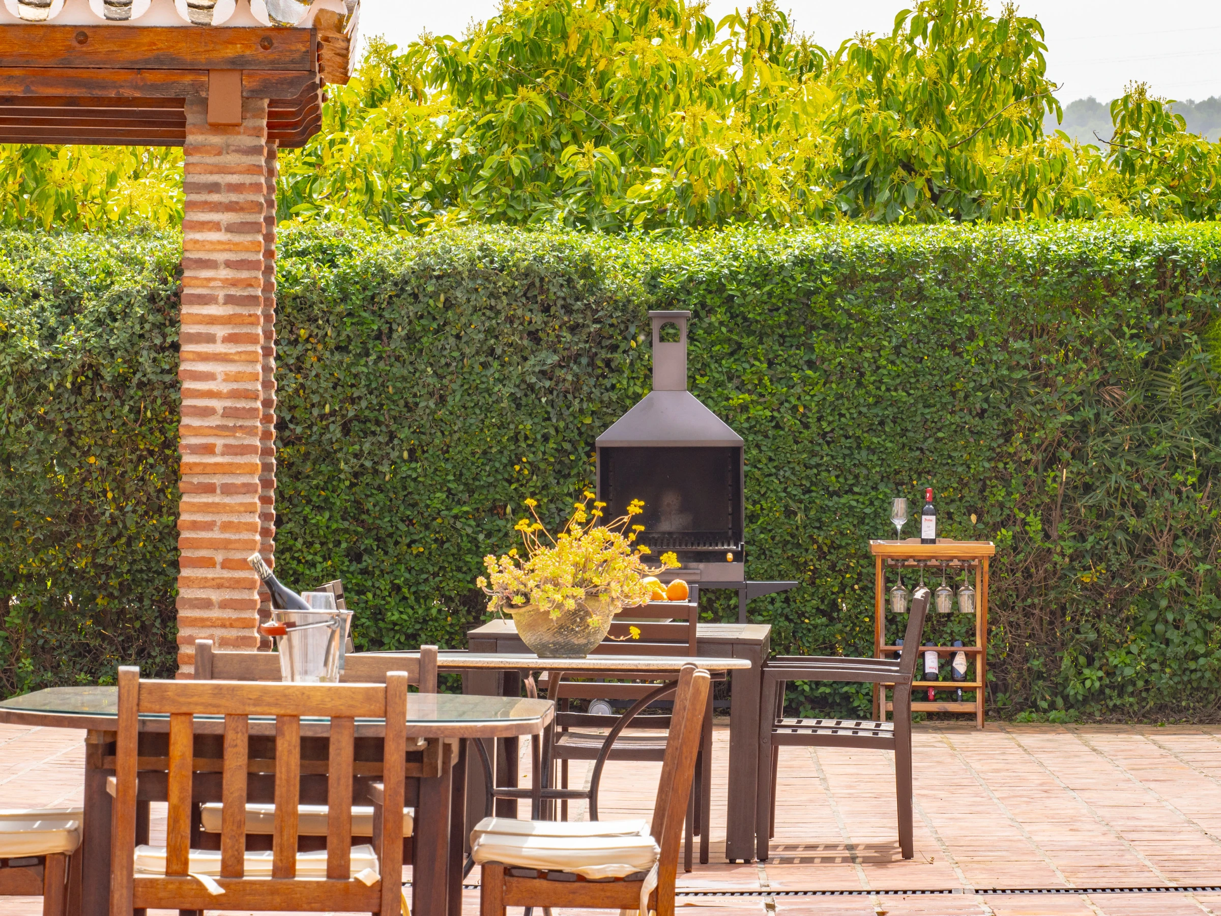 Im Freien genießen Sie einen privaten Garten mit Pool, Kinderbereich mit Schaukel für die Kleinsten, Gartenmöbeln und einem perfekten Grill für Familientreffen. Das eingezäunte Grundstück garantiert Privatsphäre und Sicherheit, während die schönen Blicke auf die Berge und die ländliche Umgebung Sie vom städtischen Stress abschalten lassen.