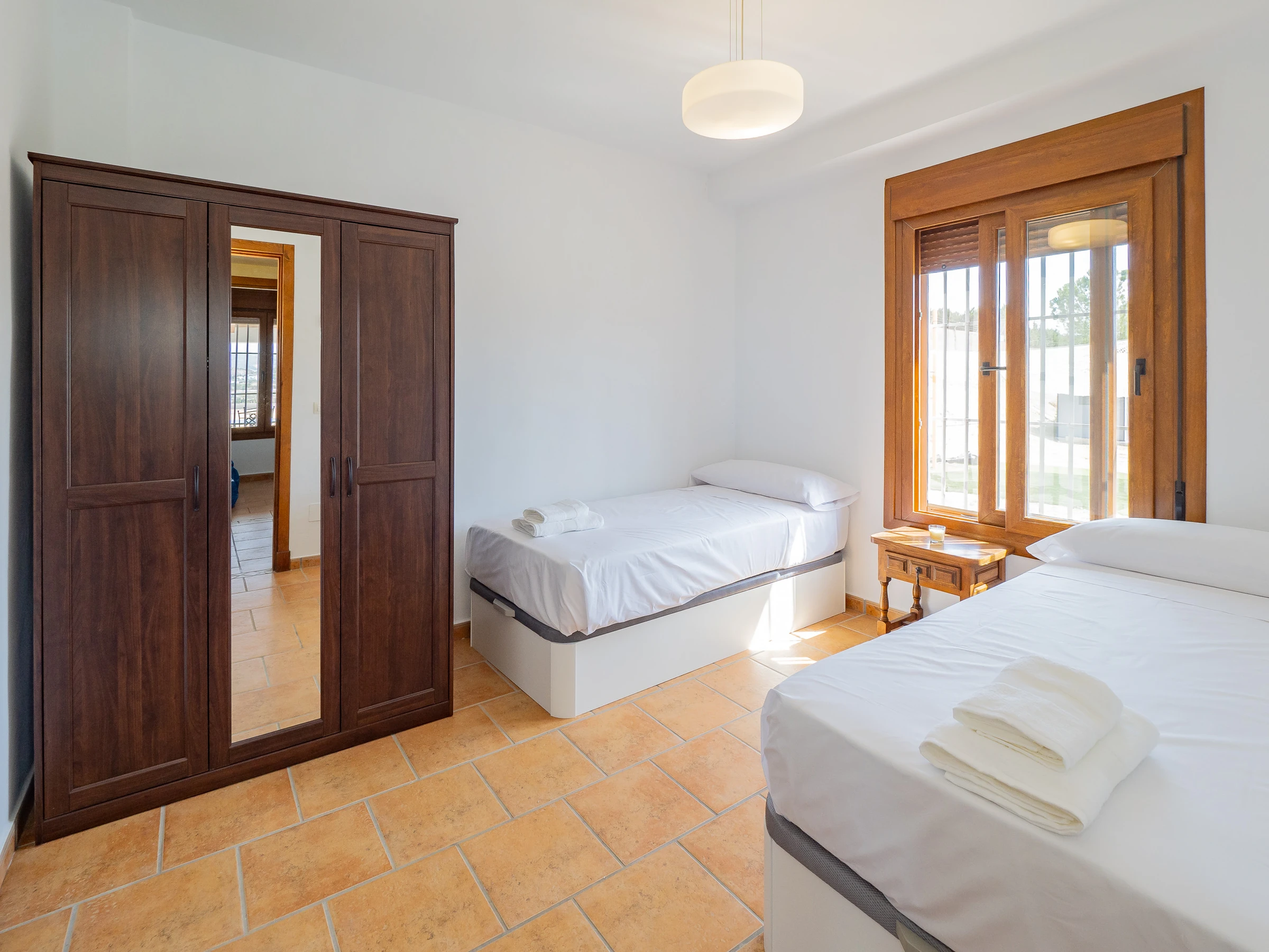 In diesem Stock finden Sie zwei Schlafzimmer: eines mit einem Doppelbett und ein anderes mit zwei Einzelbetten, beide mit Fenstern nach draußen und Platz zum Verstauen Ihres Gepäcks. Es gibt auch ein Badezimmer mit Dusche für Ihren Komfort.