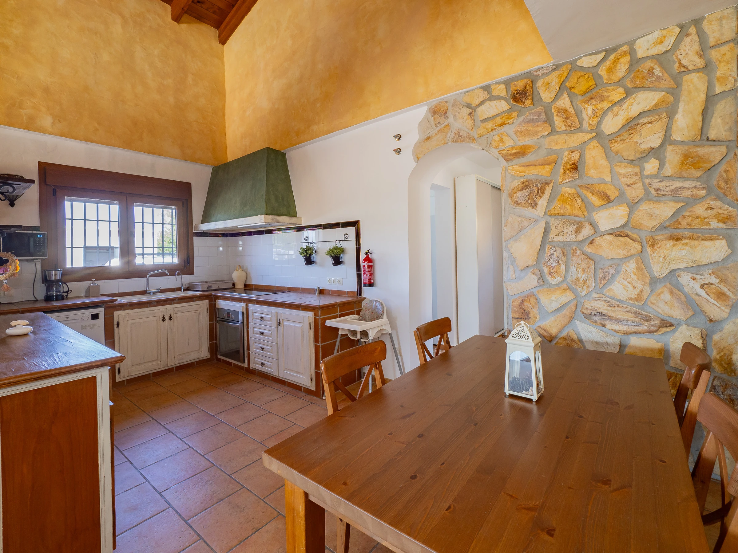 Verteilt auf zwei Etagen bietet das Erdgeschoss einen geräumigen Wohn-Essbereich mit großen Fenstern, die viel natürliches Licht und Ausblicke auf den Garten und die Umgebung bieten. Die amerikanische Küche im ländlichen Stil ist ausgestattet und verfügt über einen separaten Bereich für Wäsche und Lagerung, was die Organisation während Ihres Aufenthalts erleichtert. Darüber hinaus bietet ein Wohnzimmer einen privaten Raum zum Ausruhen oder zur ruhigen Telearbeit.