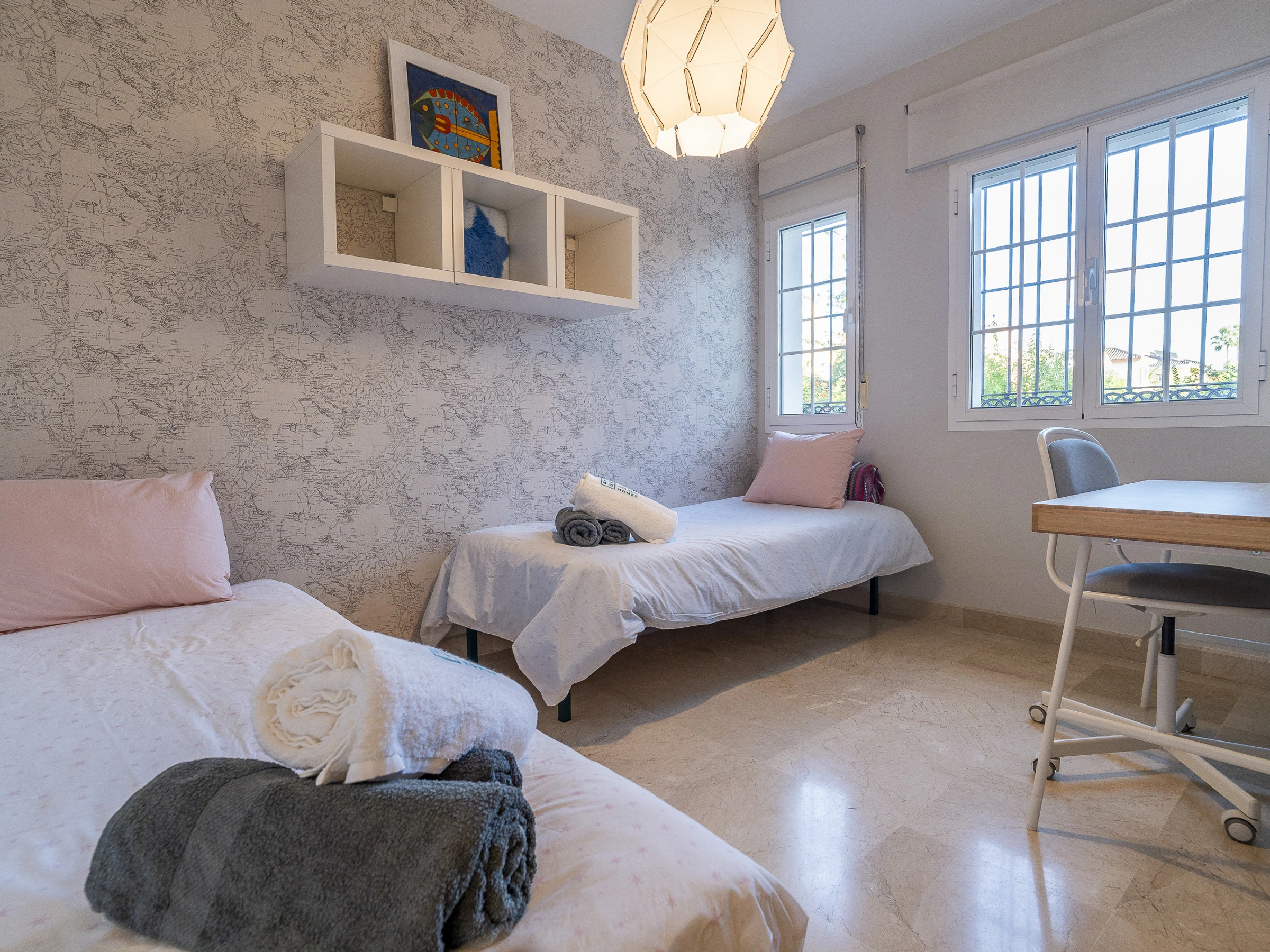 Genießen Sie einen komfortablen und ruhigen Aufenthalt in dieser 200 m² großen Wohnanlage, ideal für Familien und Gruppen. Nur 3 km vom Zentrum von Coín entfernt, haben Sie Supermärkte, Restaurants und Freizeitmöglichkeiten ganz in der Nähe, und in weniger als 30 Minuten erreichen Sie Fuengirola, Marbella oder Golfplätze wie Alhaurín Golf (8 km) und Lauro Golf (15 km).