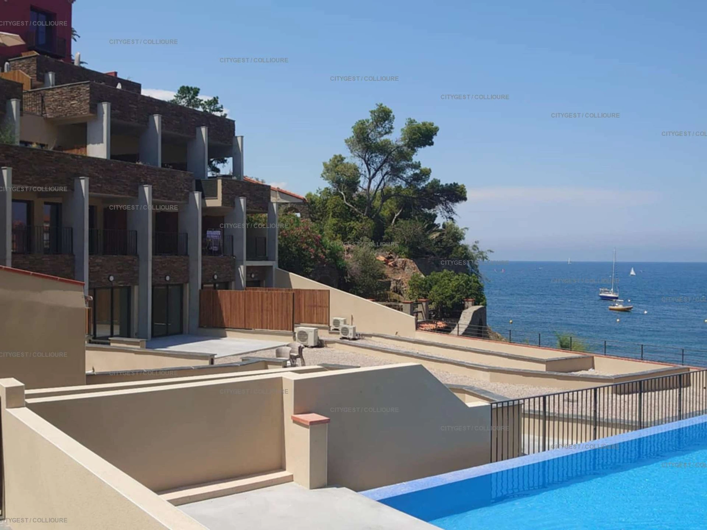 4ARAP04 – In einer neuen Residenz, in einem ehemaligen Hotel, das 2025 komplett renoviert wurde, am Rande einer Bucht gelegen, mit Klimaanlage, Internet, Parkplatz und einem Gemeinschaftspool, an der Straße von Port-Vendres nach Collioure.