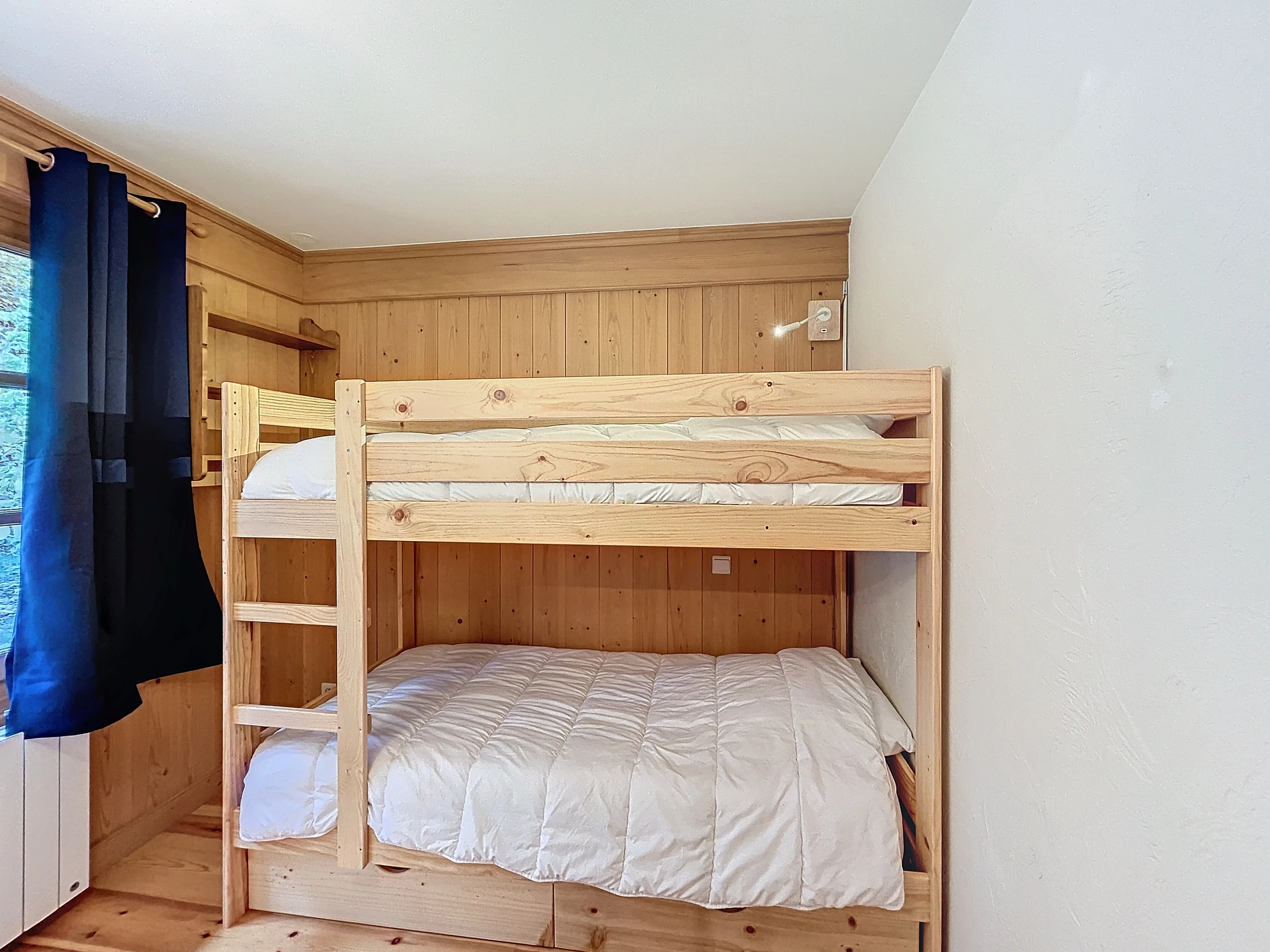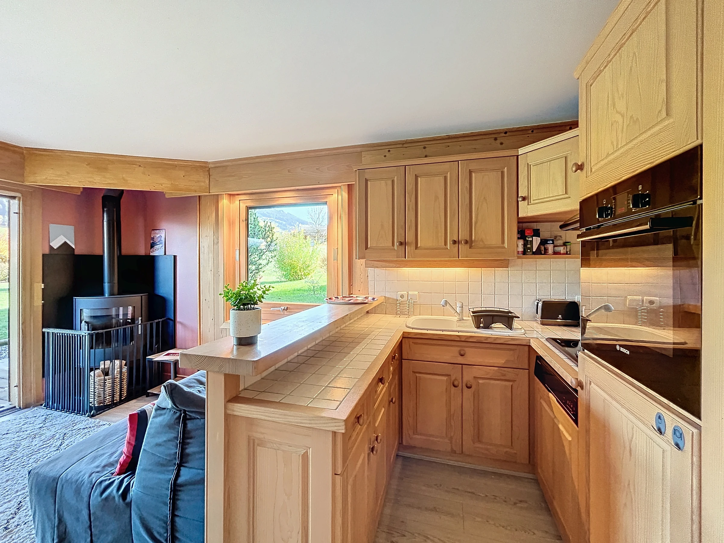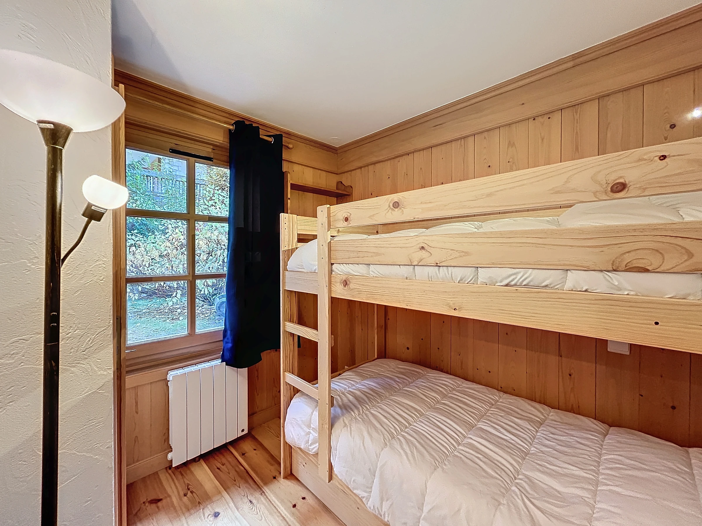 Auf der Gartenebene einer kleinen Residenz, 2-Zimmer-Wohnung + Hütte mit einer Fläche von ca. 45 m, besteht es aus: einem Eingang, einer separaten Toilette, einem Badezimmer mit Waschmaschine, einem Kinderzimmer mit zwei Etagenbetten (2x90) Schrank, ein Schlafzimmer mit einem Doppelbett (160) mit Schrank und TV, ein Wohnzimmer-Essbereich, eine offene ausgestattete Küche (Backofen, Geschirrspüler, Kaffeemaschine, Toaster, Kühlschrank, Wasserkocher), alle mit Zugang zu einer schönen Eckterrasse mit Garten mit Blick auf den Mont Blanc. Ein Skiraum, ein Parkplatz im Keller.