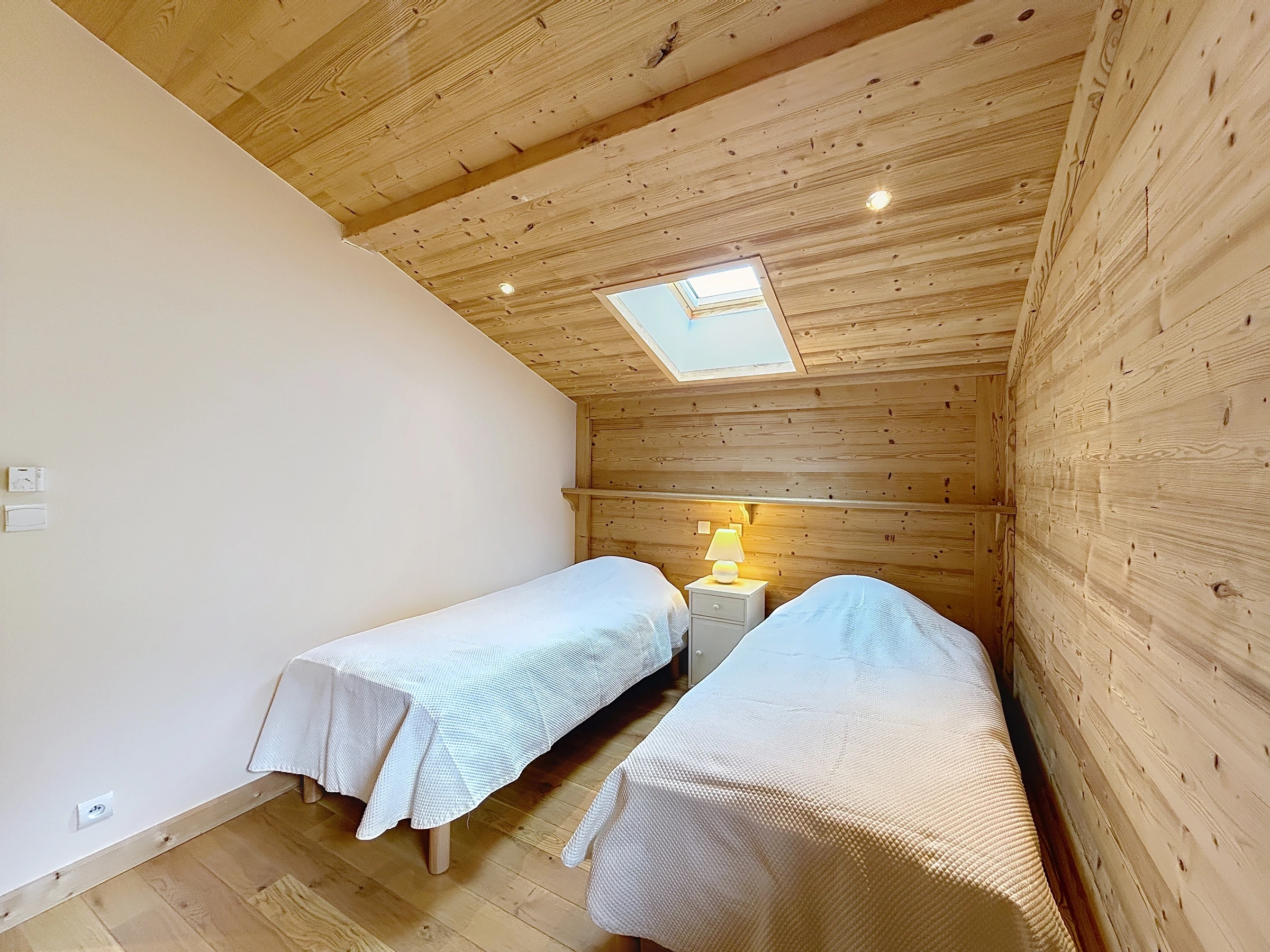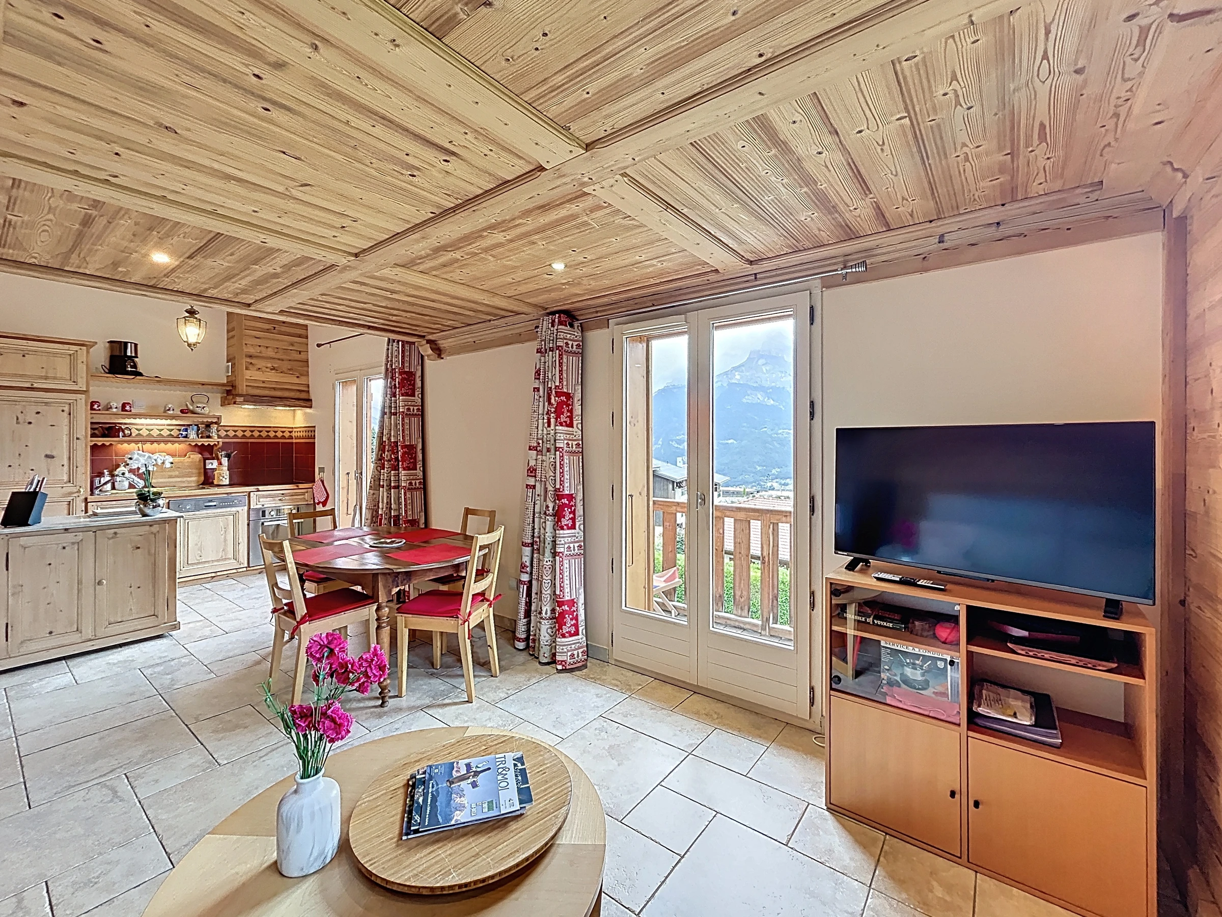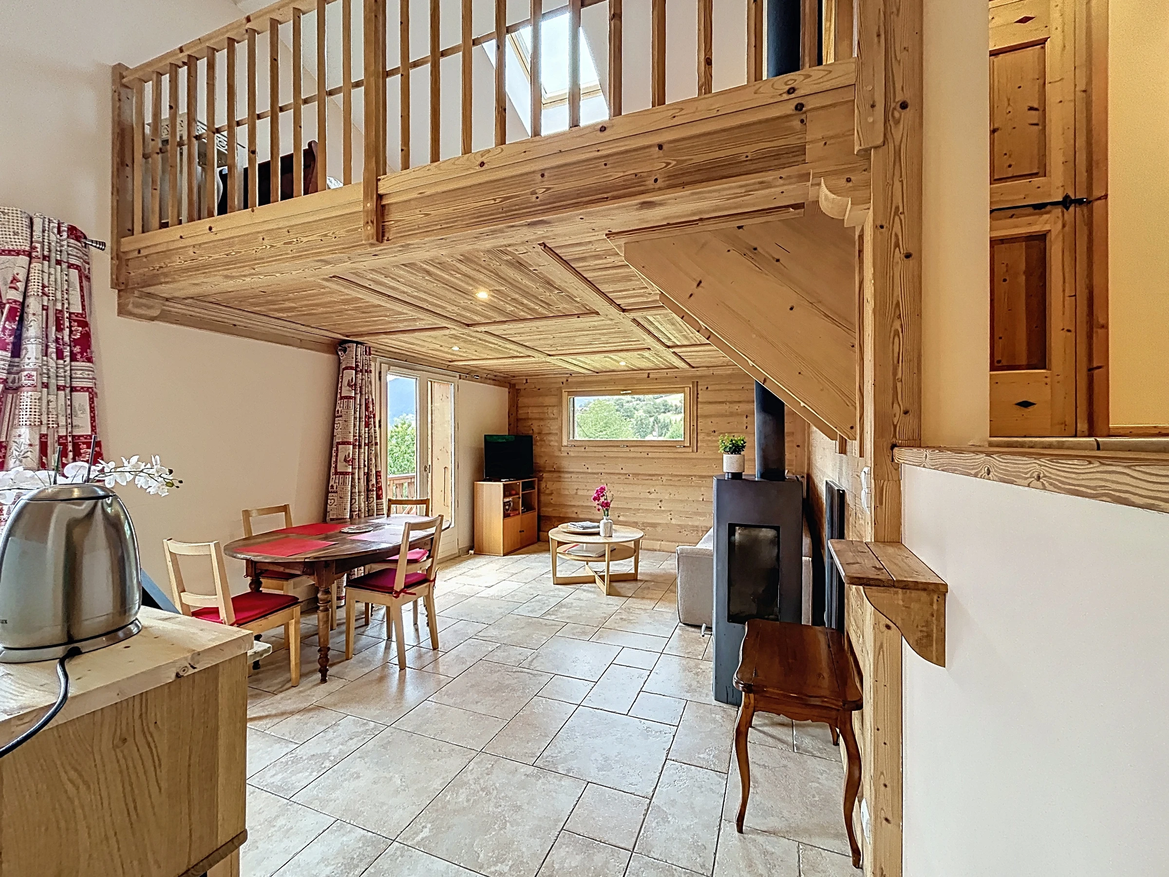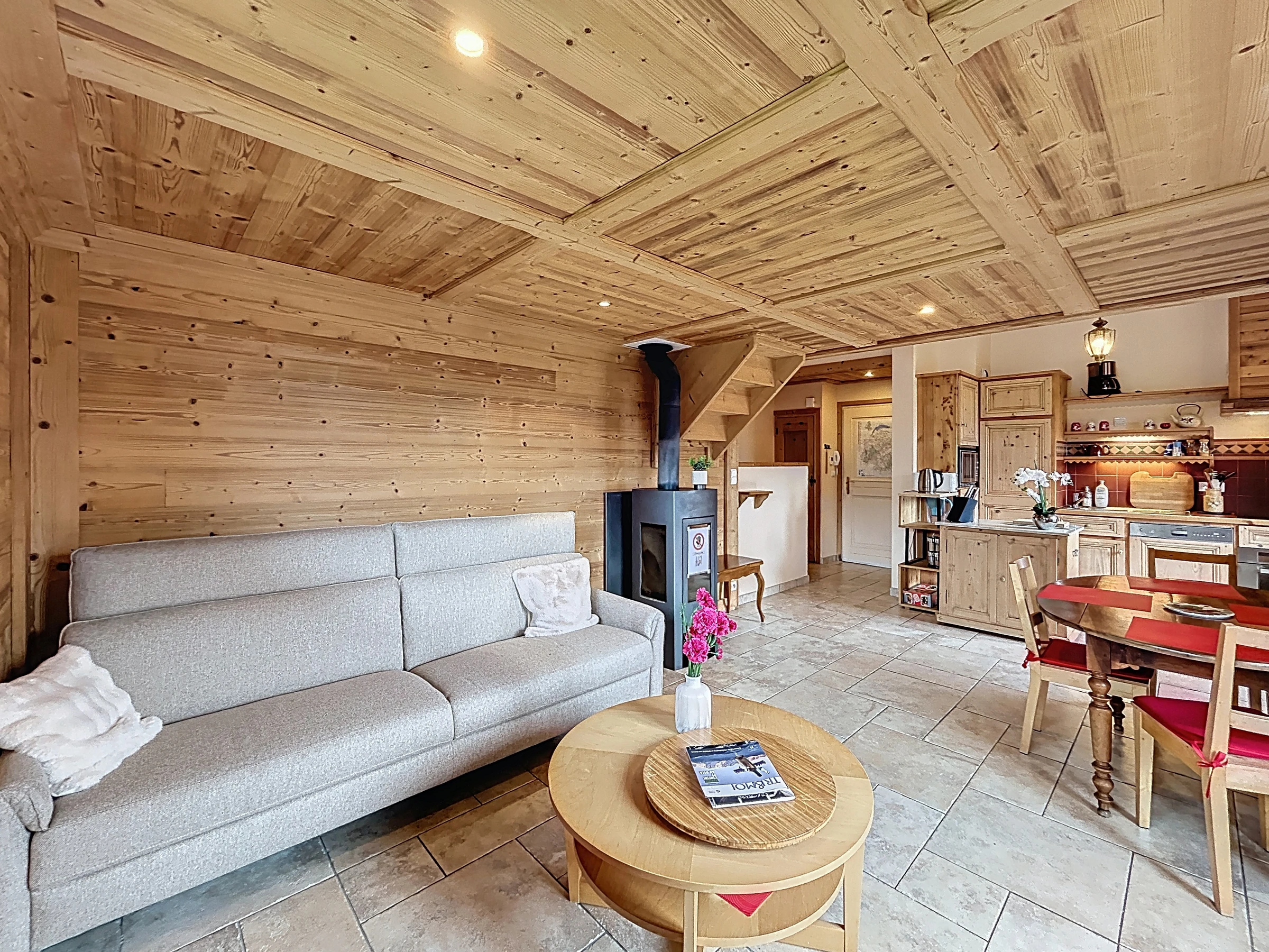 In unmittelbarer Nähe des Biotopsees und des Dorfes Combloux gelegen, bietet diese ca. 70 m² große Split-Level-Wohnung im ersten Stock ein außergewöhnliches Wohnumfeld mit herrlichem, unverbaubarem Blick auf den Mont Blanc und die Fiz-Bergkette – alles mit dreifacher Ausrichtung. Sie besteht aus einer Eingangshalle, einem schönen, hellen Wohnzimmer mit voll ausgestatteter offener Küche (Kühlschrank, Backofen, Geschirrspüler) und Zugang zu einem Nordostbalkon. Die Wohnung verfügt über ein Badezimmer mit Waschmaschine, ein separates WC, ein Zwischengeschoss mit einem Ausziehbett (80 x 190), ein Doppelzimmer mit einem 160 x 200 cm großen Bett und ein Schlafzimmer mit zwei 90 x 200 cm großen Einzelbetten. Zur weiteren Ausstattung gehören ein Skiraum und ein Tiefgaragenstellplatz. Kostenlose Außenparkplätze stehen an der Residenz zur Verfügung.