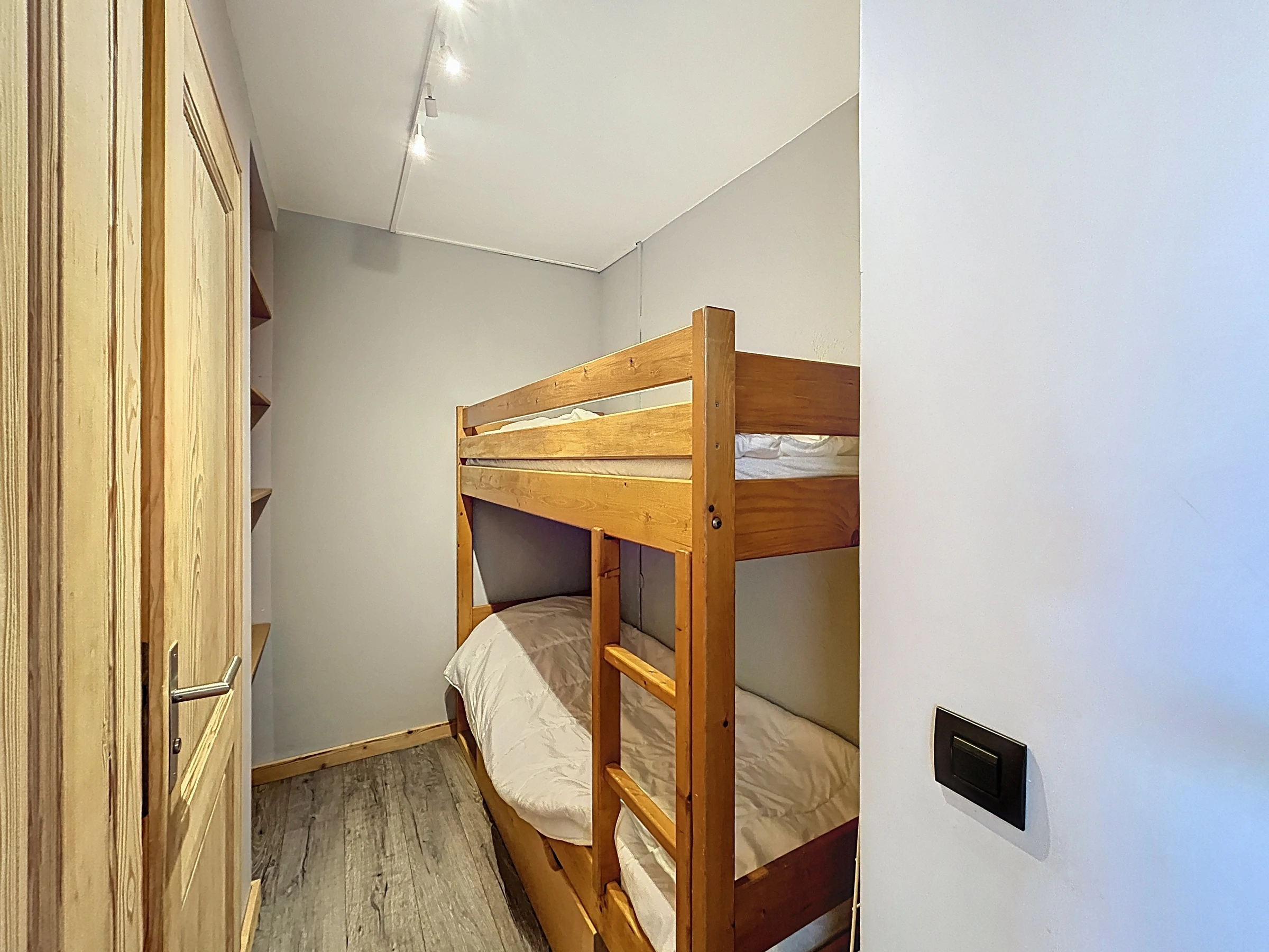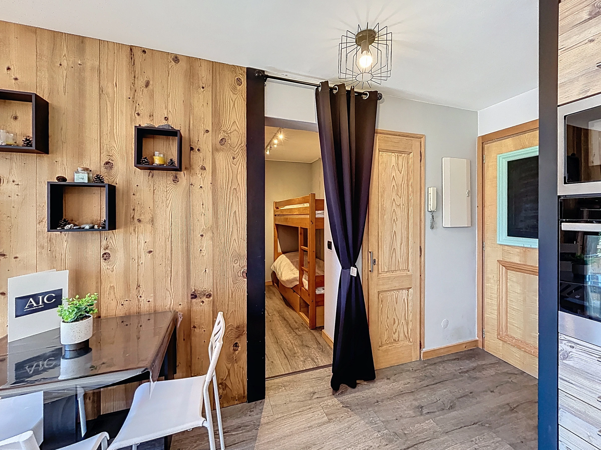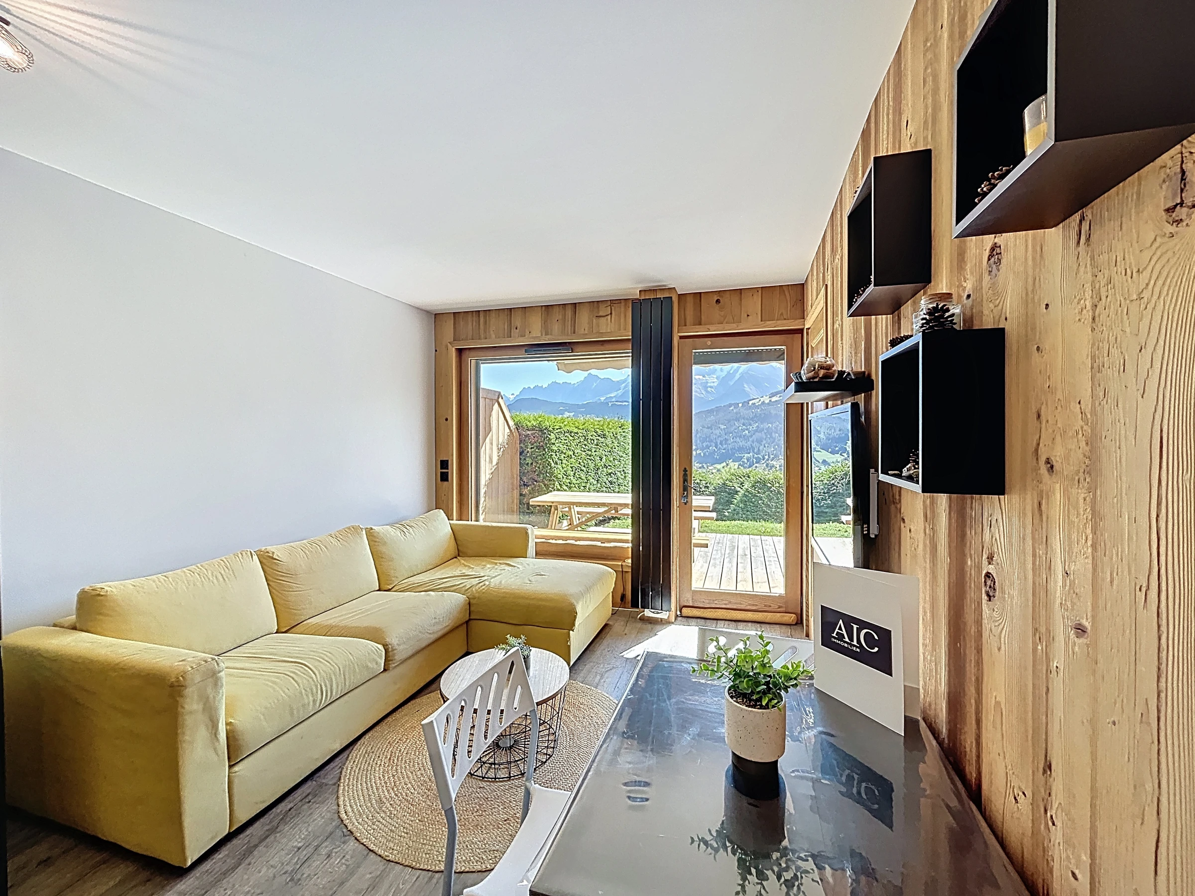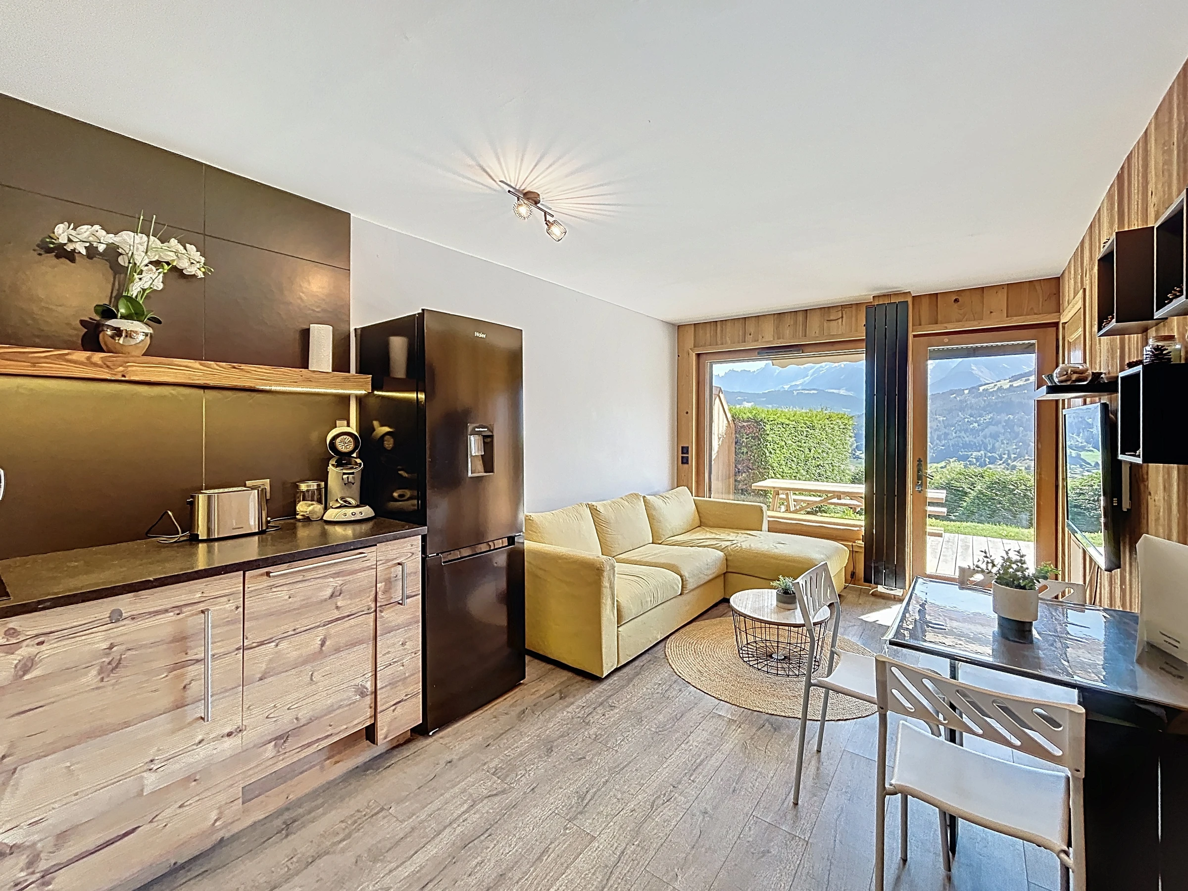 Diese ca. 35 m² große Erdgeschosswohnung befindet sich in einer luxuriösen Residenz in der Nähe des Skigebiets Portes du Mont Blanc. Sie besteht aus einem Eingangsbereich, einem Kleiderschrank, einem Wohnzimmer mit offener, ausgestatteter Küche, einem Wohnzimmer mit Zugang zu einer schönen Südostterrasse, einem Schlafzimmer mit einem Doppelbett (140 x 190), einer Schlafnische mit zwei Etagenbetten (90 x 190), einem separaten WC und einem Duschbad. Zur weiteren Ausstattung gehören ein Skischrank und ein für die Residenz reservierter Außenparkplatz.