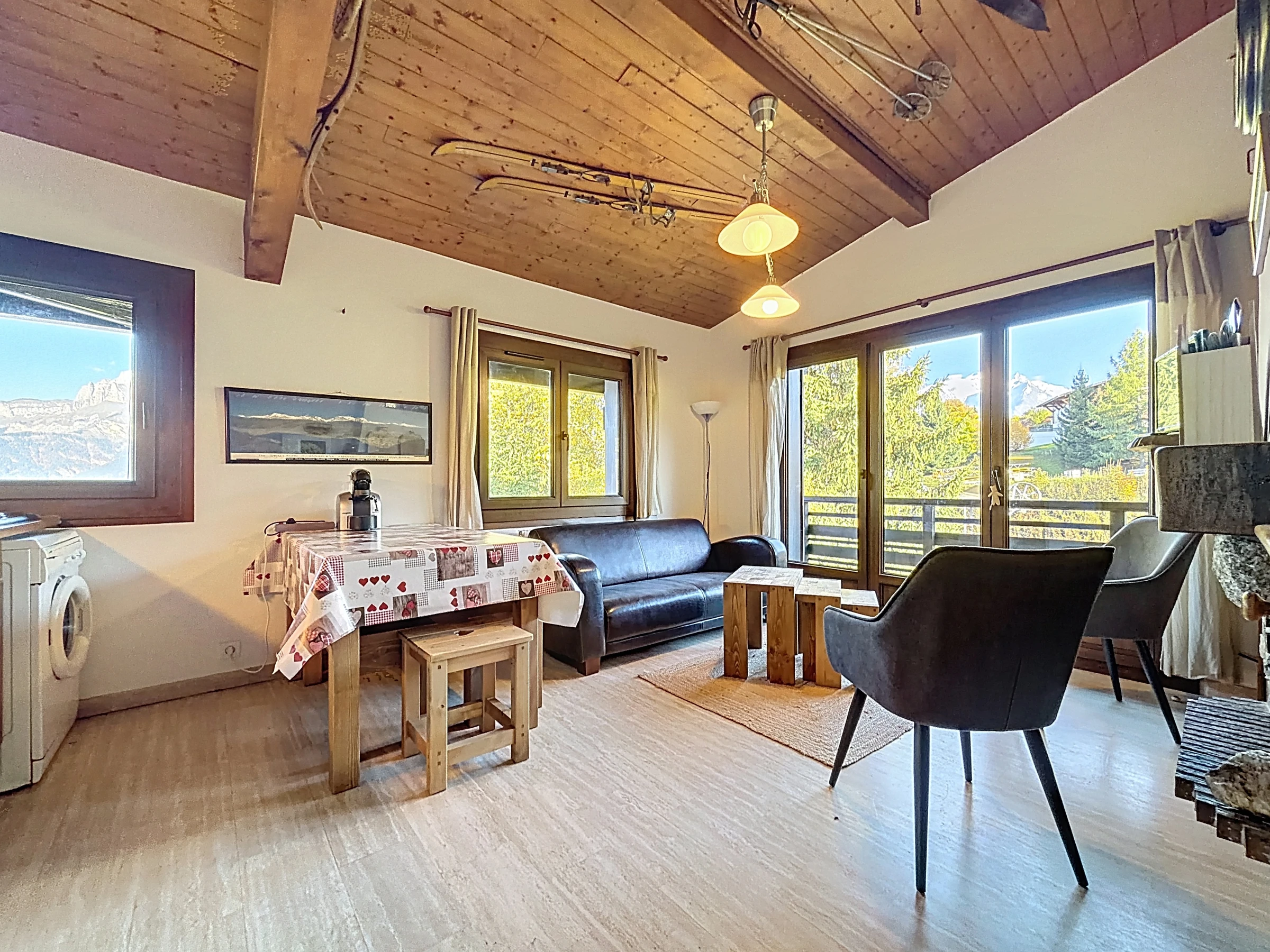 Diese charmante 2-Zimmer-Wohnung mit ca. 35 m² befindet sich in einer kleinen Residenz, 4,5 km vom Dorf Combloux entfernt, in ruhiger, ländlicher Umgebung im Sommer und am Fuße der Skipisten im Winter. Sie verfügt über einen Eingangsbereich, ein Duschbad mit WC, ein Schlafzimmer mit zwei Etagenbetten und einem Ausziehbett, ein Schlafzimmer mit einem Doppelbett, ein Wohnzimmer, eine voll ausgestattete Küchenzeile mit Backofen, Herd, Kühlschrank, Waschmaschine und Mikrowelle sowie eine schöne Eckterrasse mit herrlichem Blick auf das Mont-Blanc-Massiv. Ein Skiraum ist vorhanden. Ein Parkplatz in der Tiefgarage ist vorhanden. Haustiere sind nicht erlaubt.