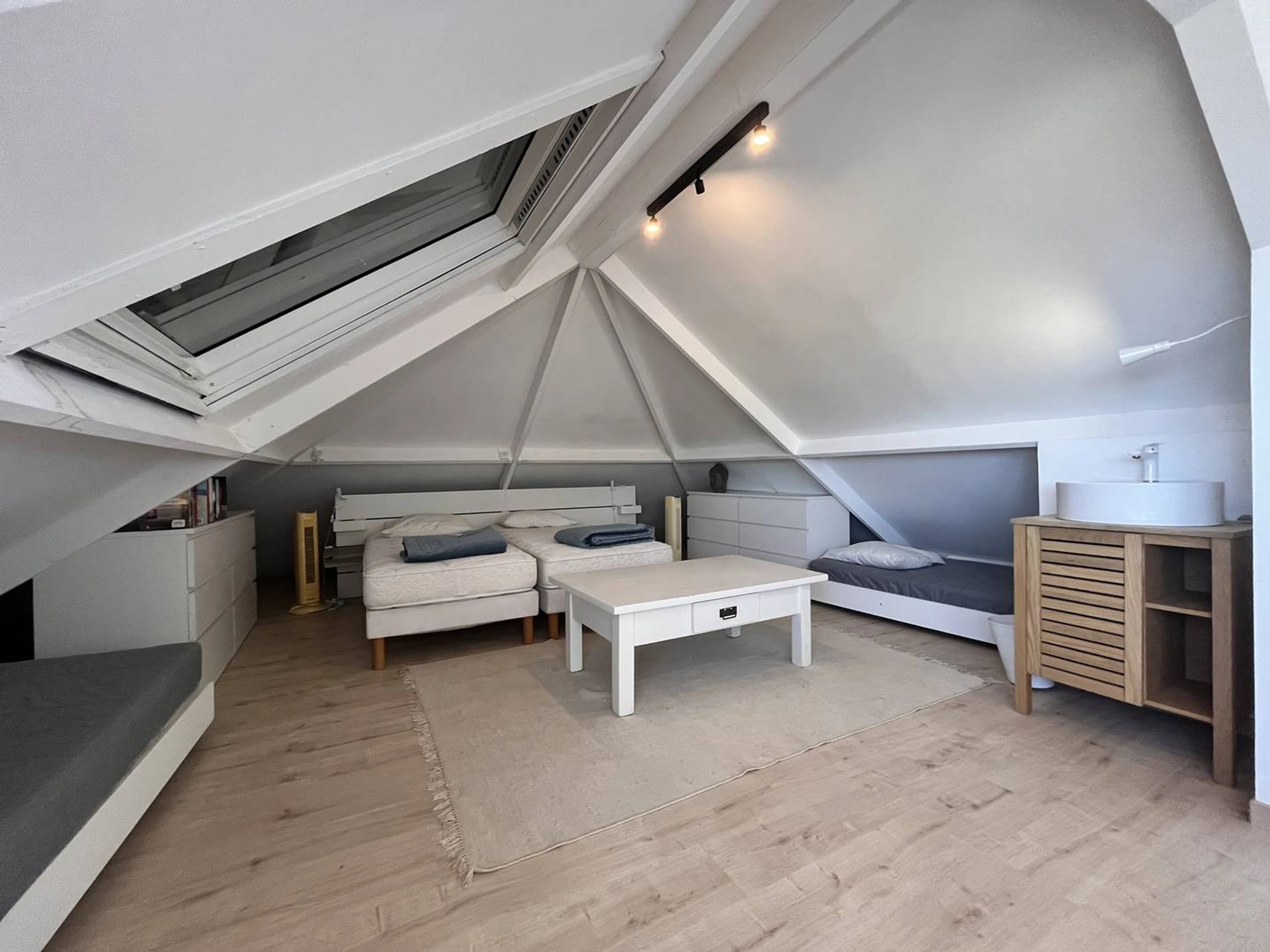 Obergeschoss: Im Zwischengeschoss unter dem Dach (Klimaanlage): Schlafzimmer mit 2 Einzelbetten (90 cm), die zusammengeschoben werden können, + 2 Einzelbetten (90 cm), Kommode und Schrank.