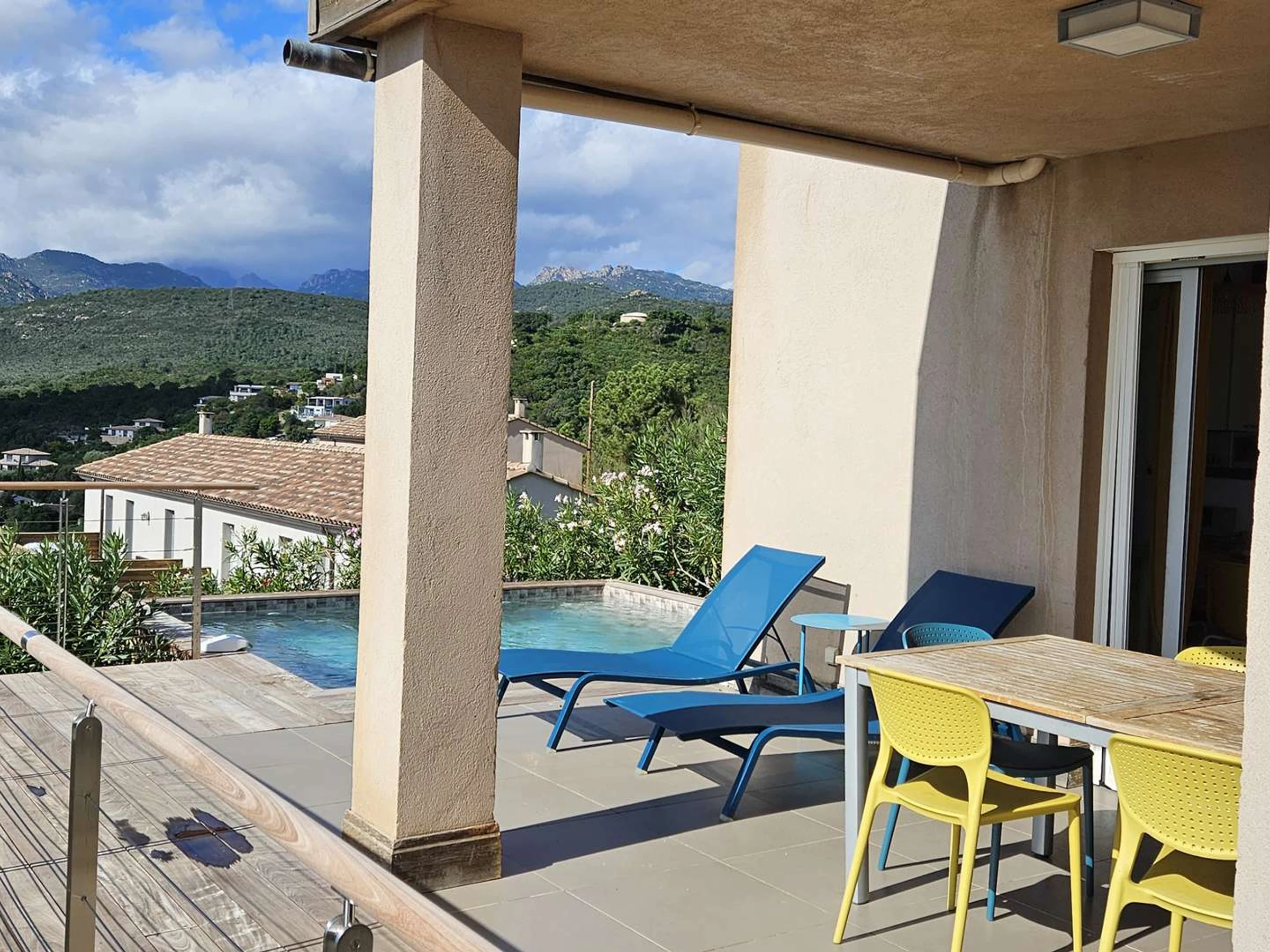 Es hat weiterhin eine überdachte Terrasse und einen Balkon mit Meerblick 180 ° und auf den Bergen von Bavella.
