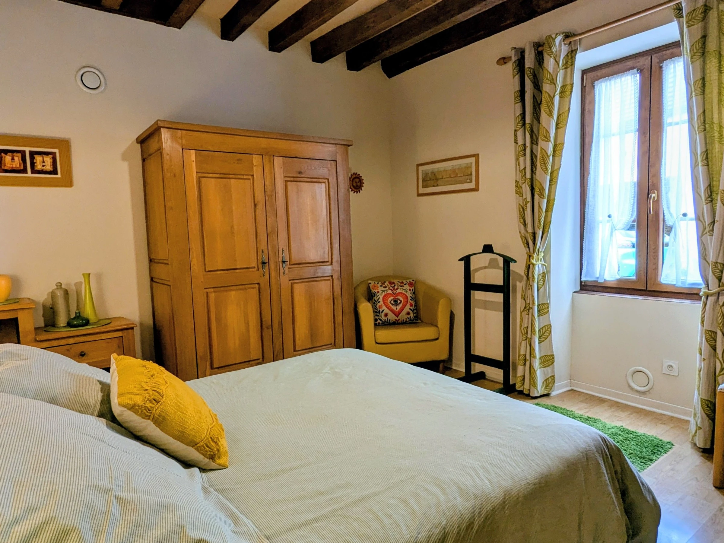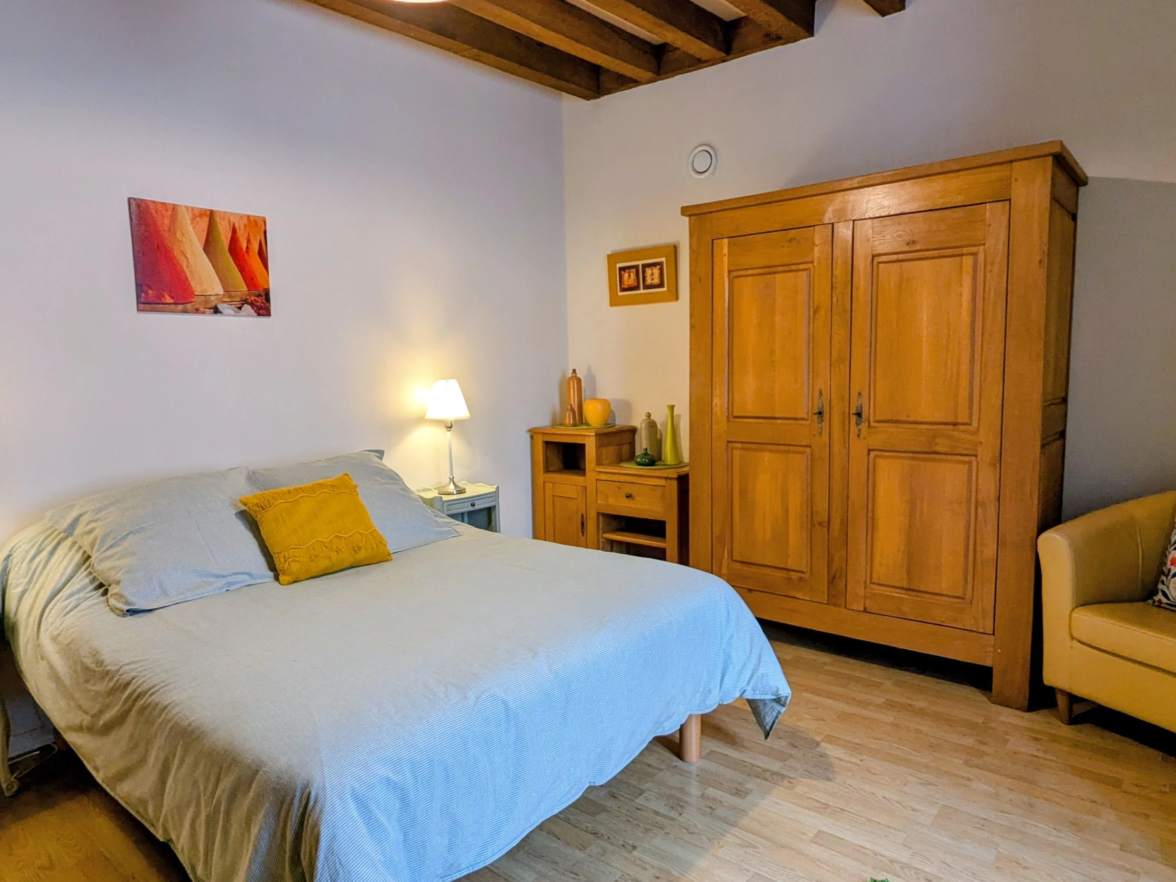 In der Nähe der größten Weinberge. Im Dorf gelegenes, freistehendes Haus in einer Gebäudegruppe auf 2 Ebenen. Wohnküche. Mezzanin. 2 Schlafzimmer, eines mit einem 140 cm breiten Bett und das zweite mit 3 90 cm breiten Betten. Duschraum. WC. Nicht umzäunter Hof von 500 m² und Garten zur gemeinsamen Nutzung mit den Eigentümern und einem zweiten Ferienhaus. Babybett, Hochstuhl und Kinderbadewanne.