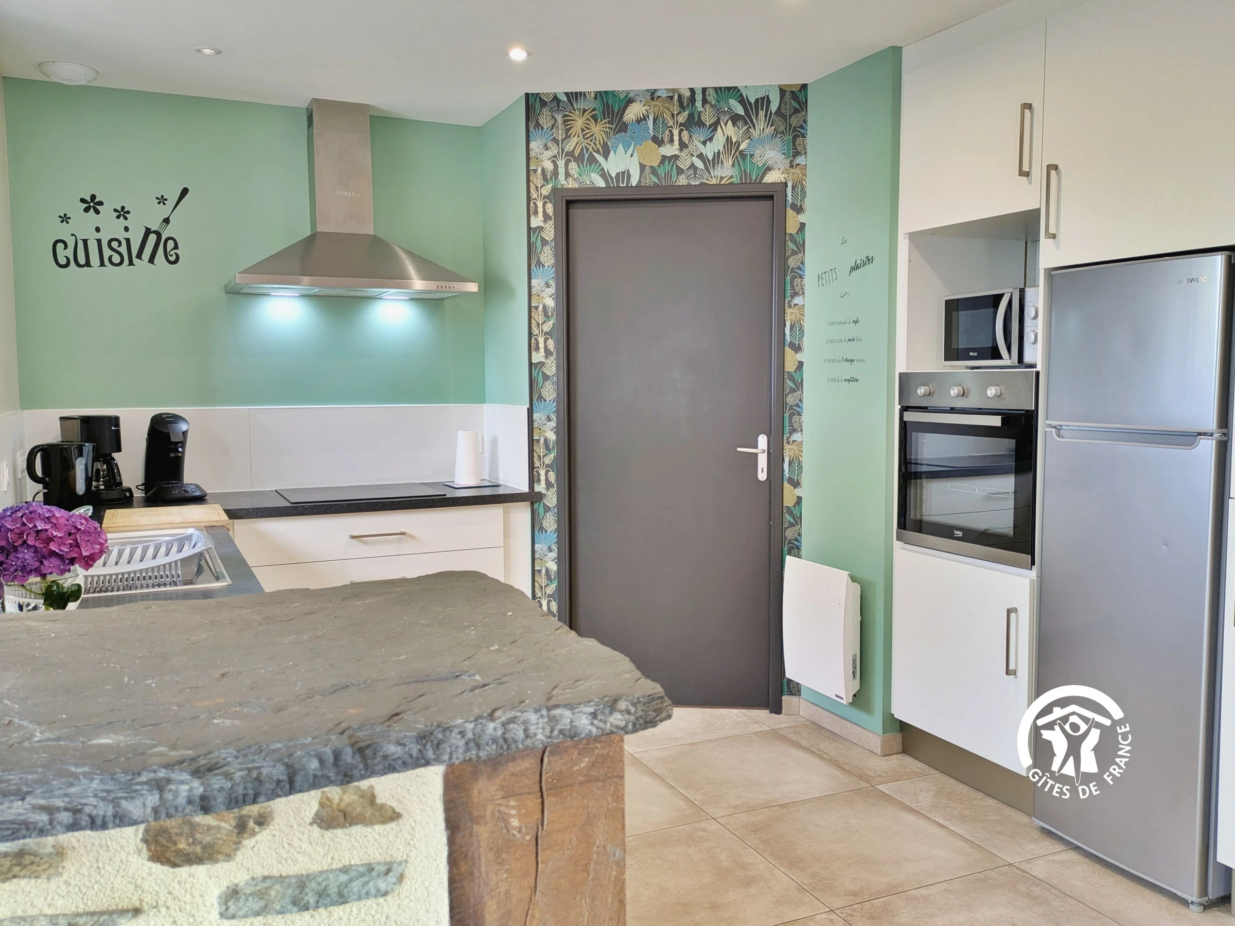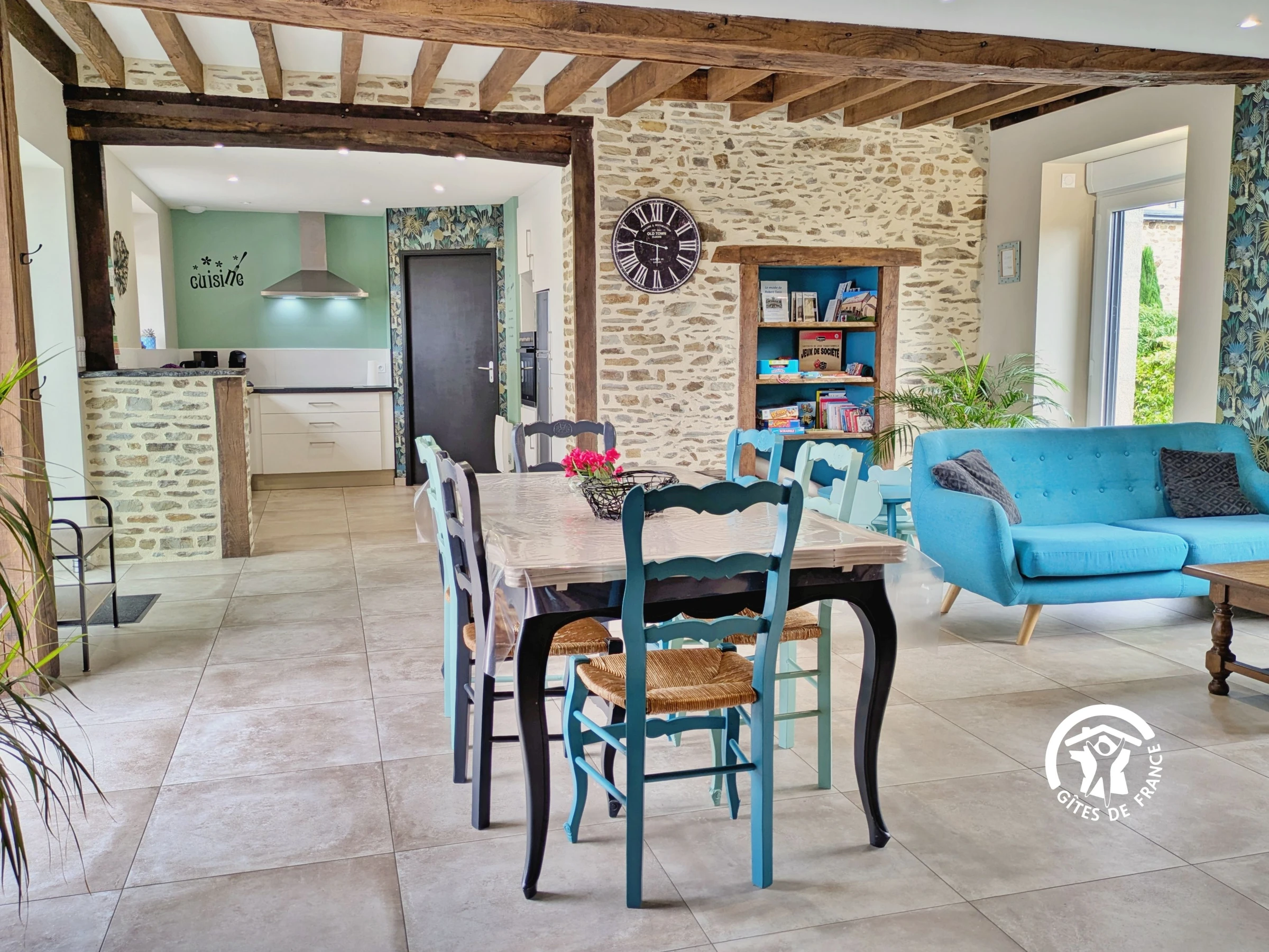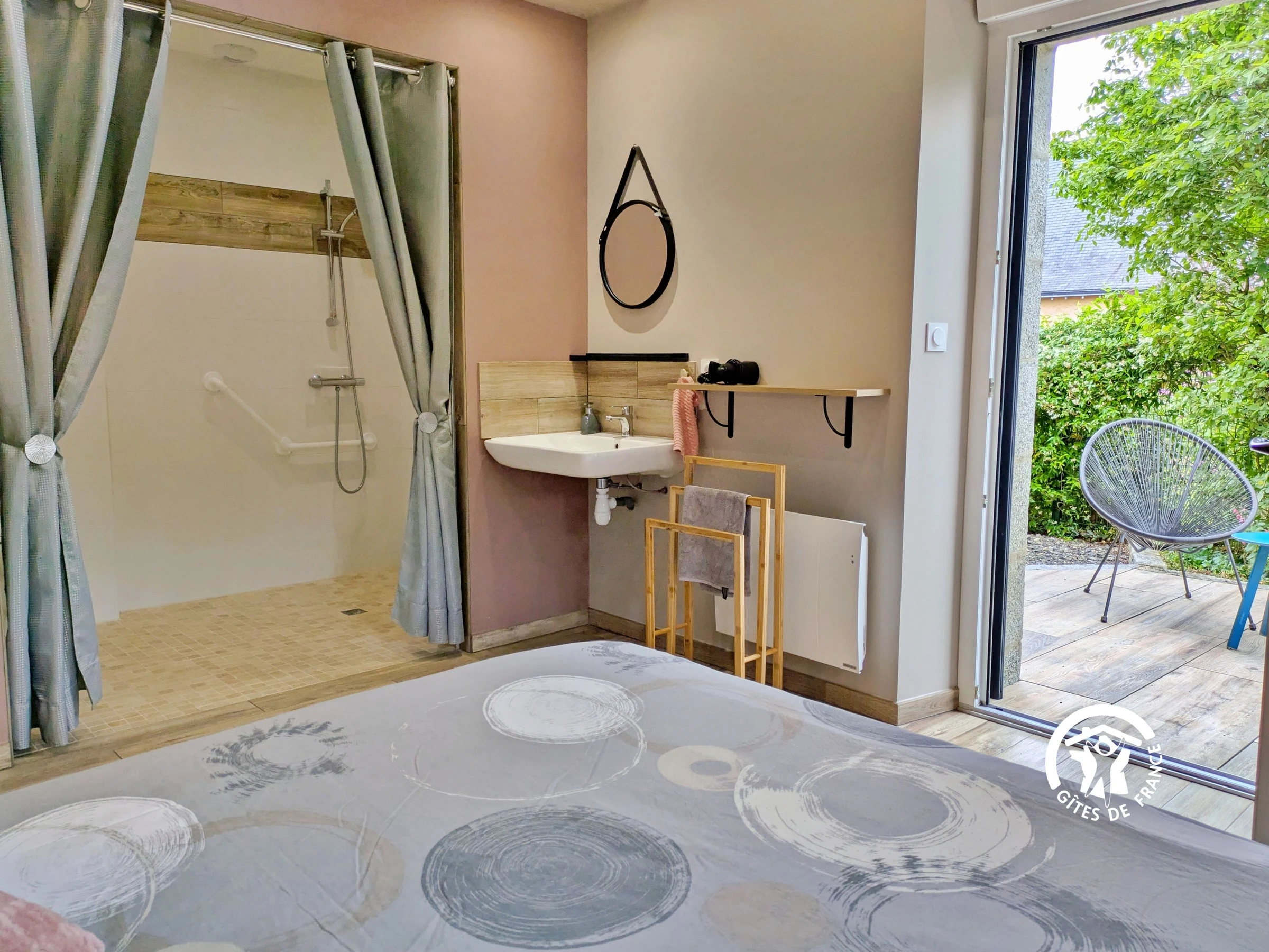 Einkaufen: Alle Geschäfte und Dienstleistungen finden Sie in Cossé-le-Vivien (3 km). Eingeschossiges Einfamilienhaus: Einbauküche (10 m²): Geschirrspüler, Spüle, 3-Flammen-Kochfeld, Dunstabzugshaube, Backofen, Kühlschrank mit Gefrierfach, Mikrowelle, Wasserkocher, Filterkaffeemaschine, Kapselkaffeemaschine, Toaster, Stabmixer, Küchenmaschine, Dampfgarer – Wohnzimmer (37 m²): Sofas, Fernseher, Esstisch, Bücher und Gesellschaftsspiele – Schlafzimmer 1 (13,4 m²): Bett (160 x 200 cm), Kleiderschrank, private Terrasse mit Tisch und 2 Stühlen – Barrierefreies Duschbad (4,22 m²): ebenerdige Dusche mit Haltegriff und Sitzgelegenheit, Waschbecken, WC, Handtuchwärmer, Föhn – Schlafzimmer 2 (10 m²): Bett (140 x 190 cm), Kleiderschrank – Schlafzimmer 3 (12 m²): 2 Einzelbetten (80 x 190 cm), Kleiderschrank, Kinderbett – Badezimmer (6 m²): 2 Waschbecken, ebenerdige Dusche, Waschmaschine, Trockner Separates WC (1,5 m²) mit Waschbecken.