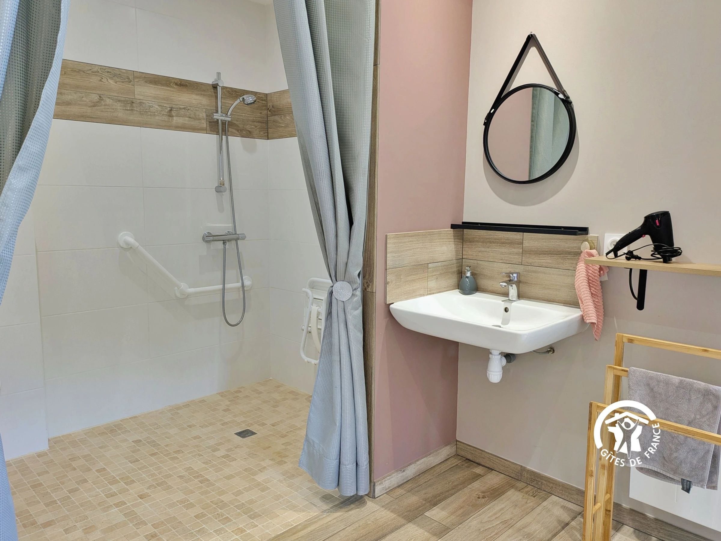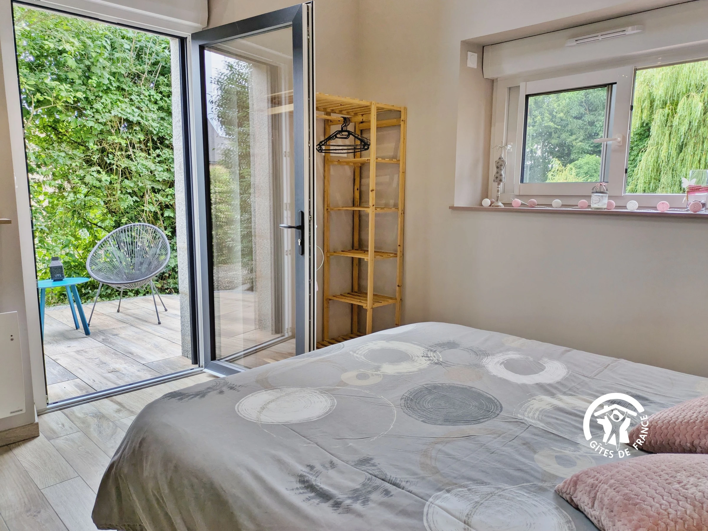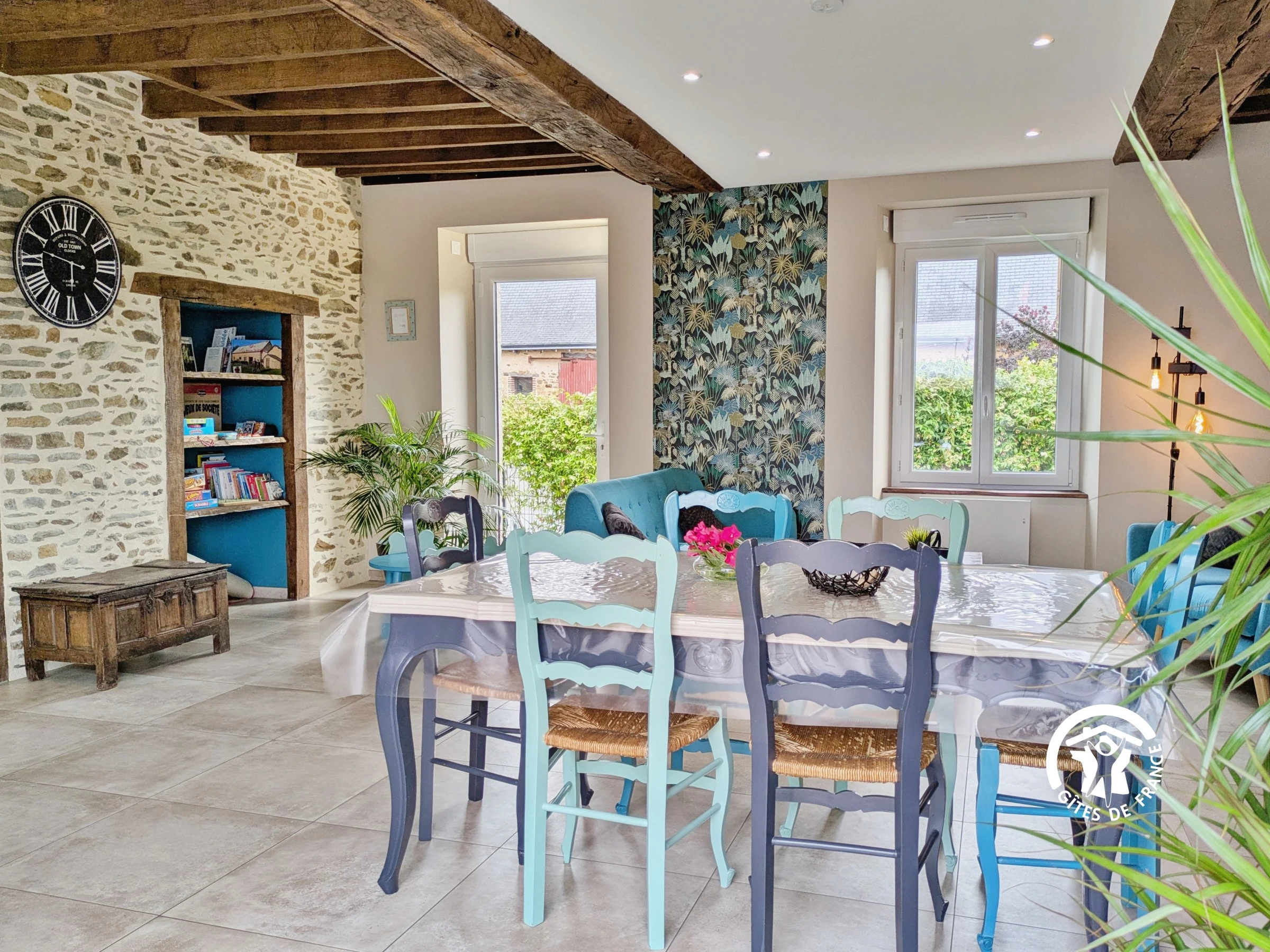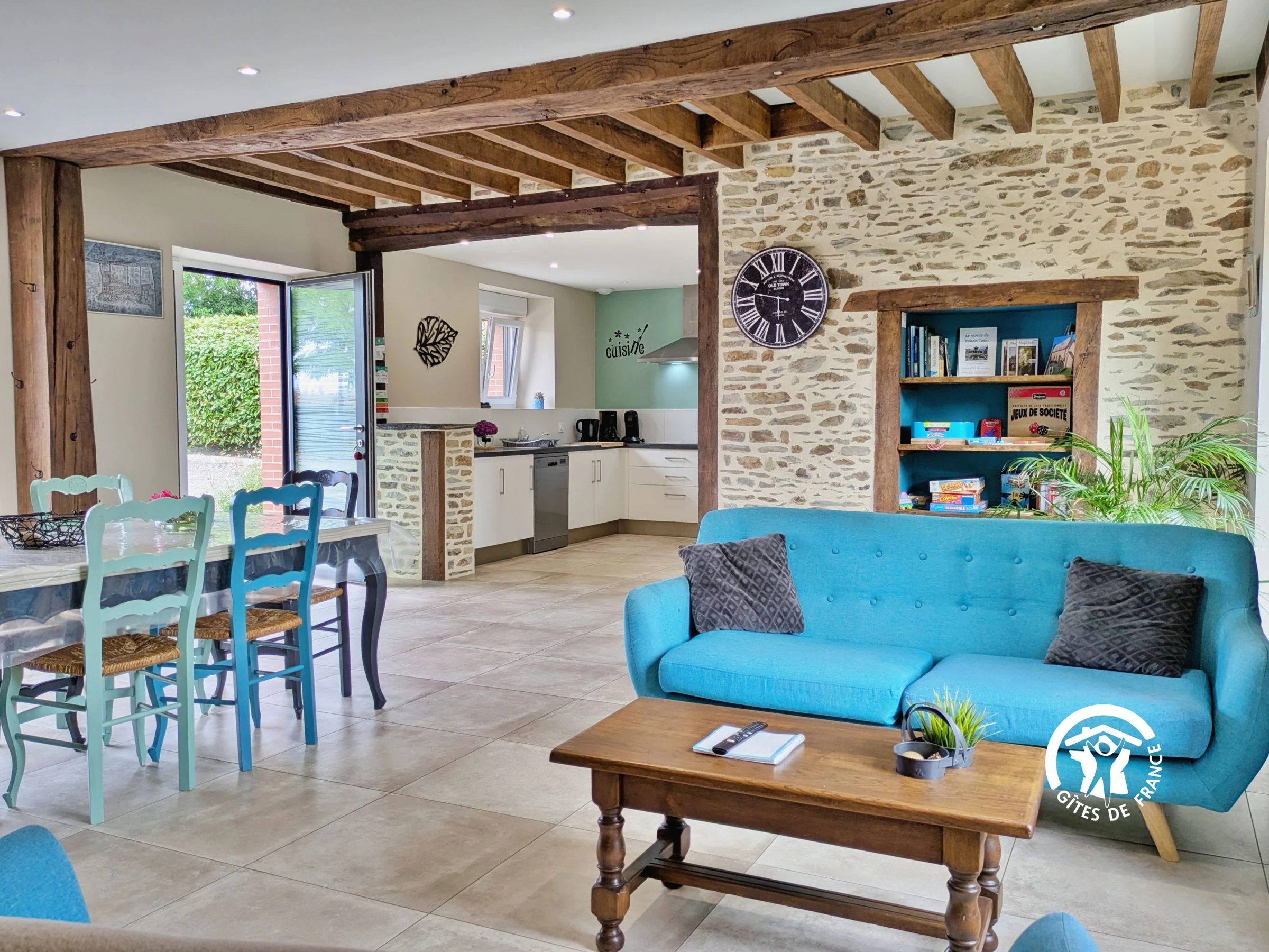 Einkaufen: Alle Geschäfte und Dienstleistungen finden Sie in Cossé-le-Vivien (3 km). Eingeschossiges Einfamilienhaus: Einbauküche (10 m²): Geschirrspüler, Spüle, 3-Flammen-Kochfeld, Dunstabzugshaube, Backofen, Kühlschrank mit Gefrierfach, Mikrowelle, Wasserkocher, Filterkaffeemaschine, Kapselkaffeemaschine, Toaster, Stabmixer, Küchenmaschine, Dampfgarer – Wohnzimmer (37 m²): Sofas, Fernseher, Esstisch, Bücher und Gesellschaftsspiele – Schlafzimmer 1 (13,4 m²): Bett (160 x 200 cm), Kleiderschrank, private Terrasse mit Tisch und 2 Stühlen – Barrierefreies Duschbad (4,22 m²): ebenerdige Dusche mit Haltegriff und Sitzgelegenheit, Waschbecken, WC, Handtuchwärmer, Föhn – Schlafzimmer 2 (10 m²): Bett (140 x 190 cm), Kleiderschrank – Schlafzimmer 3 (12 m²): 2 Einzelbetten (80 x 190 cm), Kleiderschrank, Kinderbett – Badezimmer (6 m²): 2 Waschbecken, ebenerdige Dusche, Waschmaschine, Trockner Separates WC (1,5 m²) mit Waschbecken.