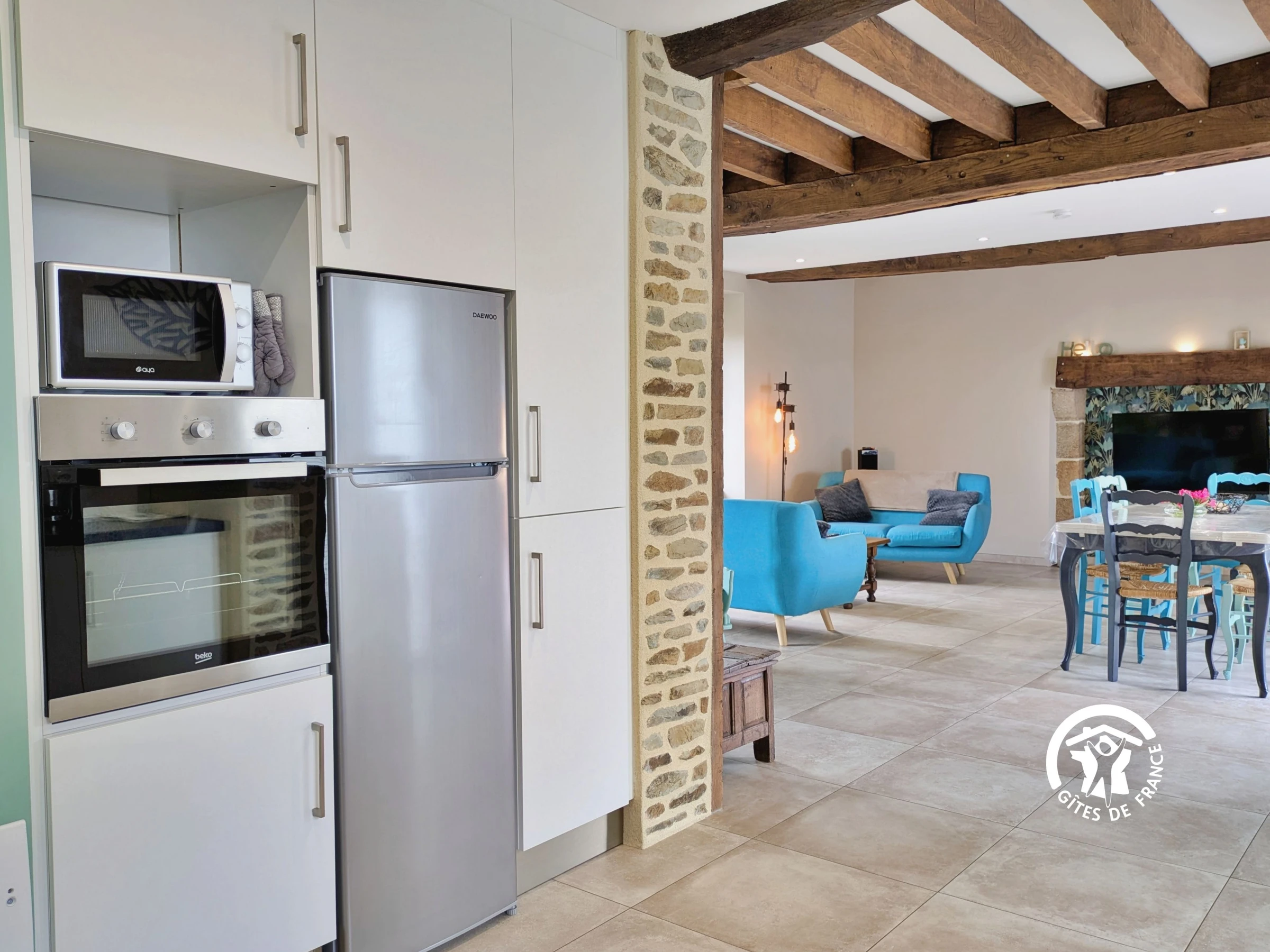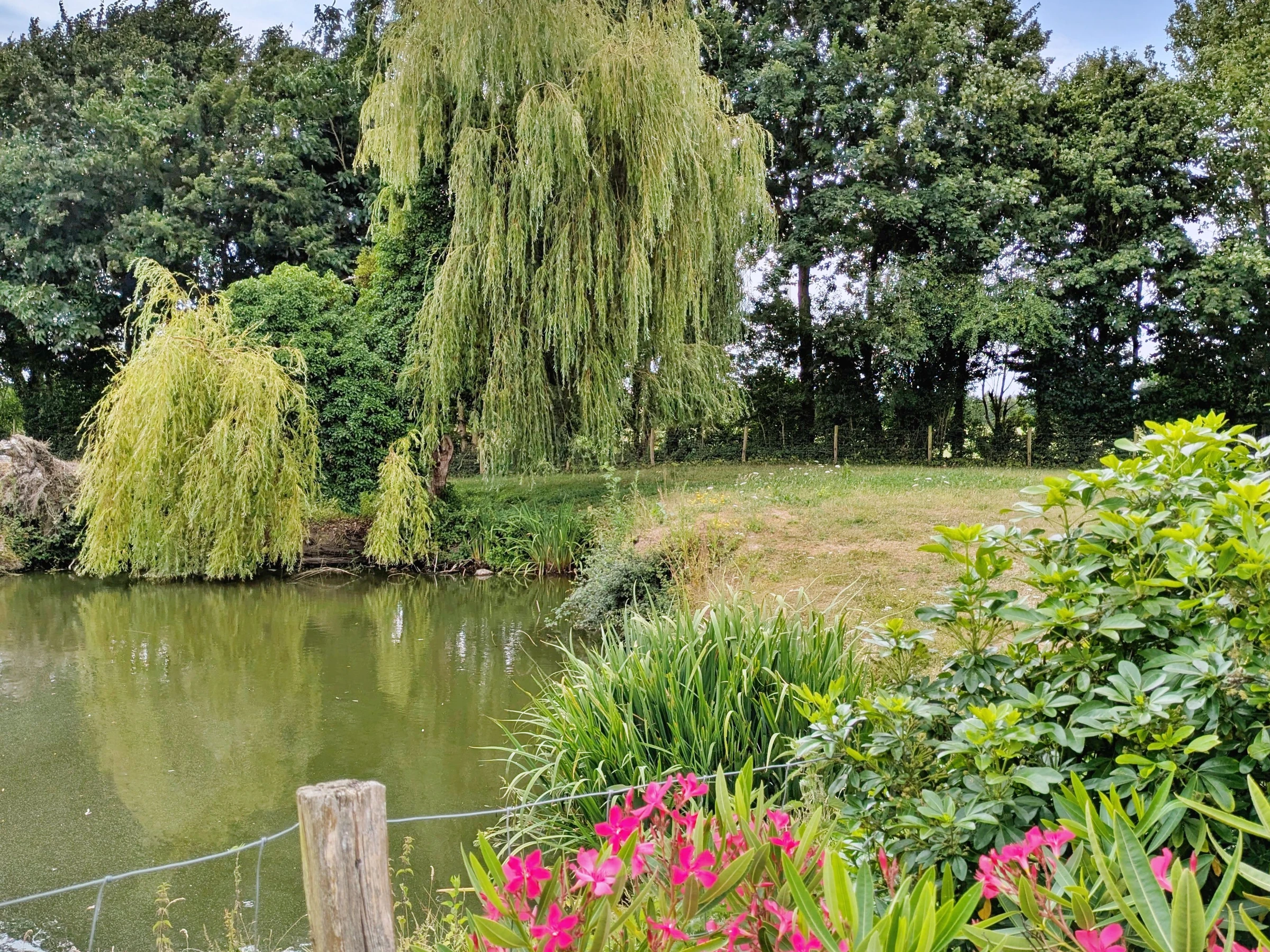Sie sehnen sich nach Natur und Komfort? Dieses charmante, freistehende Ferienhaus auf einer Ebene bietet einen unverbauten Blick auf die Felder und den angrenzenden Teich (nicht zugänglich), eine barrierefreie Suite und zwei weitere Schlafzimmer. Die offene Küche mit Zugang zu einem großen, einladenden Wohnzimmer, die Terrasse, der Bouleplatz, der überdachte Patio und die Schafe auf der benachbarten Wiese versprechen einen ruhigen und erholsamen Urlaub mit Familie oder Freunden. Das Haus der Eigentümer befindet sich in der Nähe, die Bereiche sind jedoch gut voneinander getrennt, um Ihre Privatsphäre zu gewährleisten.