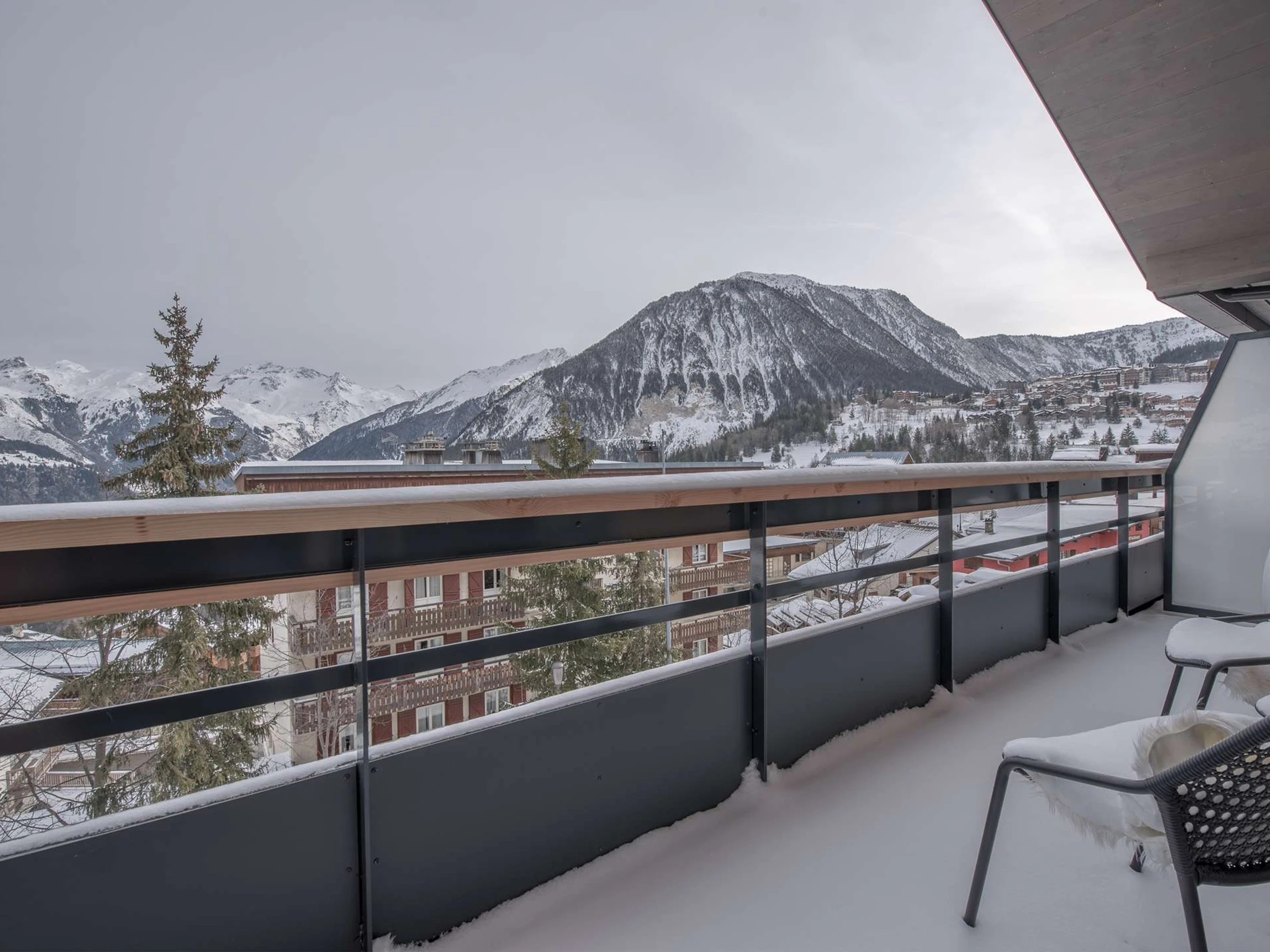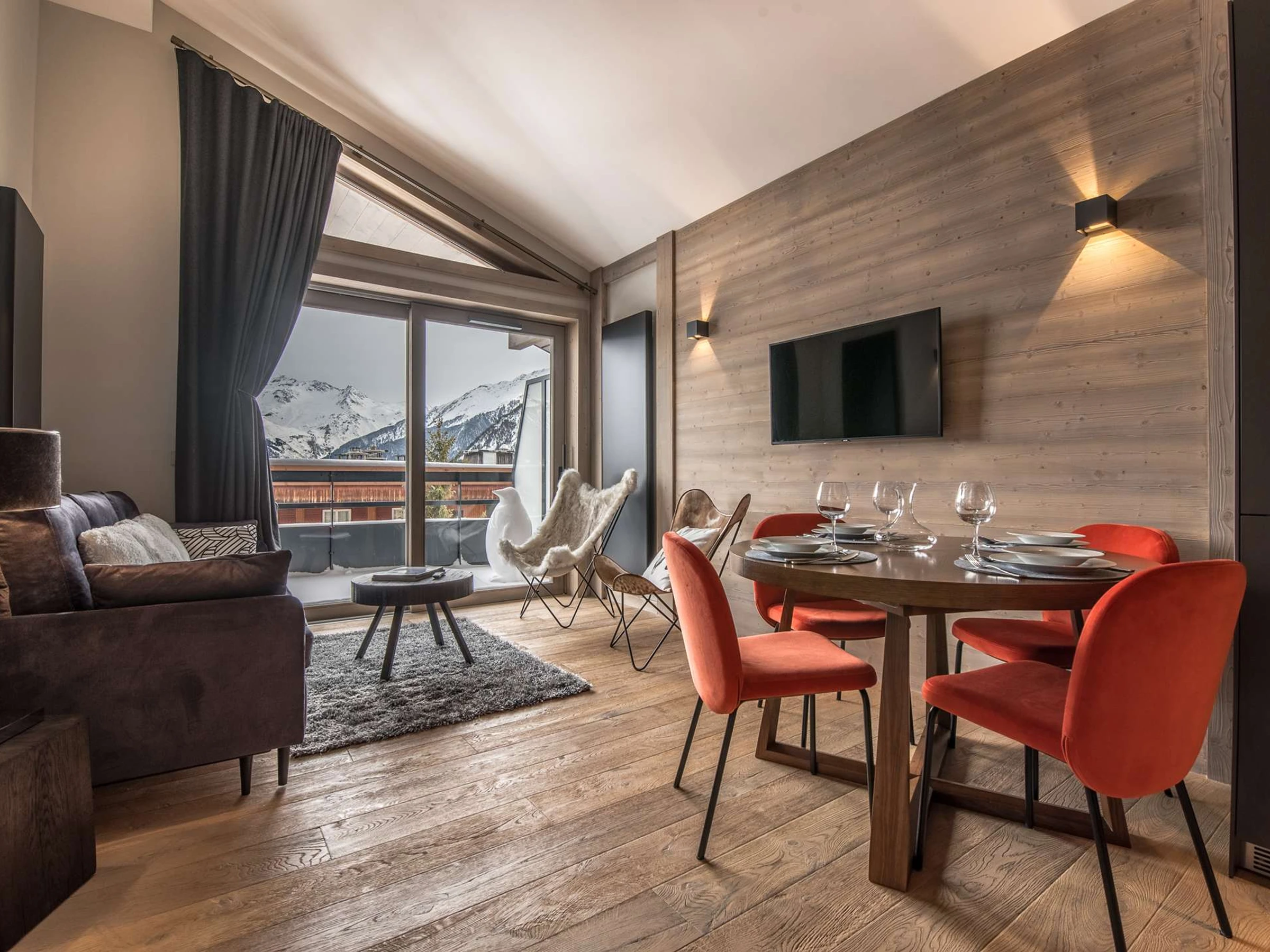 Gemütliches Dachgeschoss-Apartment mit Designer-Interieur, ideal gelegen im Zentrum des Resorts und nur wenige Schritte von den Pisten von Courchevel Village entfernt: den Skiliften „Les Grangettes“.