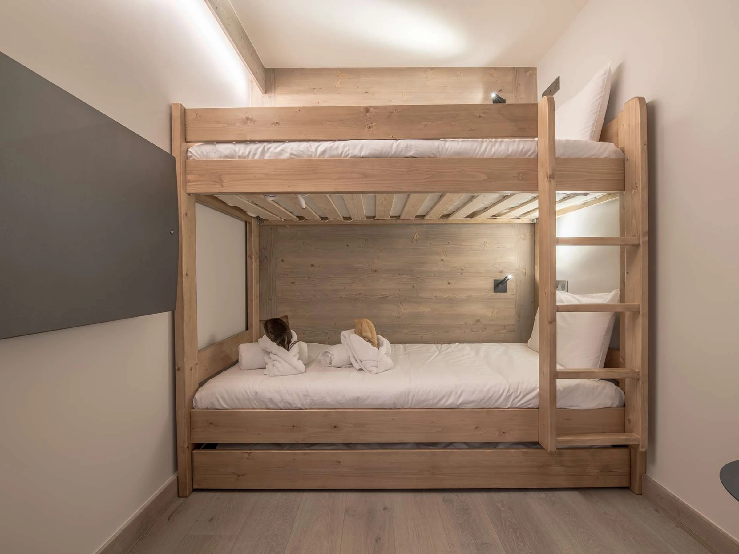 – Schlafzimmer (ohne Fenster) mit Etagenbetten (für 2 Personen, 90 x 190 cm); Kinder unter 6 Jahren dürfen nicht in den oberen Etagenbetten übernachten.