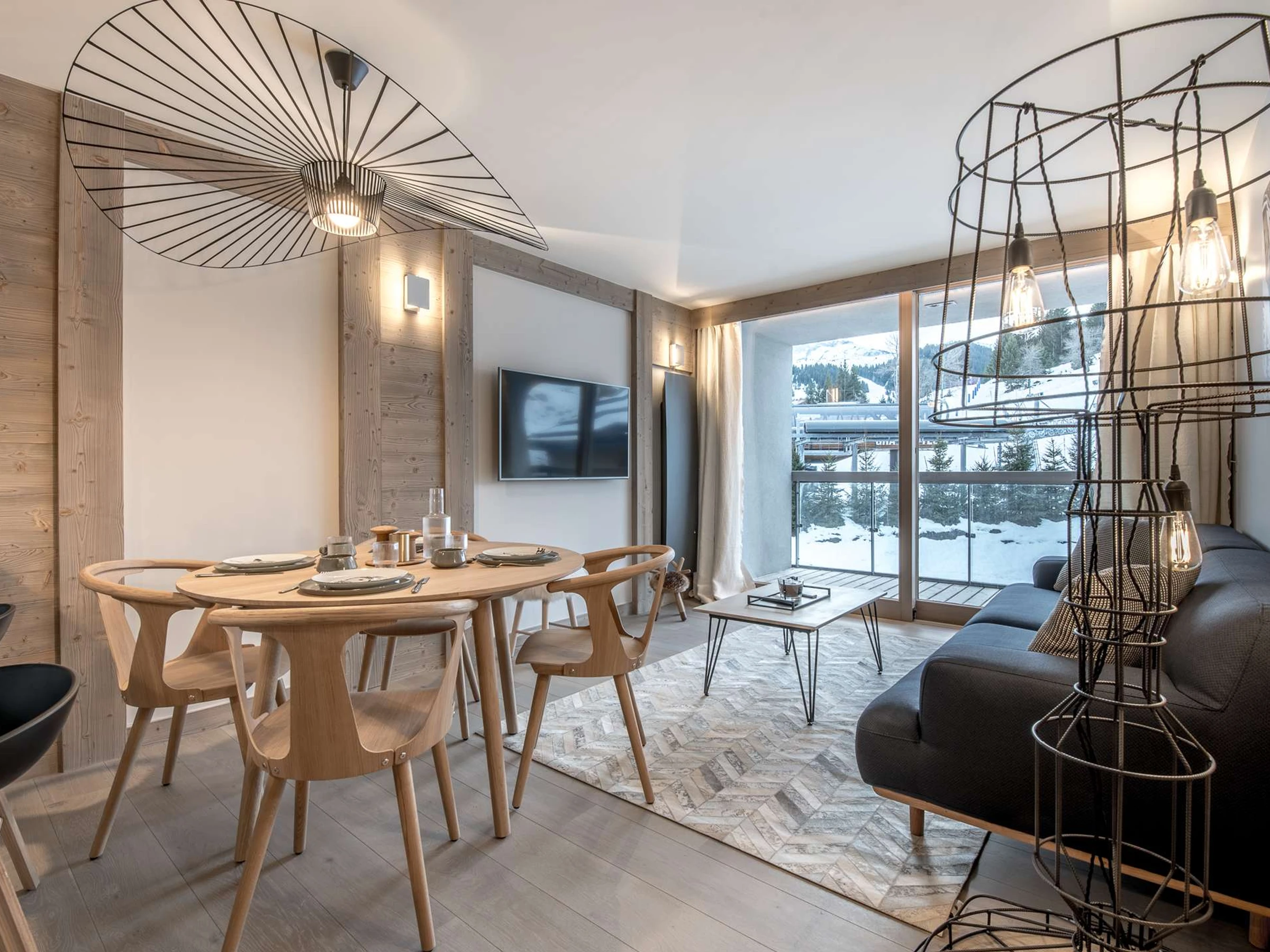 Schönes, schlichtes und gemütliches Apartment in idealer Lage im Zentrum des Resorts und nur wenige Schritte von den Pisten von Courchevel Village entfernt. Herrliche Aussicht vom Südostbalkon.