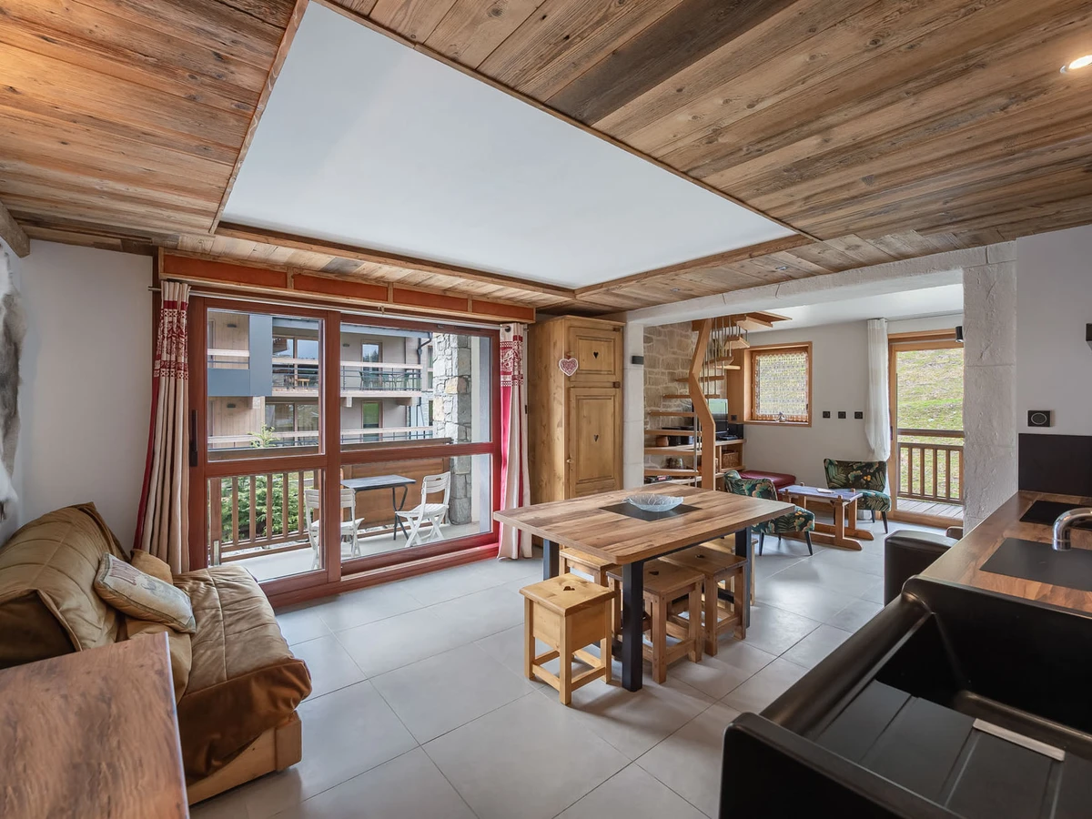 Herrliche Aussicht auf das Skigebiet und die Gipfel. Die Terrasse blickt auf die Tovets-Piste.