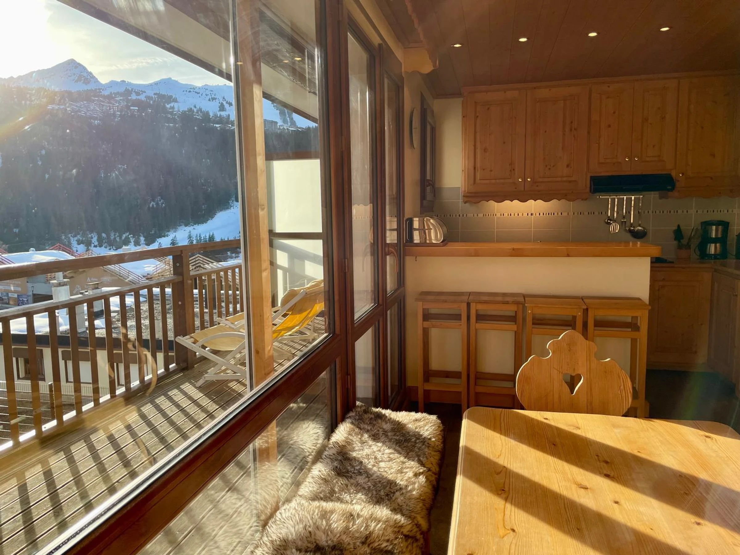 Das nach Süden ausgerichtete Apartment 5U ist 35 m² groß, für 6 Personen ausgestattet und befindet sich im 5. Stock der Résidence 1650. Es bietet einen schönen Bergblick und direkten Zugang zu den Pisten vom 7. Stock.