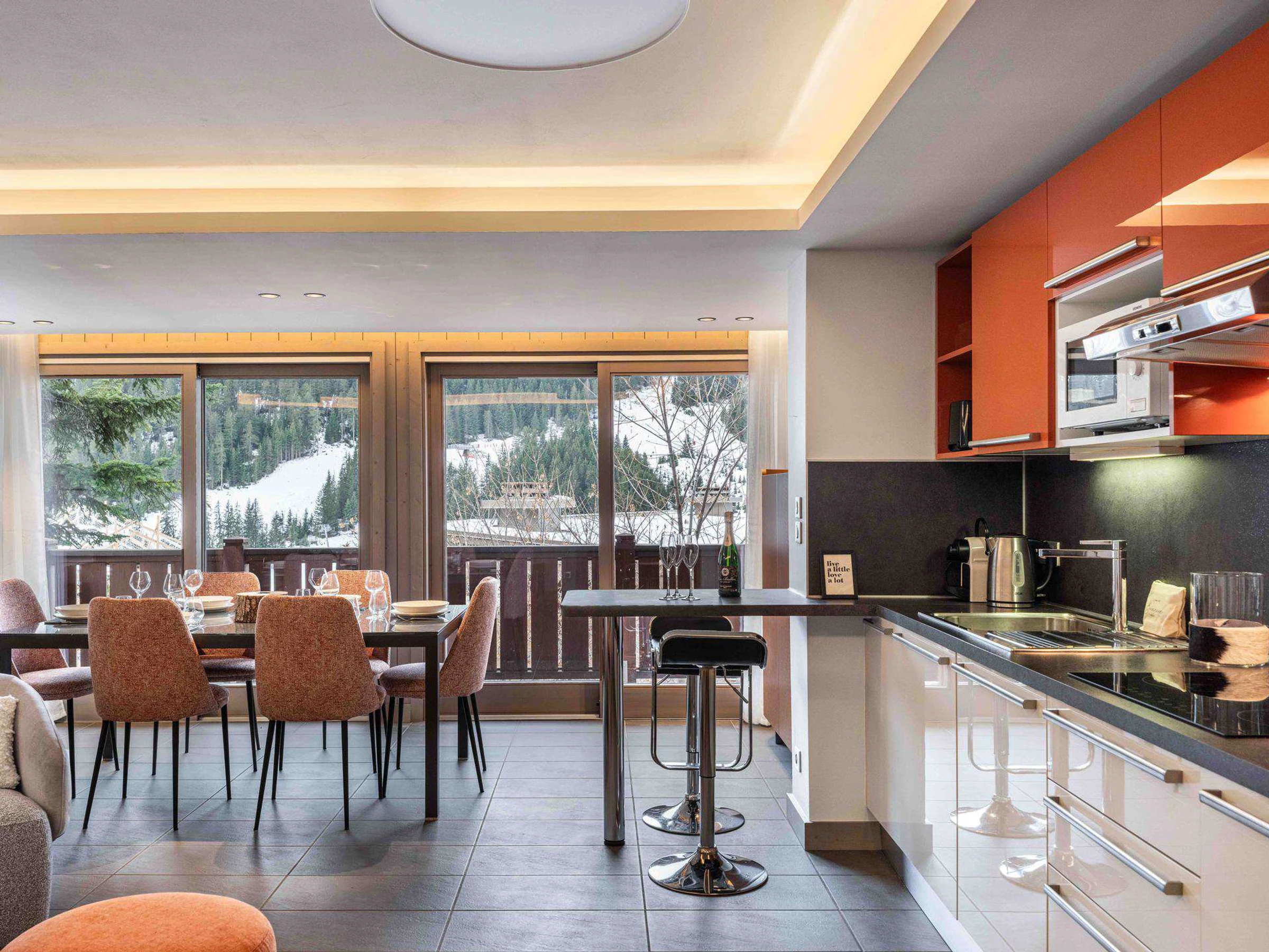Das geräumige Apartment „SIMMENTAL“ mit 2 Schlafzimmern befindet sich im neuen Chalet Les 3 Vaches (Ebene -1) im Zentrum des Ortes und in unmittelbarer Nähe der Pisten.