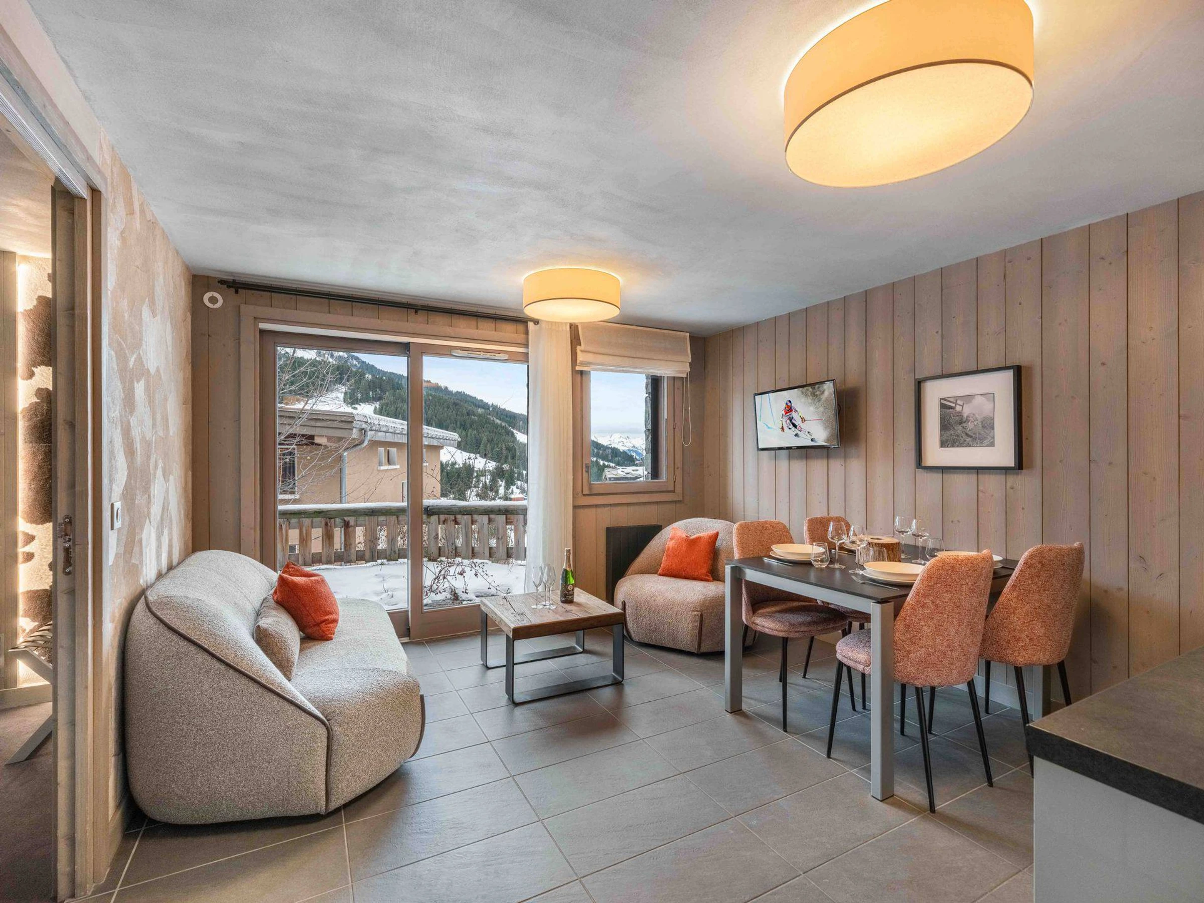 Das elegante Apartment „HEREFORD“ befindet sich im Chalet Les 3 Vaches (Ebene -2) im Zentrum des Ortes und in unmittelbarer Nähe der Pisten.