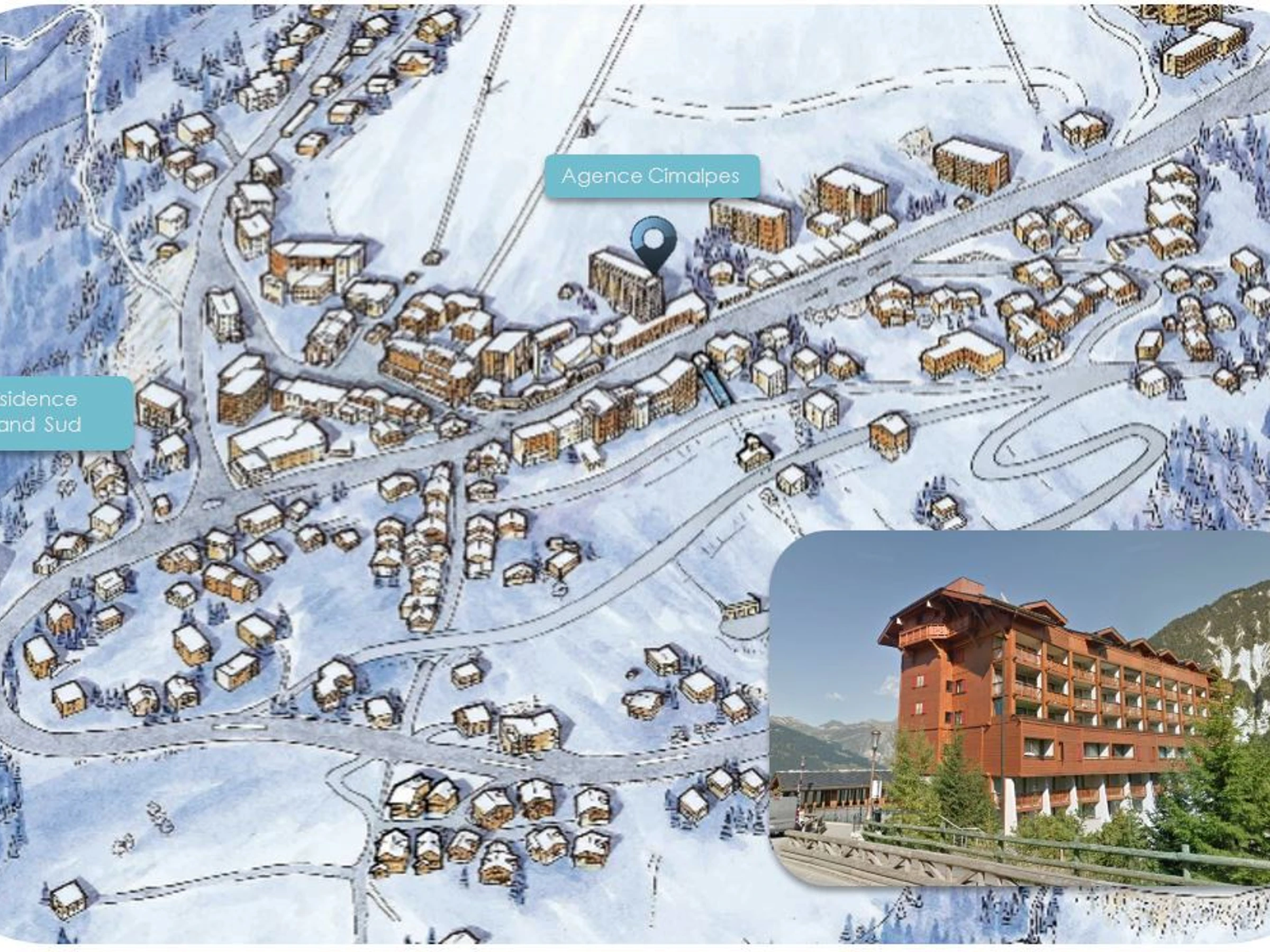 Lediglich abseits des Dorfes ist die Residenz Le Grand Sud eine Alternative zur Hektik des Dorfzentrums, der Bars und Restaurants von Moriond. Eine angenehme Aussicht auf das Massiv der Drei Täler gepaart mit der Ruhe des nahen Waldes.