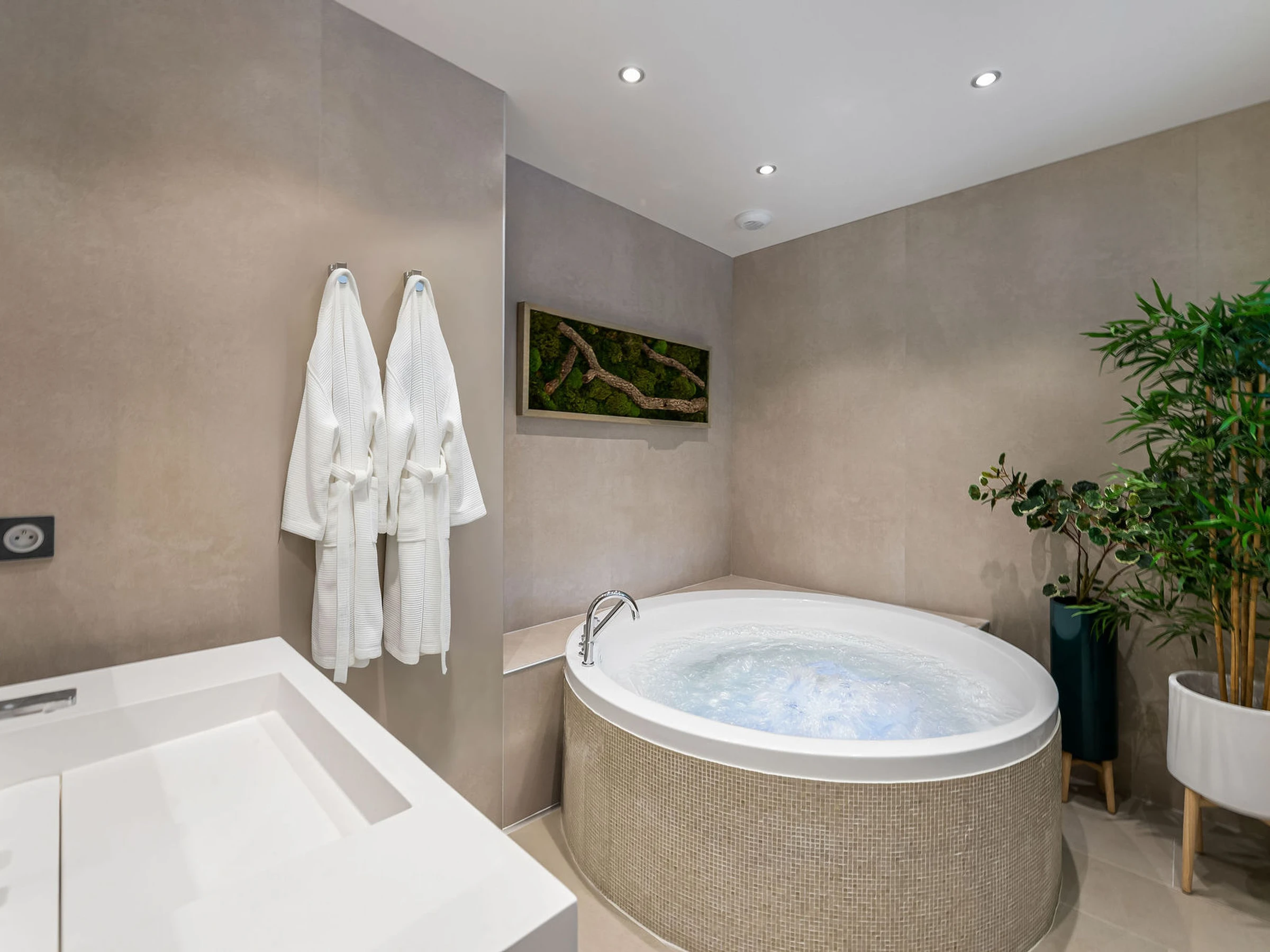 Zeitgenössische Ski-in/Ski-out-Wohnung mit Parkplatz im Herzen von Courchevel 1650