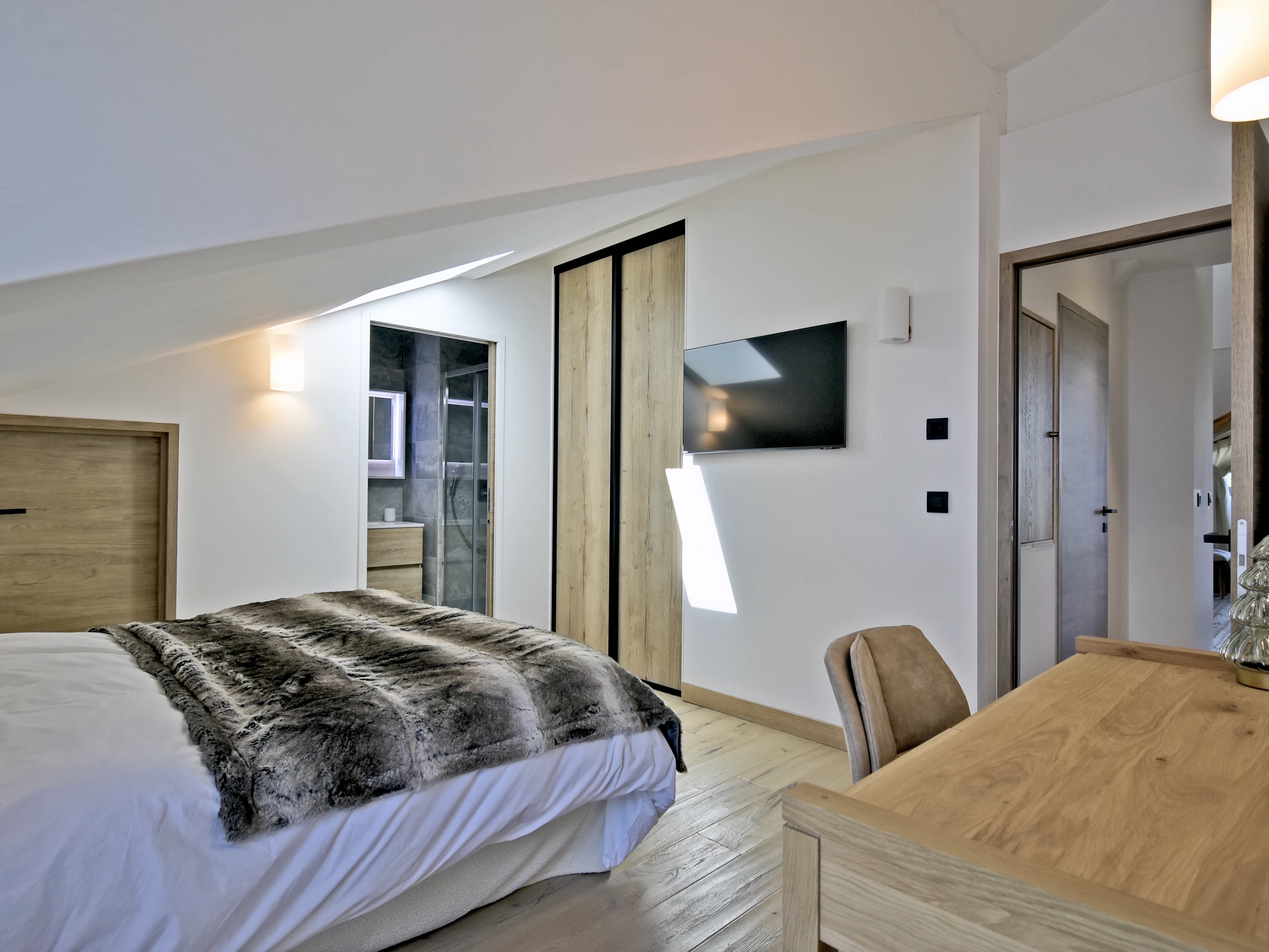 - Schlafzimmer 1: 1 Doppelbett, 1 Ankleidezimmer und ein Duschbad mit Waschbecken und WC